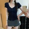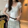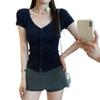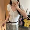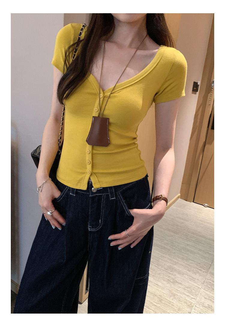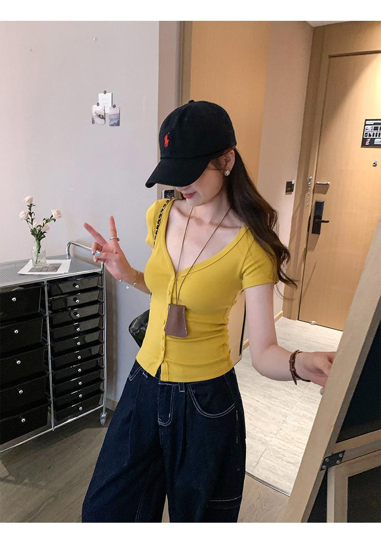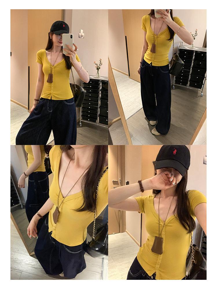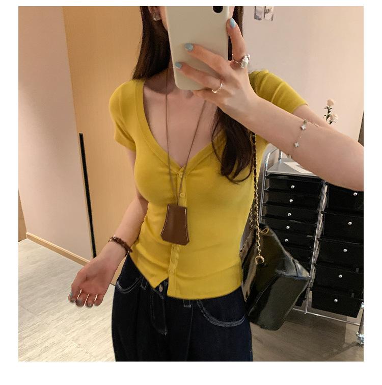 Cárdigan Amarillo Americano Estilo Coreano de Manga Corta con Botonadura Sencilla Verano 2025 Nuevo Top Elegante y Versátil Estilo Coreano