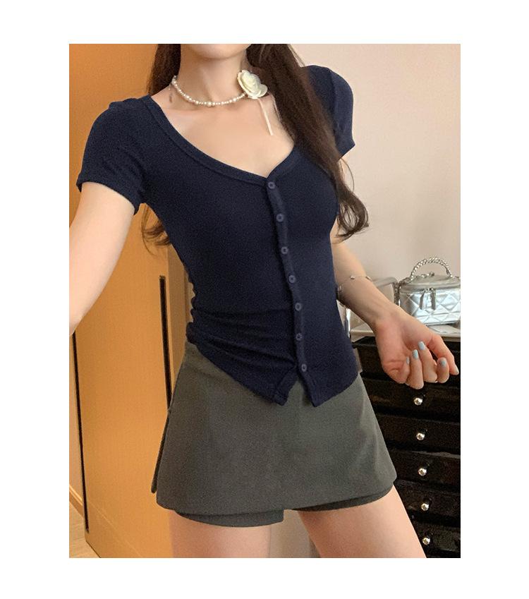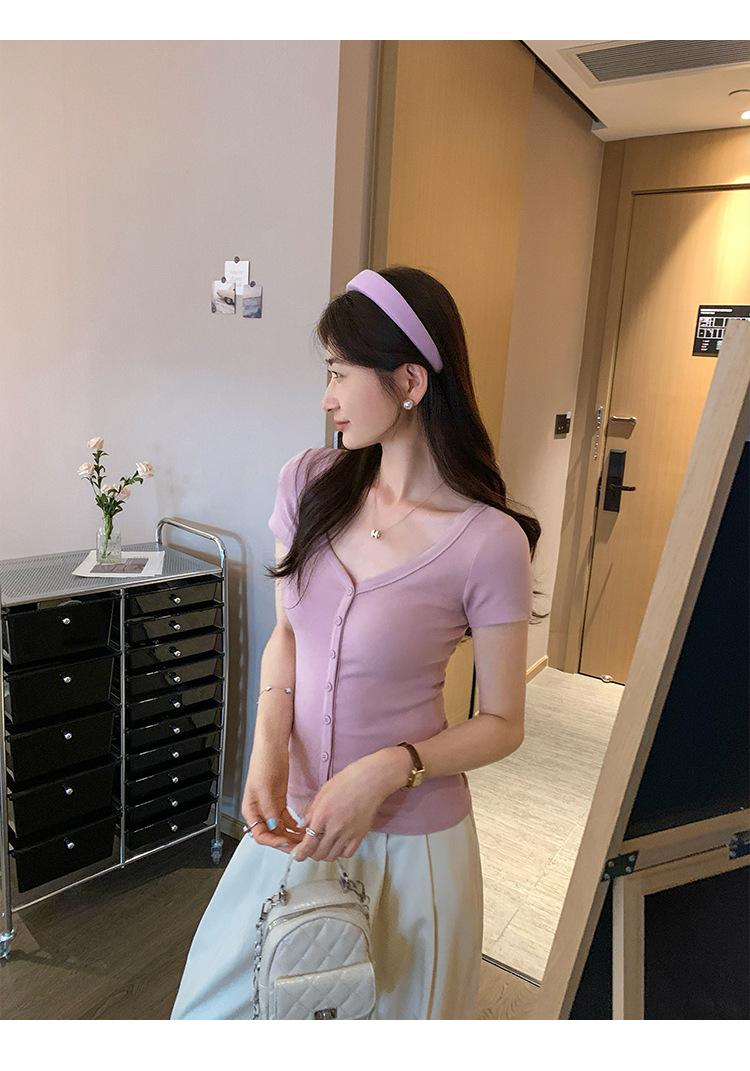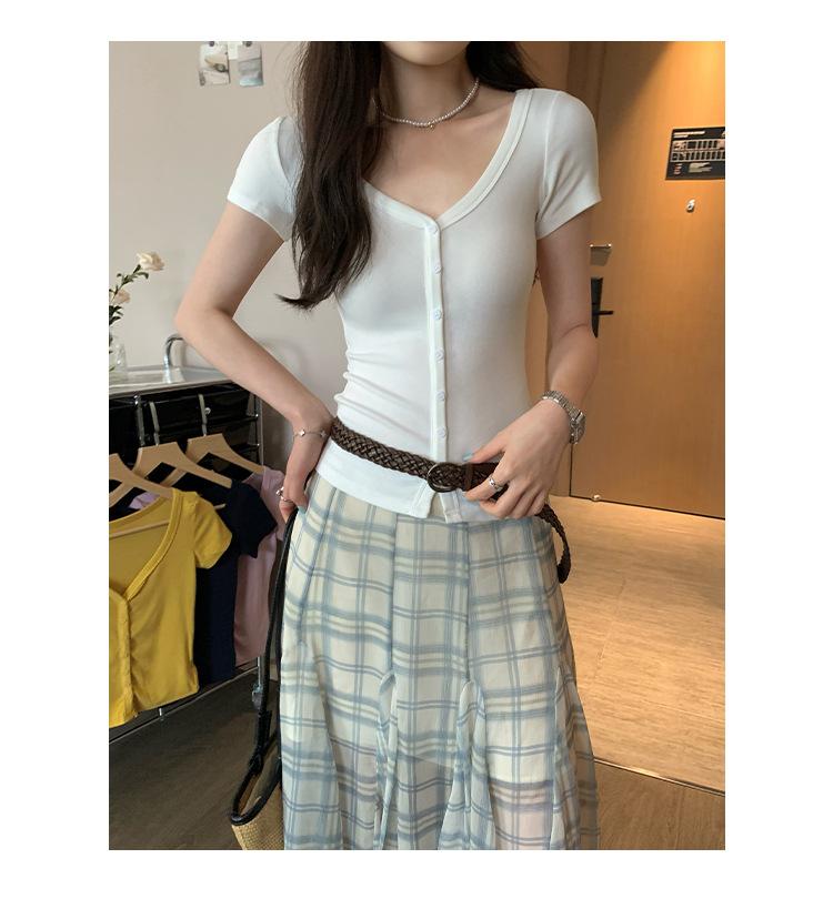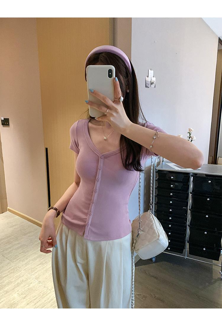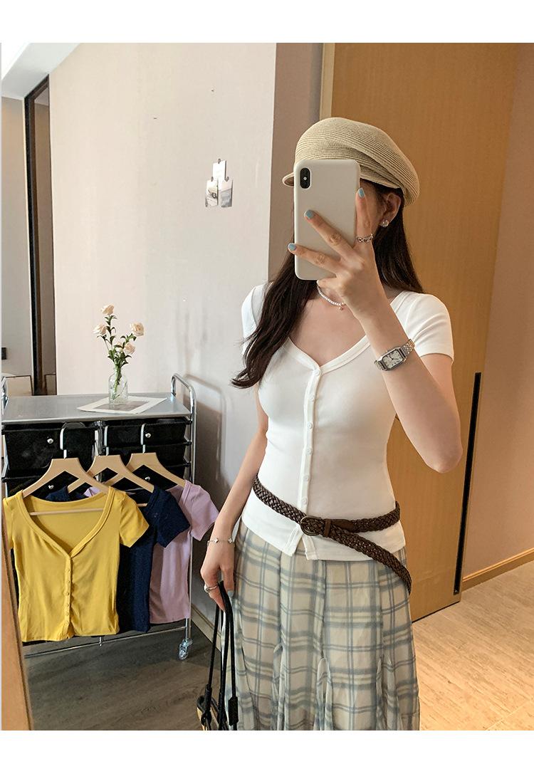 Cárdigan Amarillo Americano Estilo Coreano de Manga Corta con Botonadura Sencilla Verano 2025 Nuevo Top Elegante y Versátil Estilo Coreano