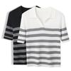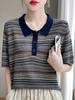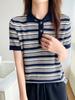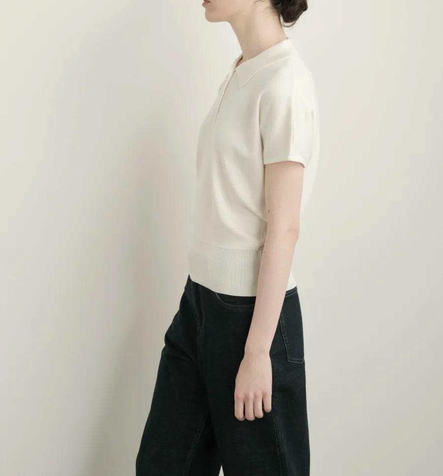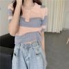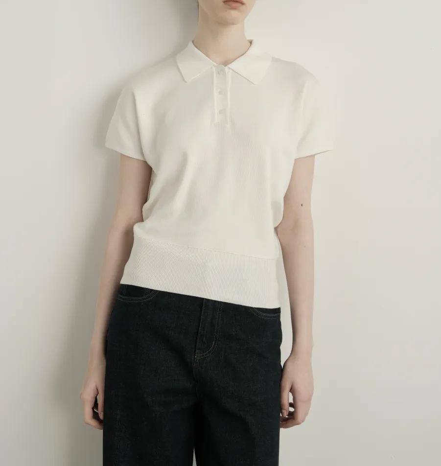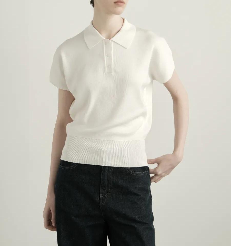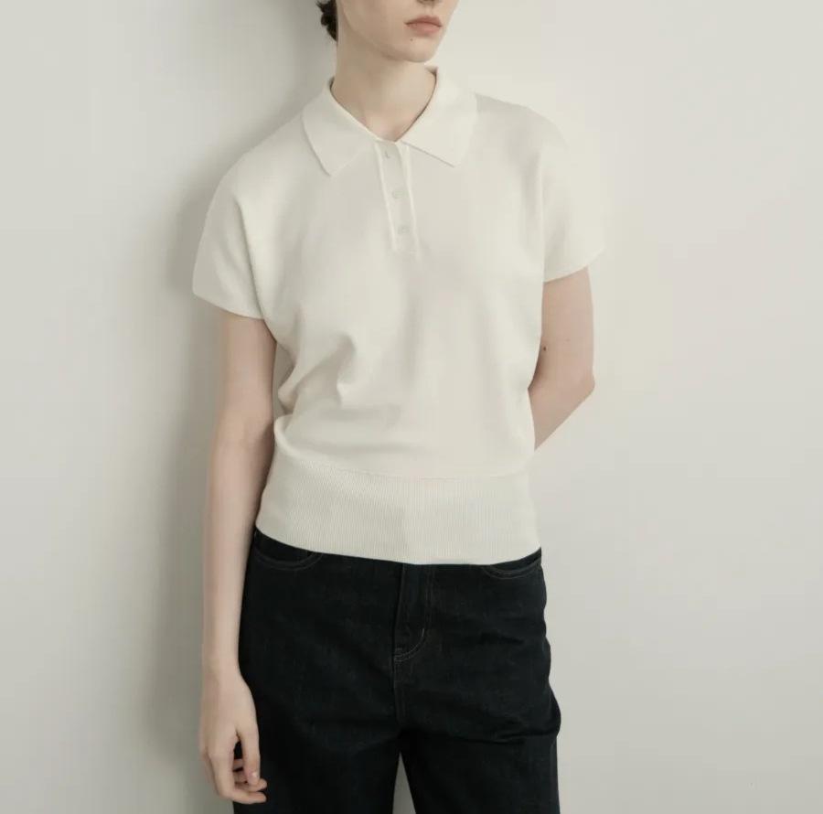 Polo Retro Blanco Tejido Manga Corta Top Verano Desplazamiento Casual Universitario Temperamento Camiseta Mujer