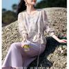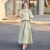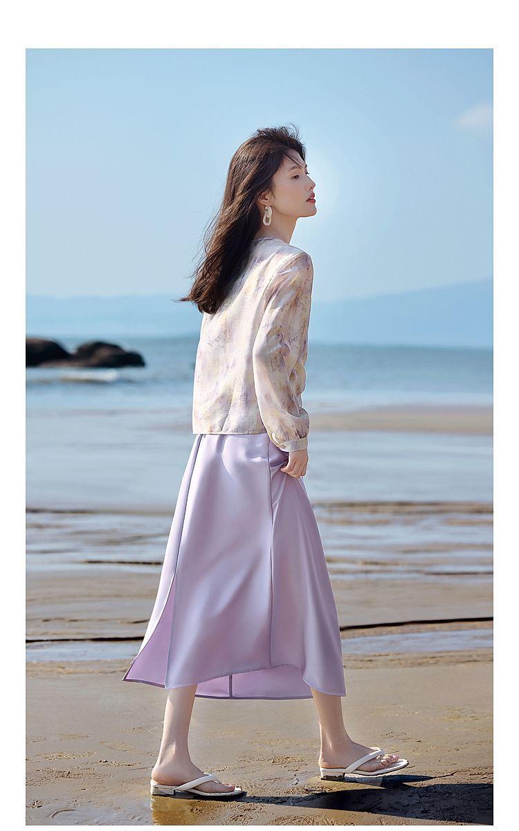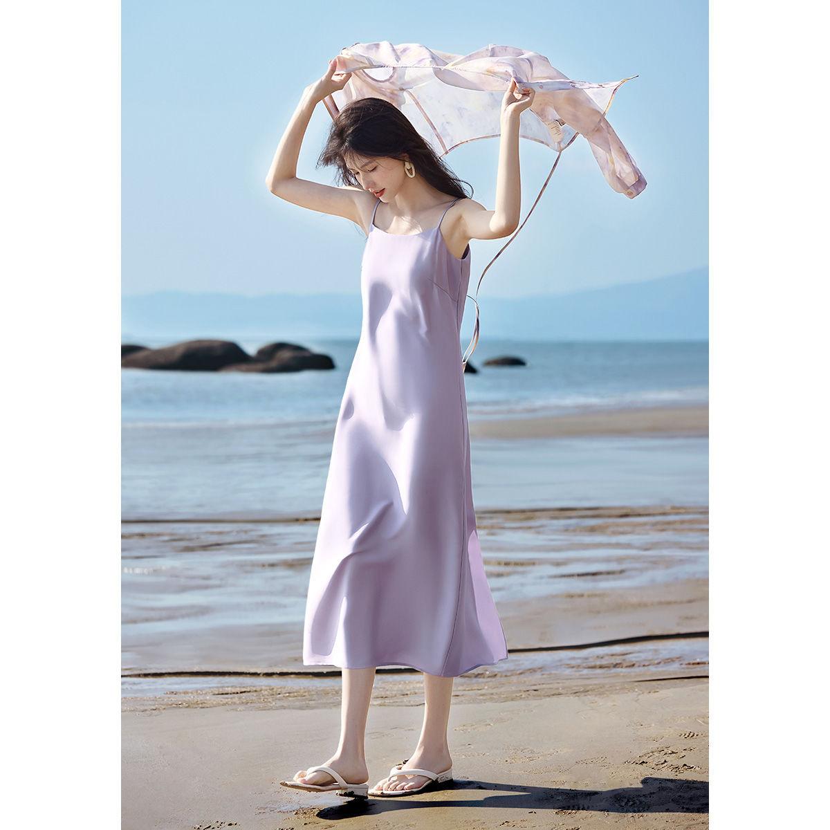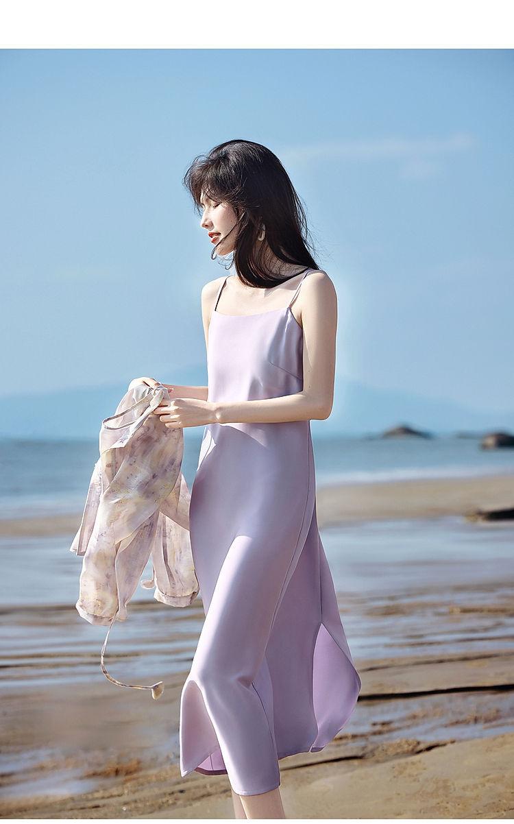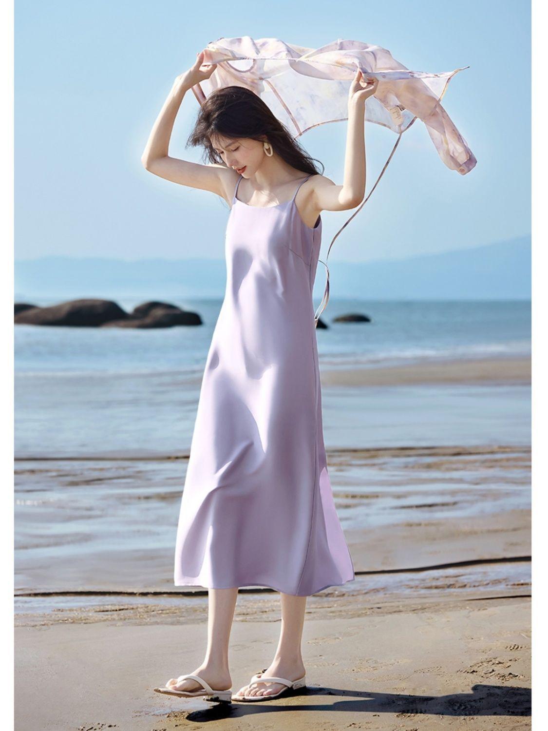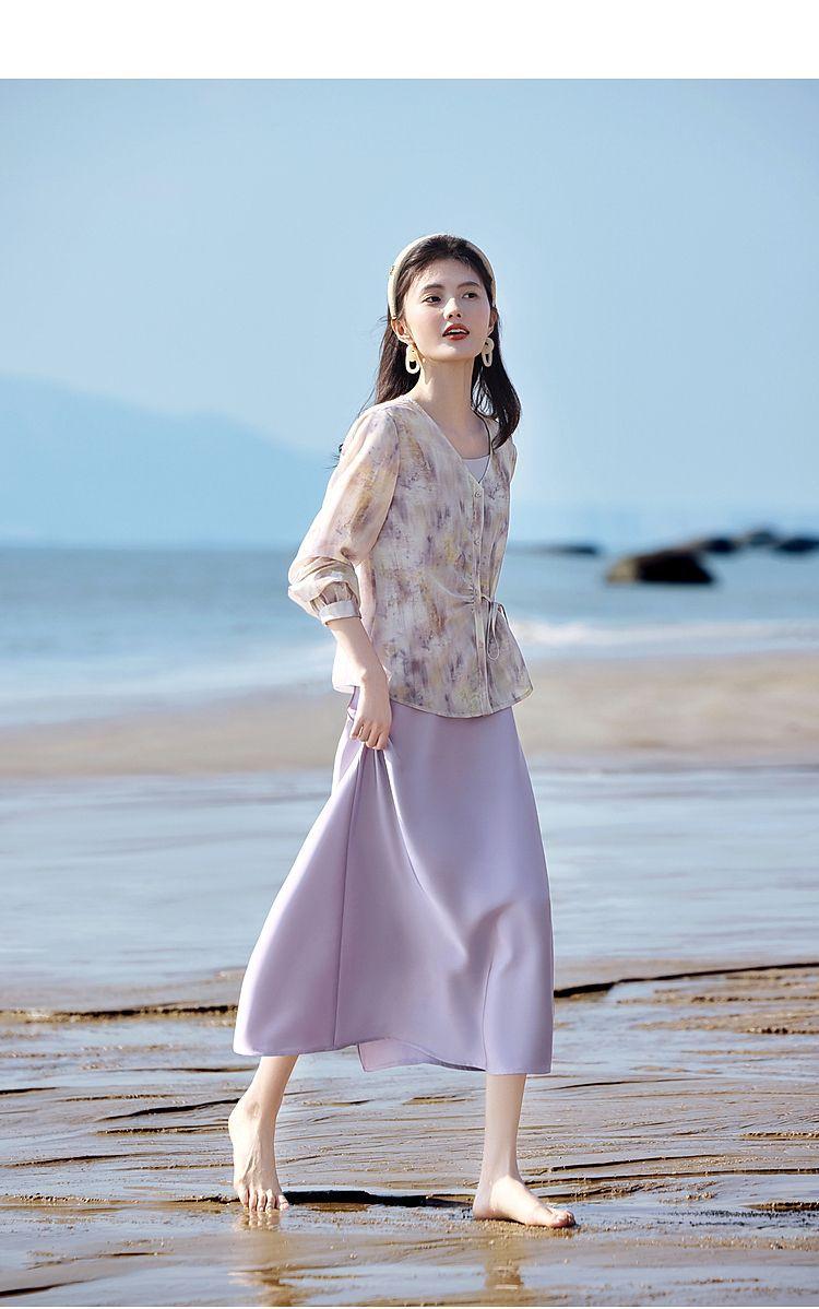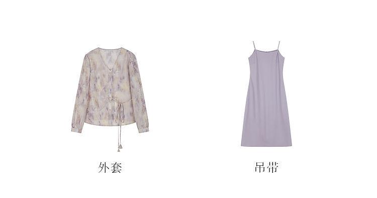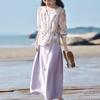 Elegante Elegante Estilo Vacacional Teñido Cárdigan Ligero Traje Falda Slip 2025 Verano Traje de Dos Piezas