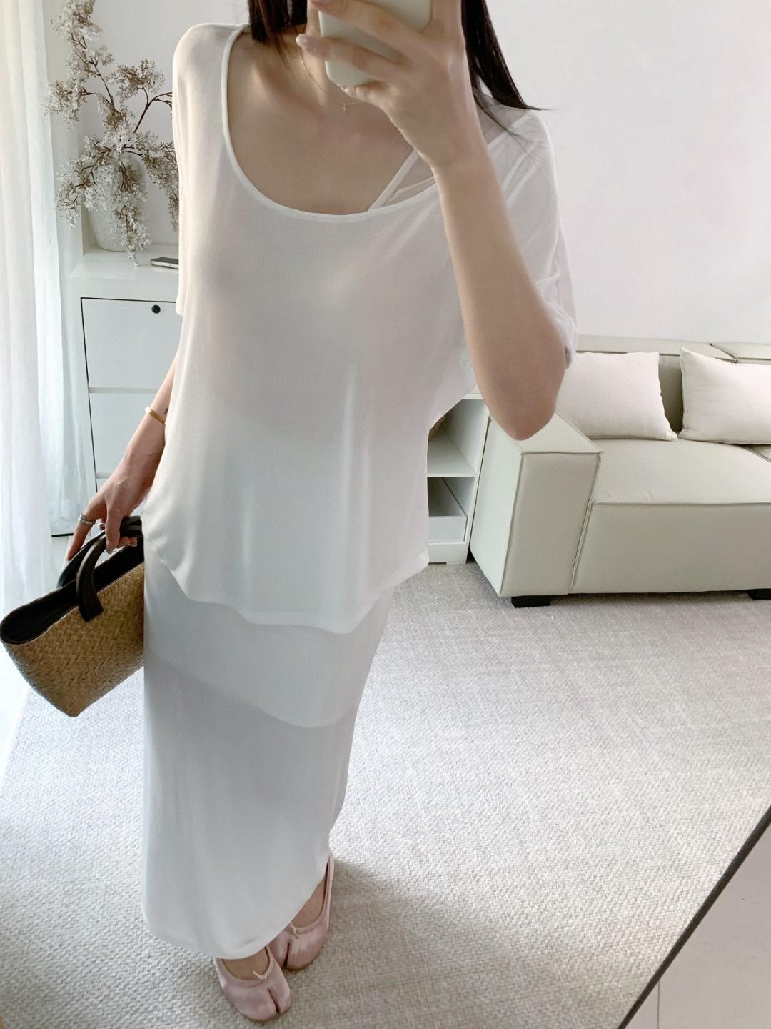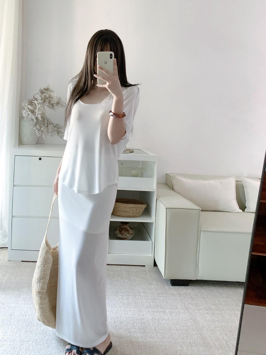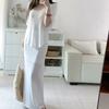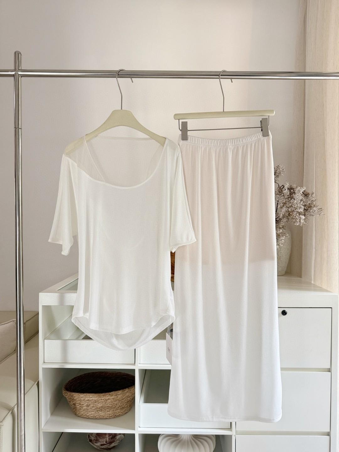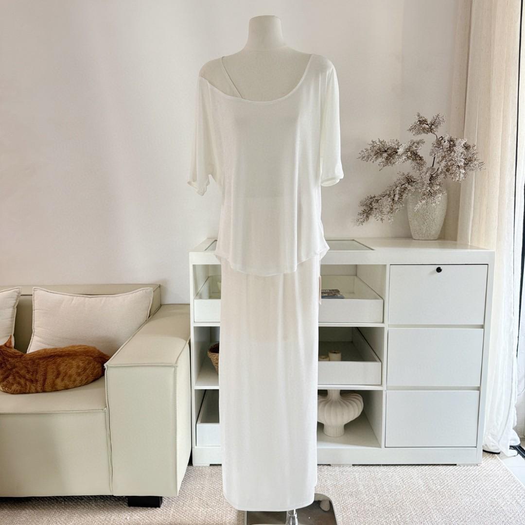Estilo Veraniego Lujurioso Puro Falda Tejida de Manga Corta Holgada y Slim Diosa Traje Blanco Relajado