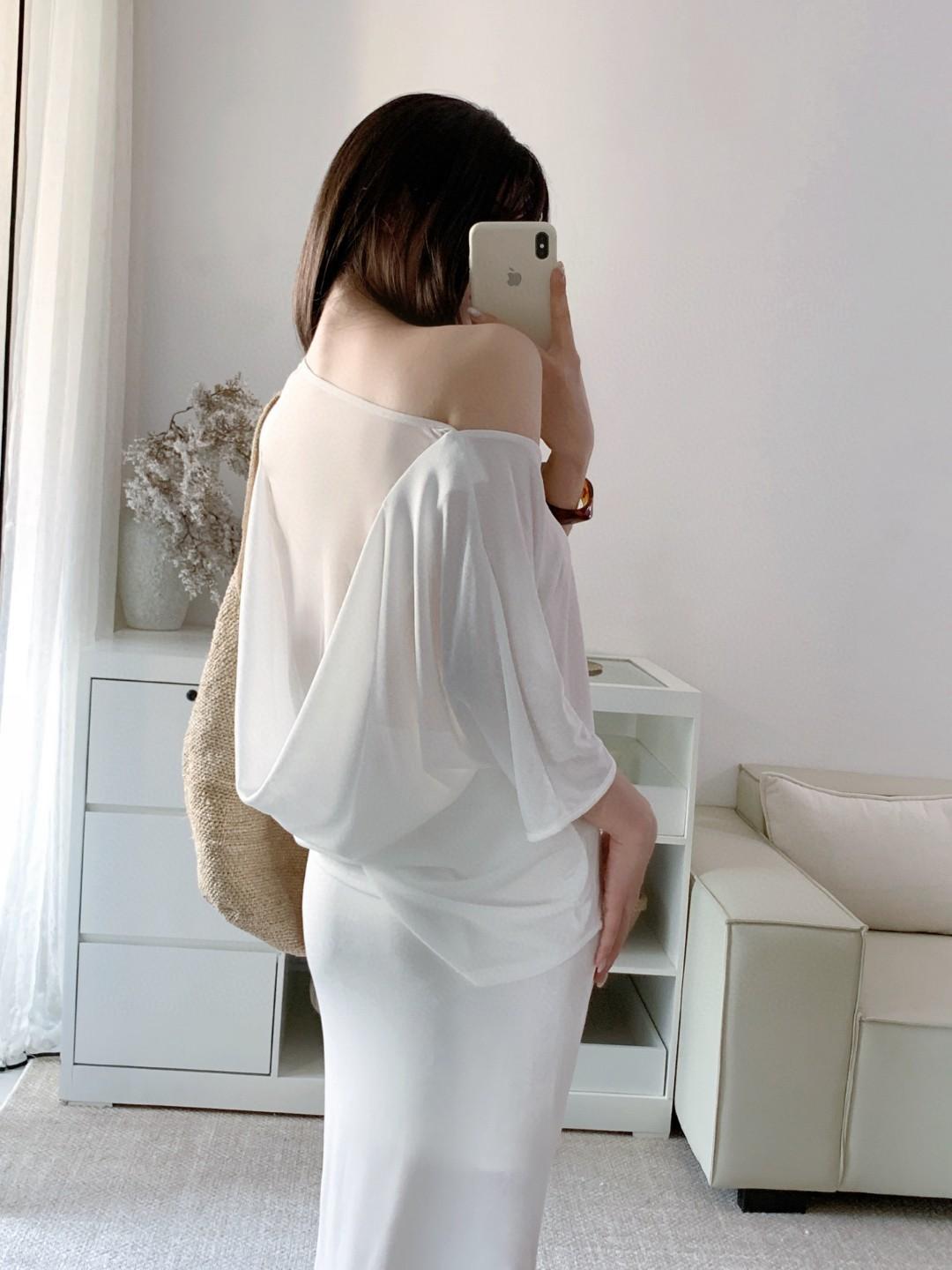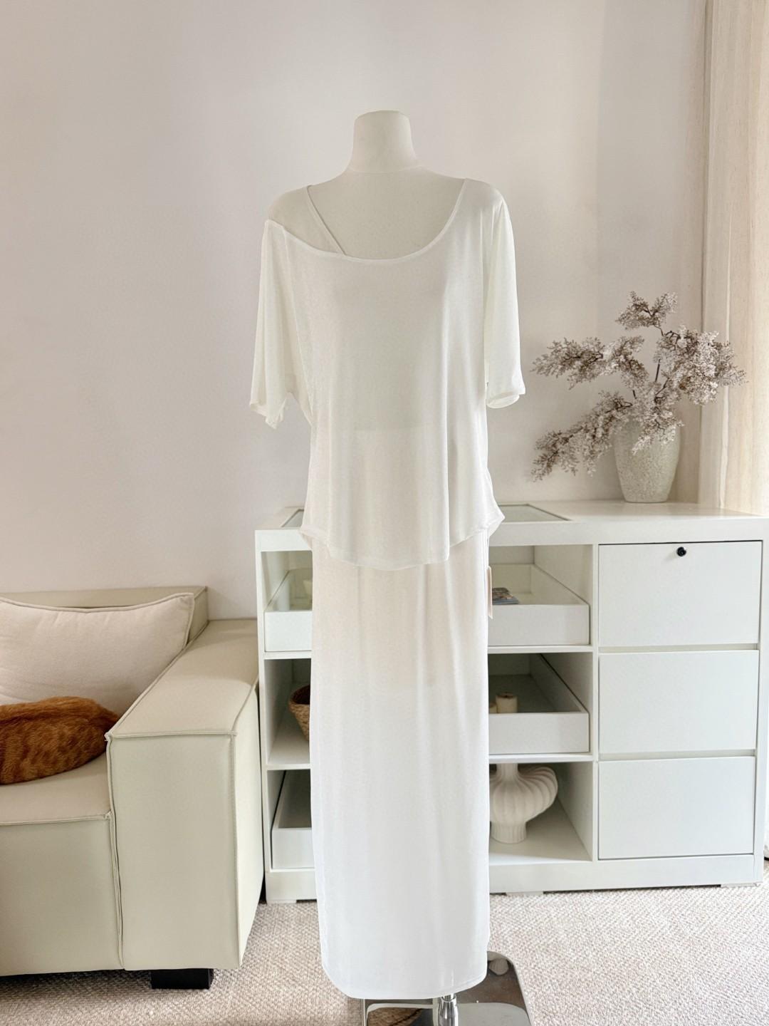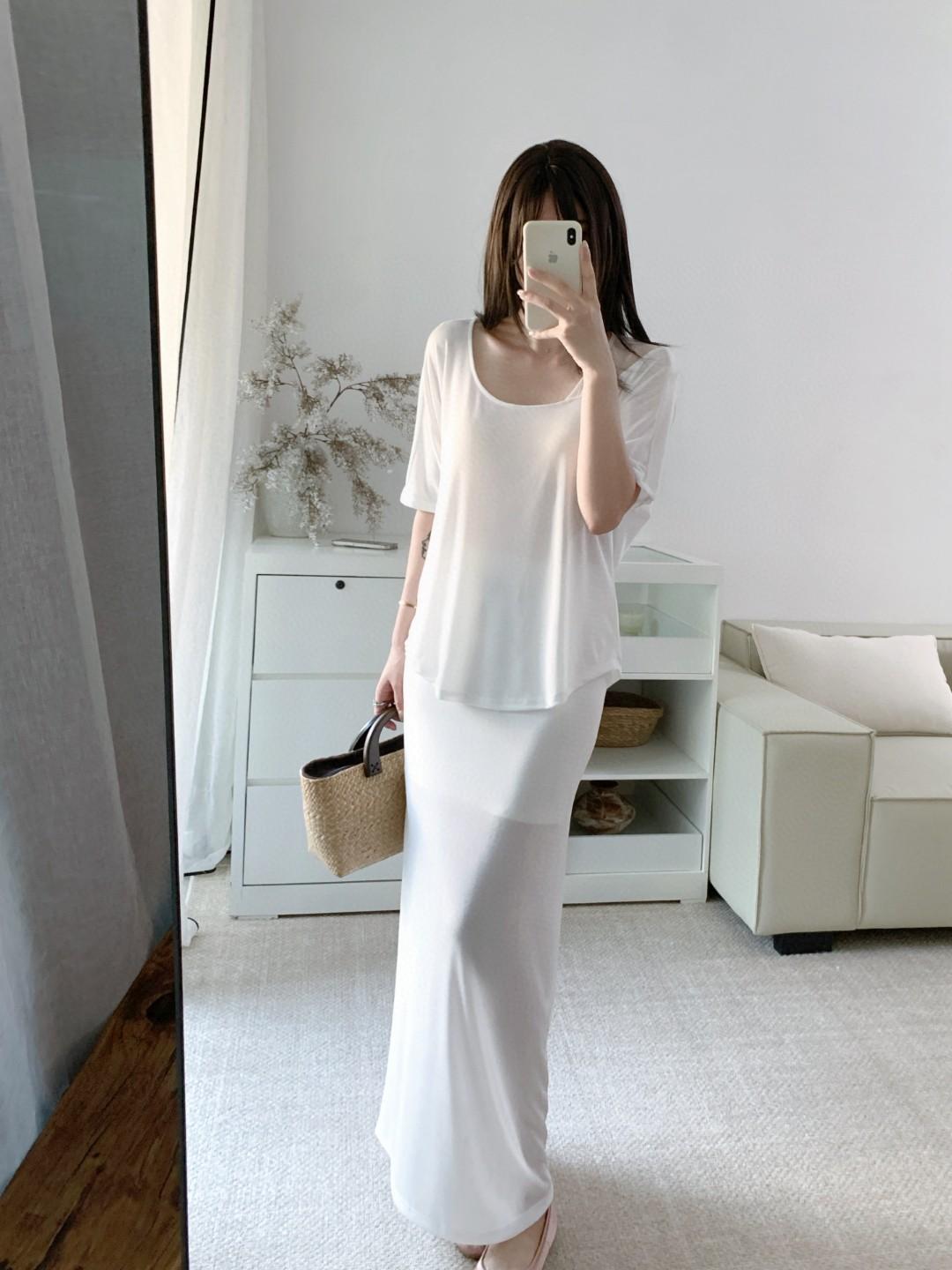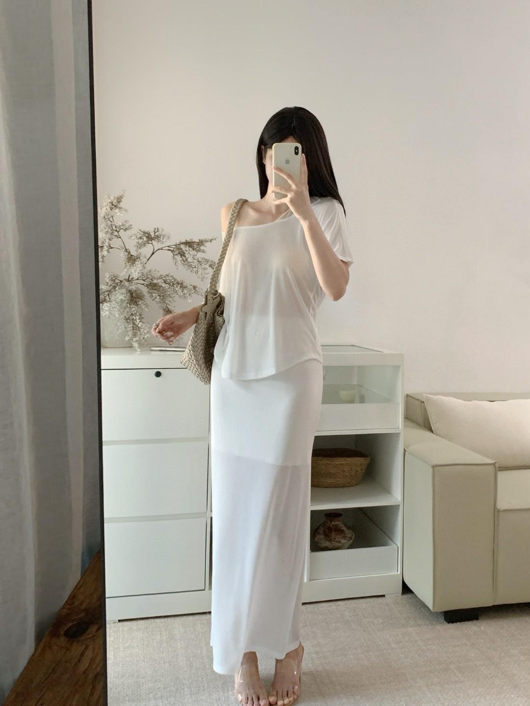 Estilo Veraniego Lujurioso Puro Falda Tejida de Manga Corta Holgada y Slim Diosa Traje Blanco Relajado