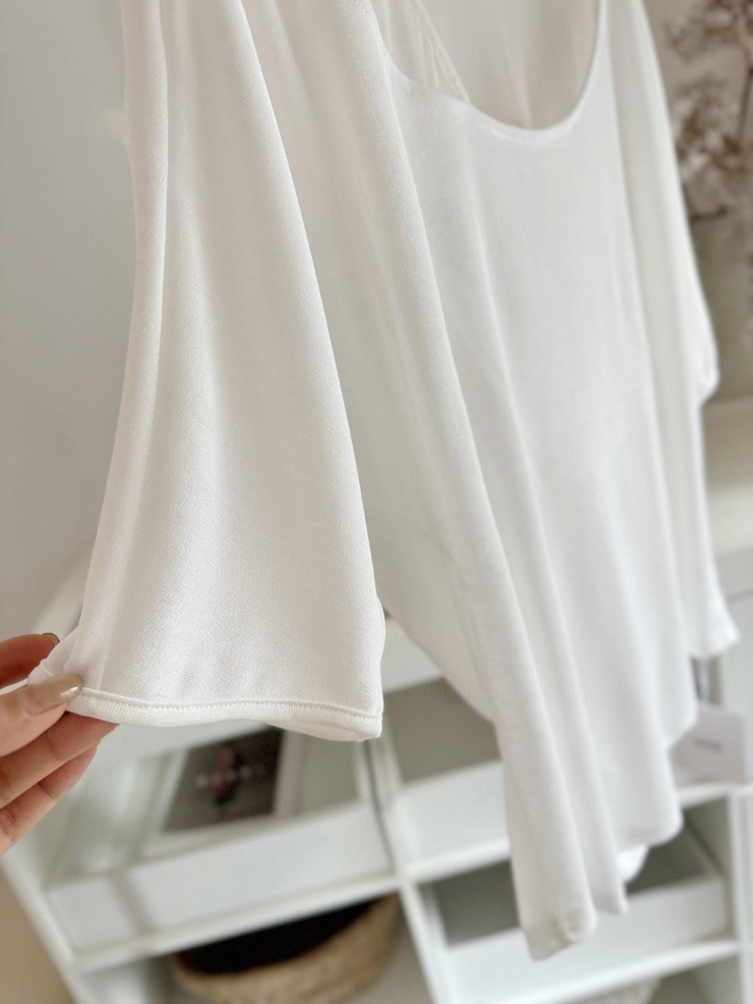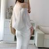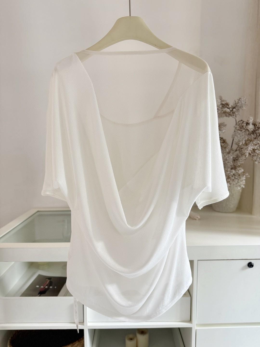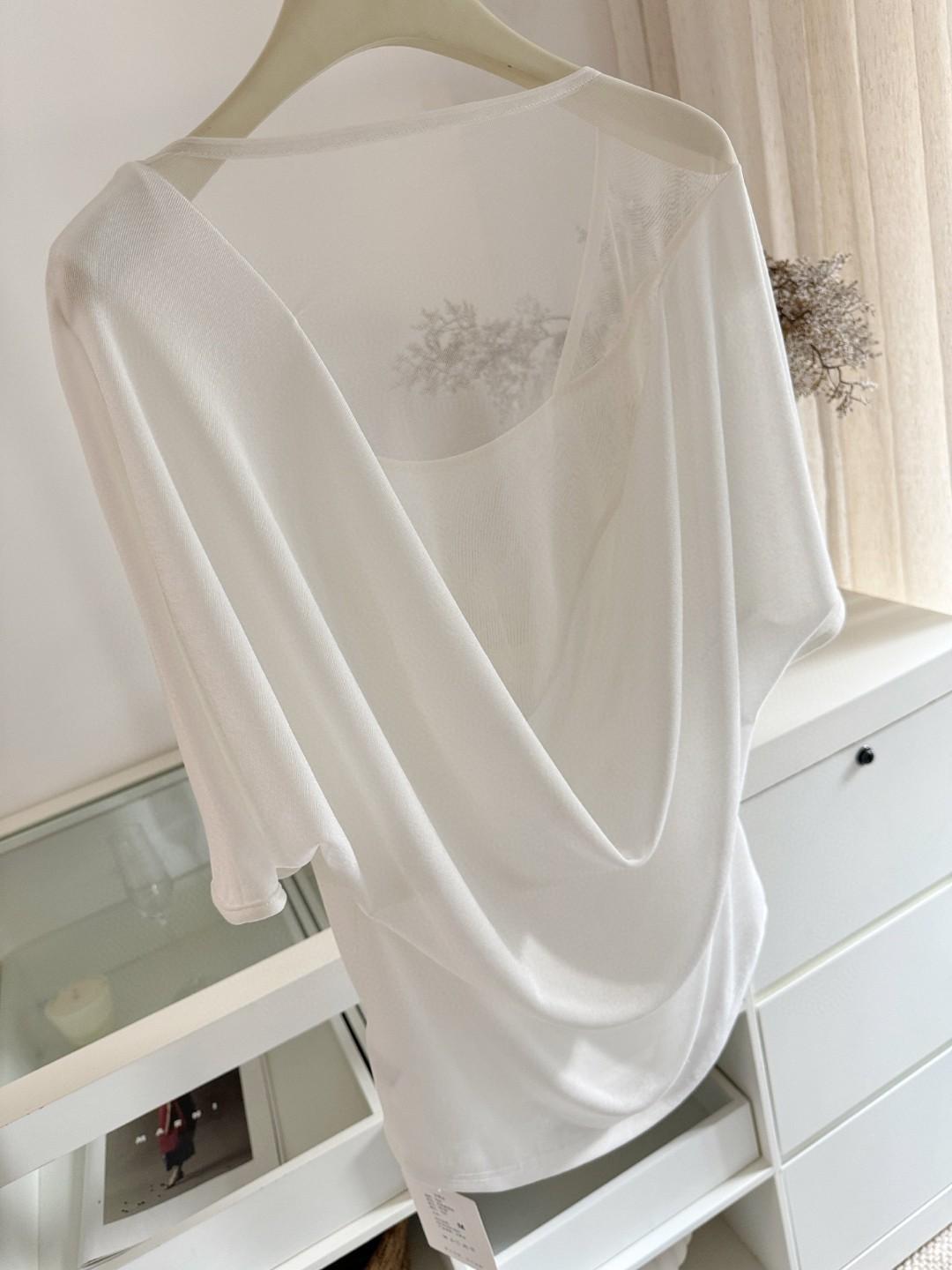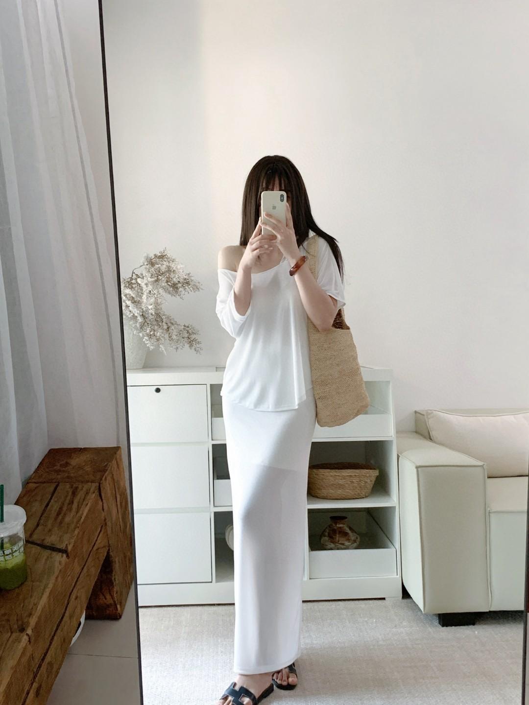 Estilo Veraniego Lujurioso Puro Falda Tejida de Manga Corta Holgada y Slim Diosa Traje Blanco Relajado
