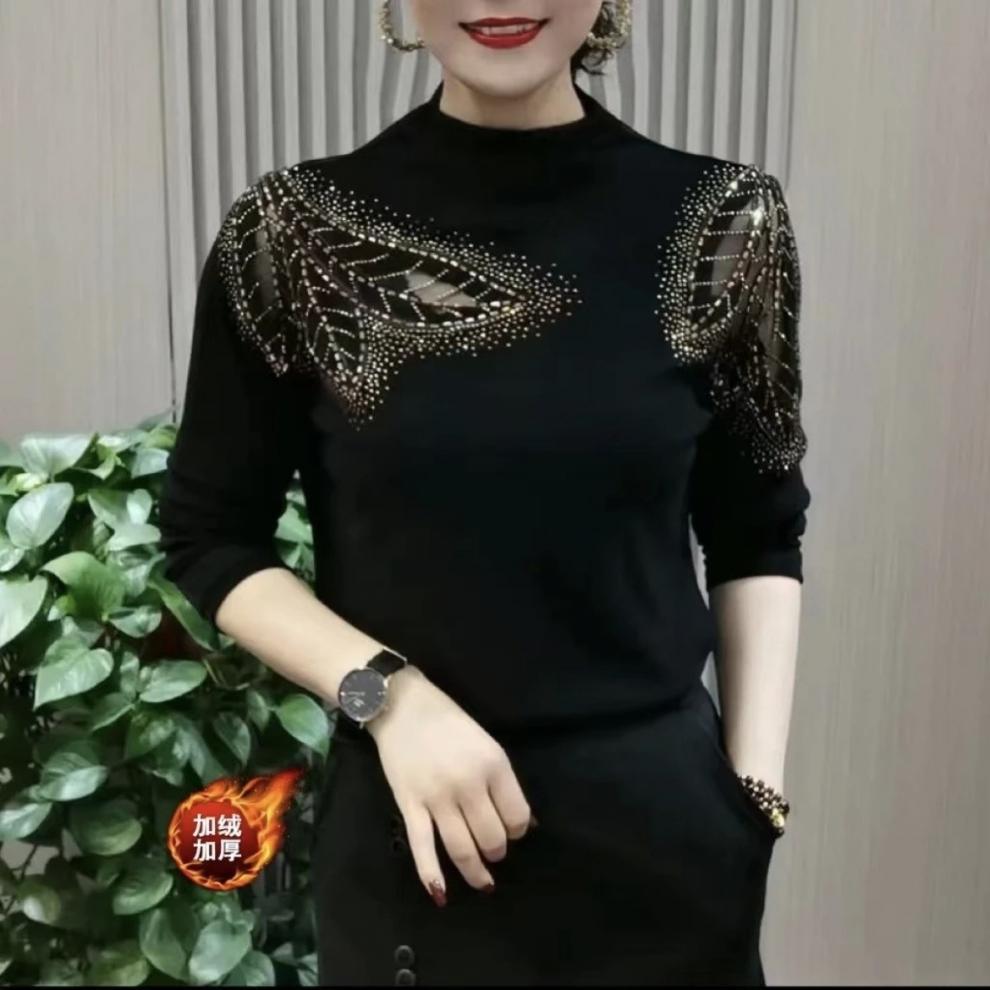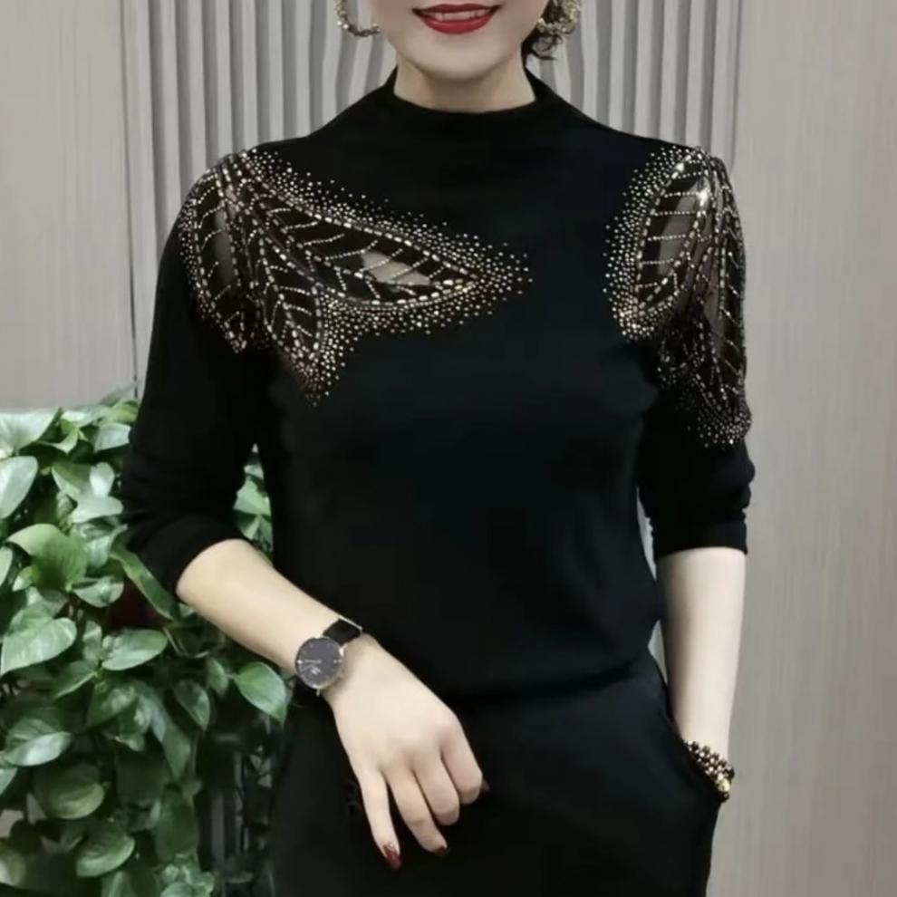 Camiseta de Fondo de Manga Larga de Alta Gama para Mujer en Estilo Nuevo de Otoño Diseño de Diamante Caliente Camiseta Elegante 2024 Look Adelgazante Top Cubre Vientre