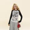 TKPA Camiseta de Manga Larga con Estampado de Anime Retro Americano para Mujer Otoño 2025 Nuevo Marea Nacional Street Top Casual