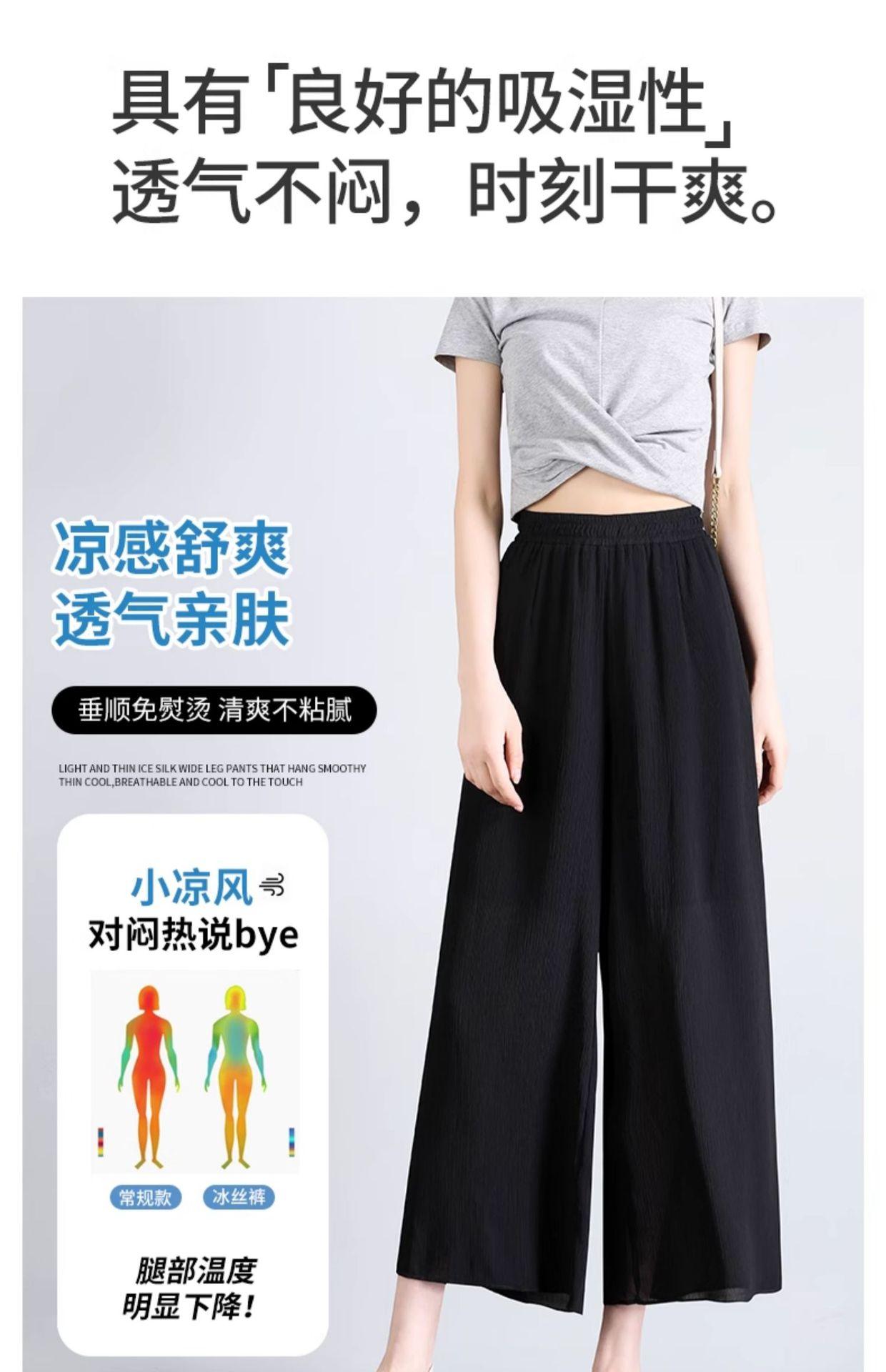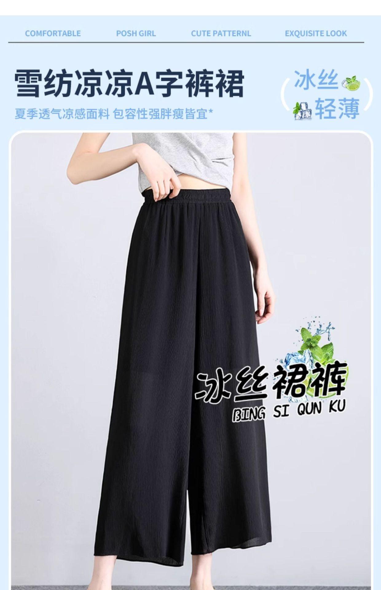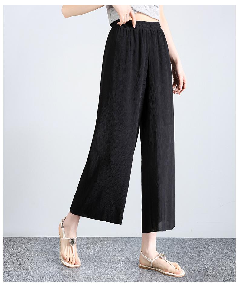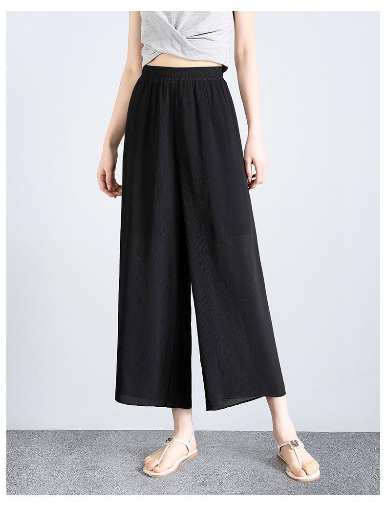 Culottes de Gasa de Seda de Hielo Transfronterizos para Mujer Verano 2025 Pantalones Nuevos para Mamá Casuales Drapeados con Aspecto Adelgazante Pantalones Anchos Siete-Nueve