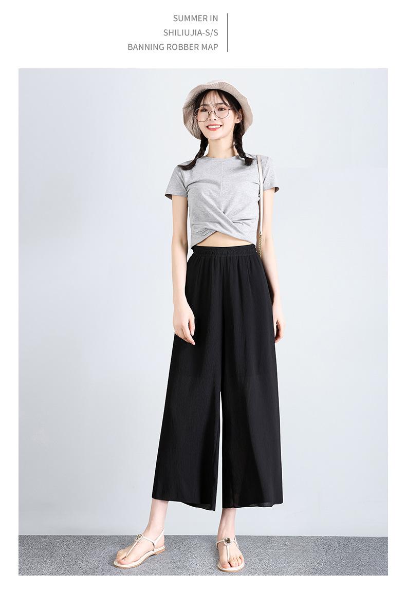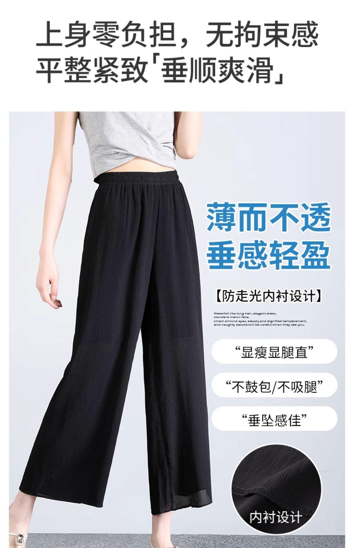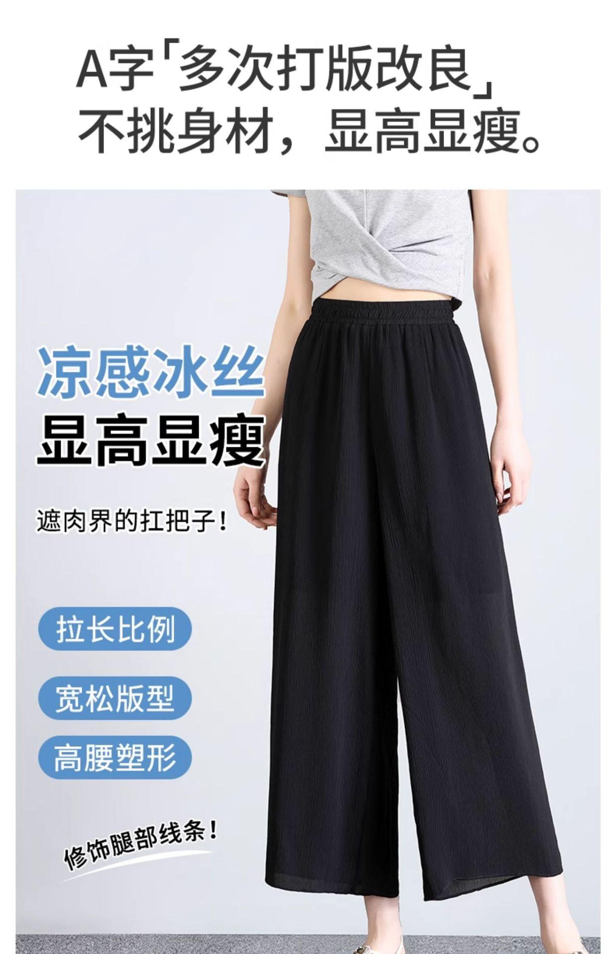 Culottes de Gasa de Seda de Hielo Transfronterizos para Mujer Verano 2025 Pantalones Nuevos para Mamá Casuales Drapeados con Aspecto Adelgazante Pantalones Anchos Siete-Nueve