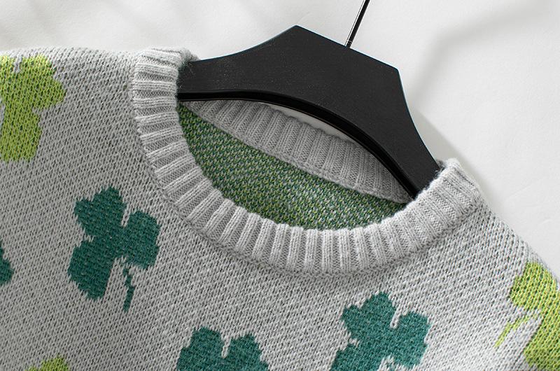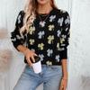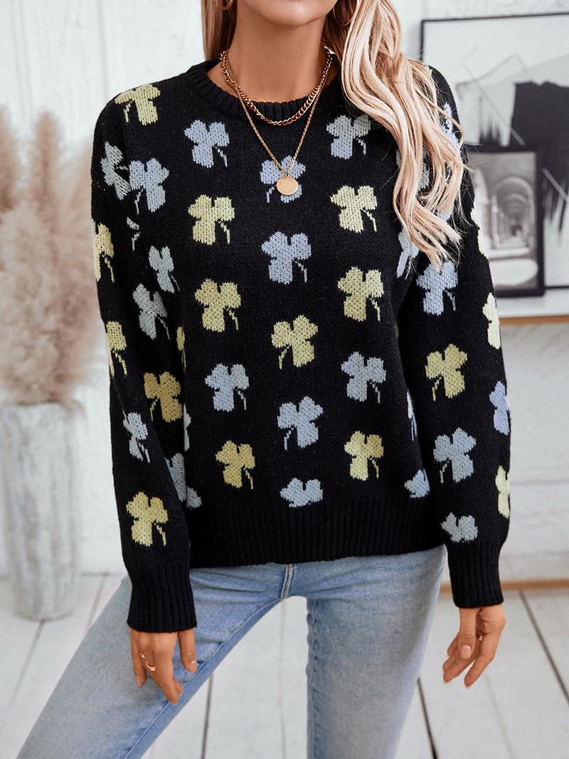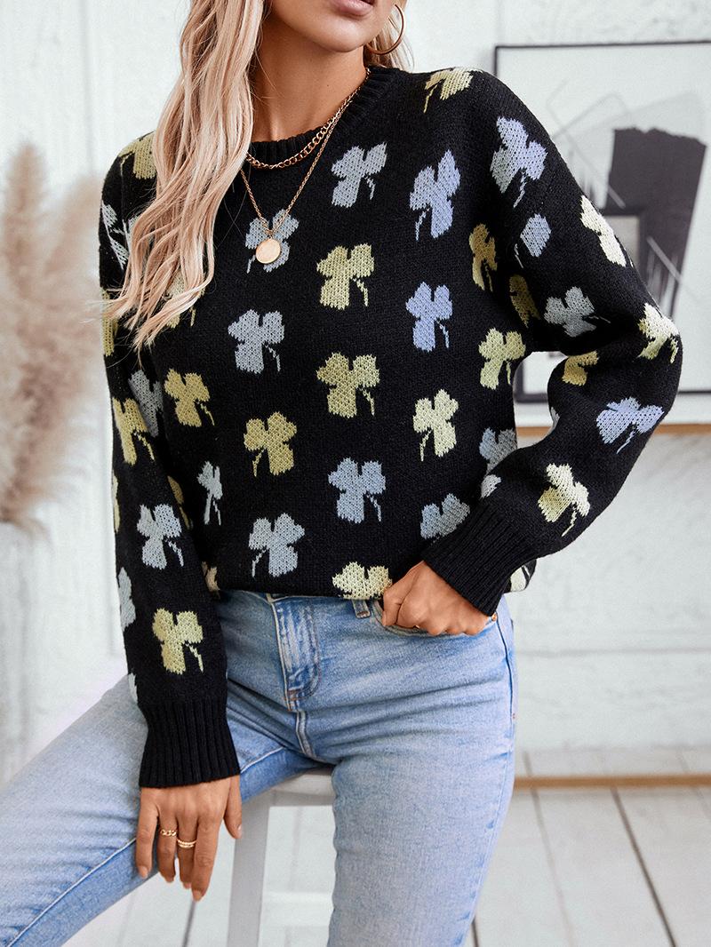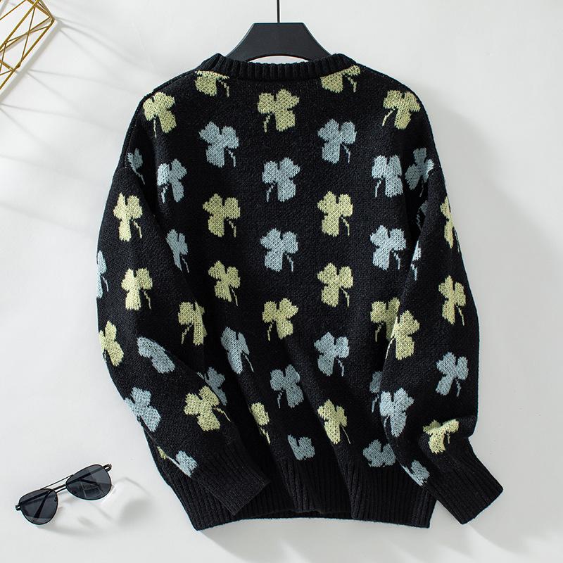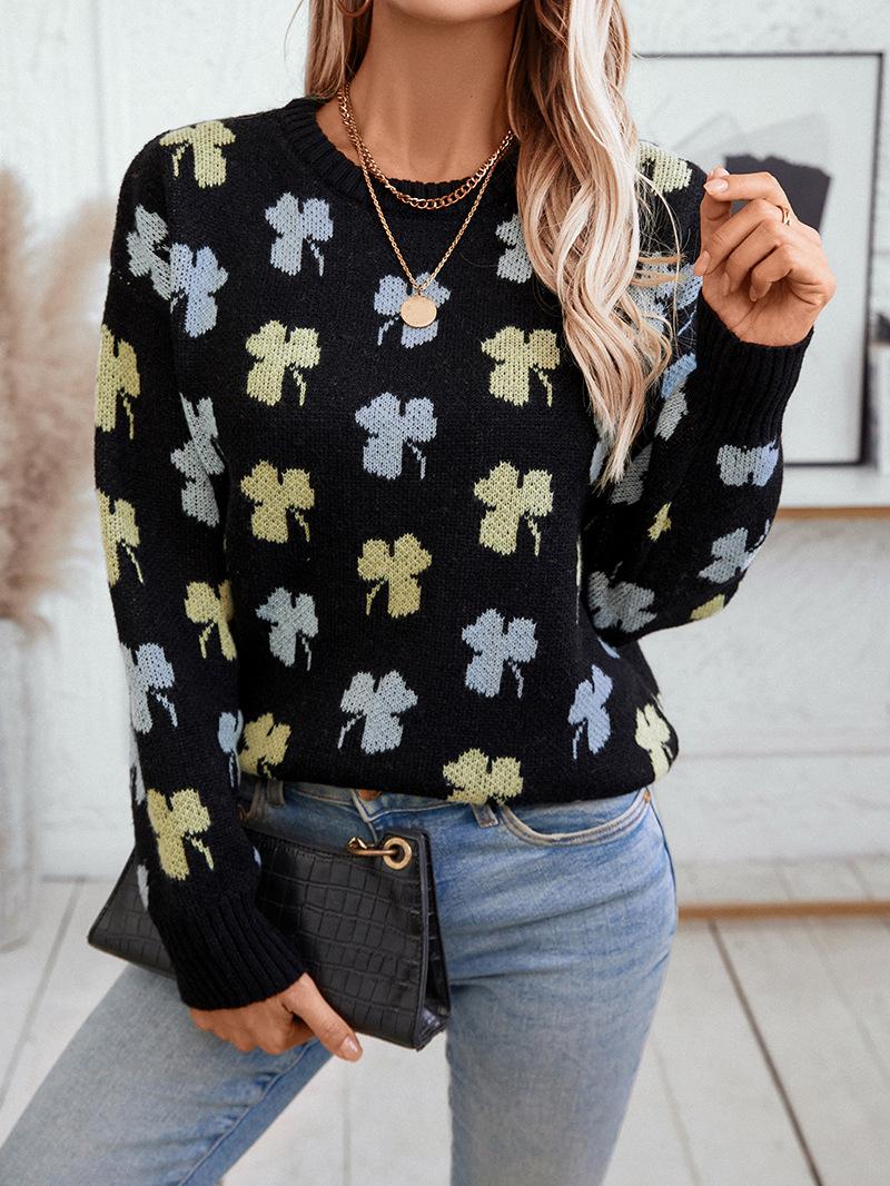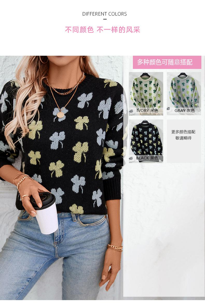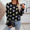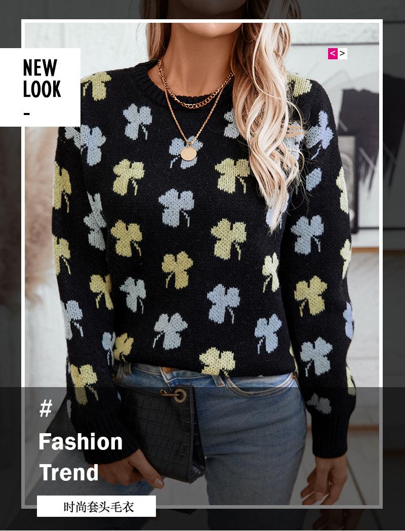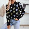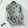 Comercio Exterior Transfronterizo Otoño e Invierno Nuevo Tejido de Punto para Mujer Casual Cuello Redondo Suelto Jacquard de Flores Europeo y Americano Jersey de Punto para Mujer