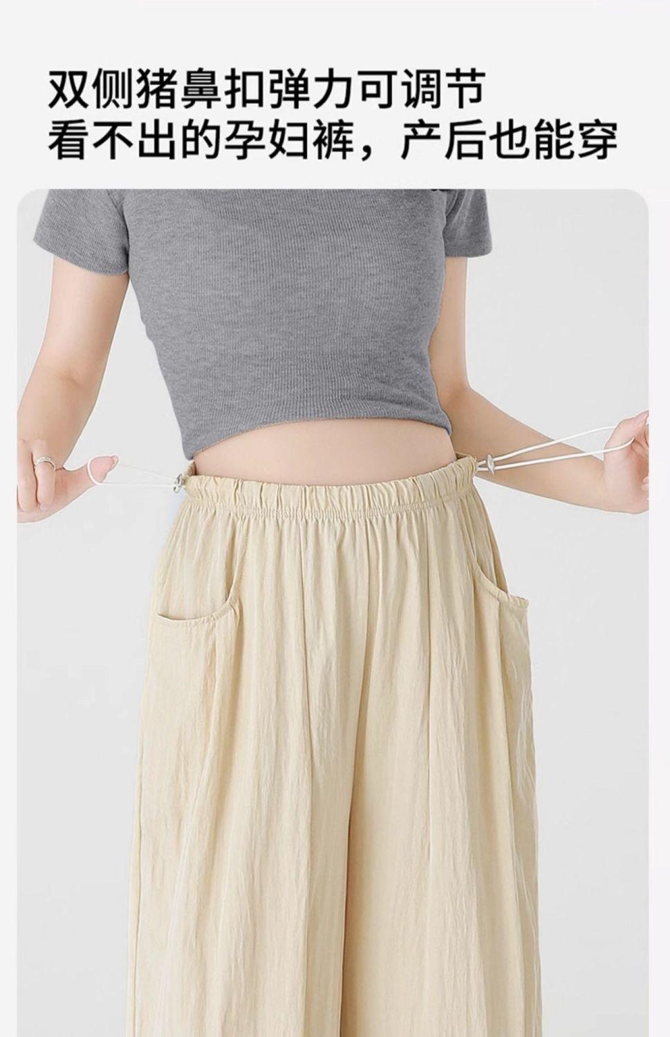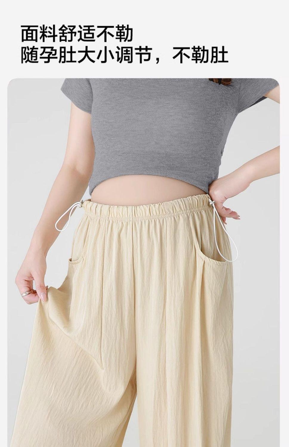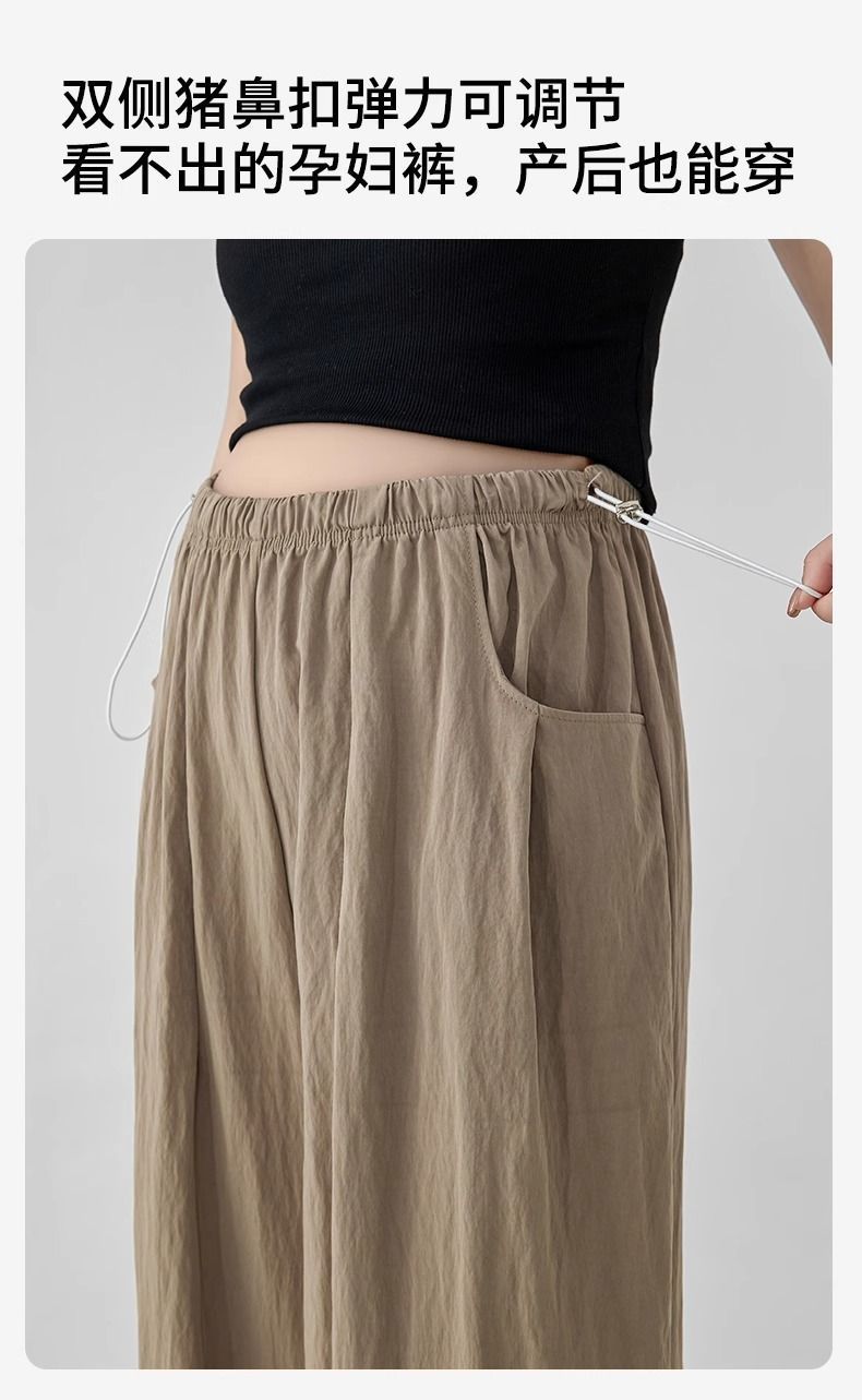 [Personalizado] Ropa de Maternidad Casual y Transpirable, Primavera y Otoño, Sin Soporte para el Vientre, Cordón Ajustable, Cubre-Vientre Ajustable, Aspecto Adelgazante, Pantalones Rectos de Verano
