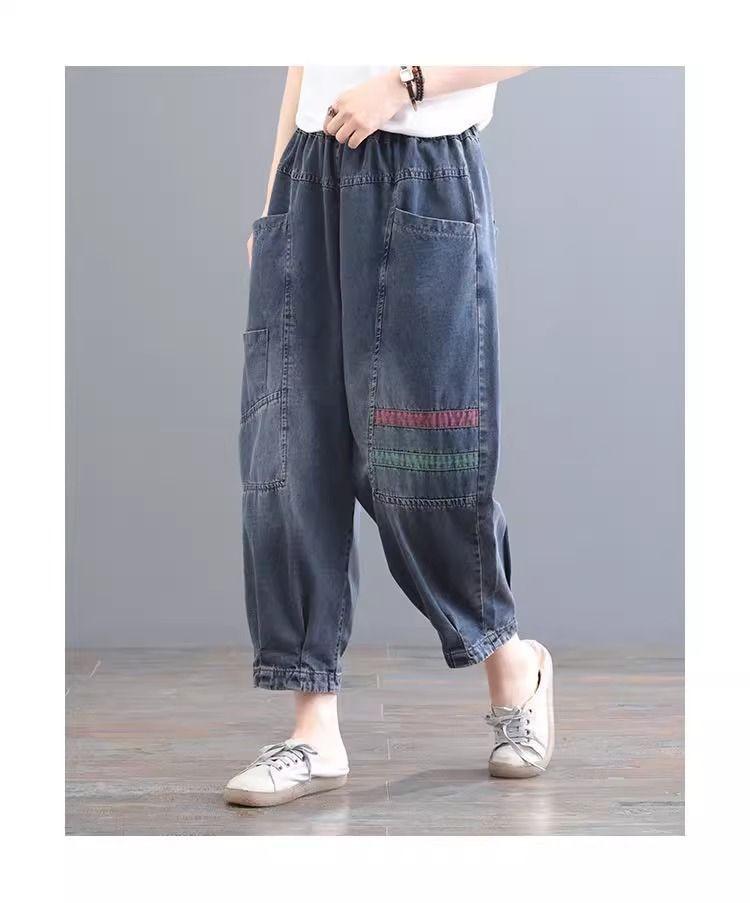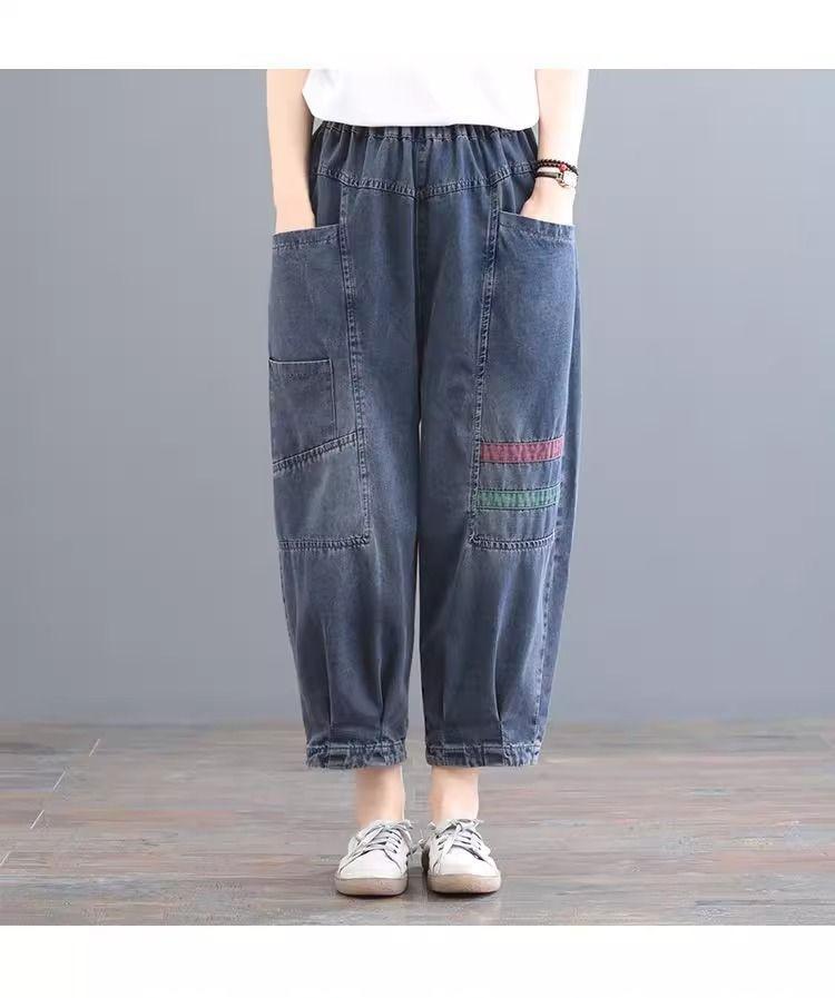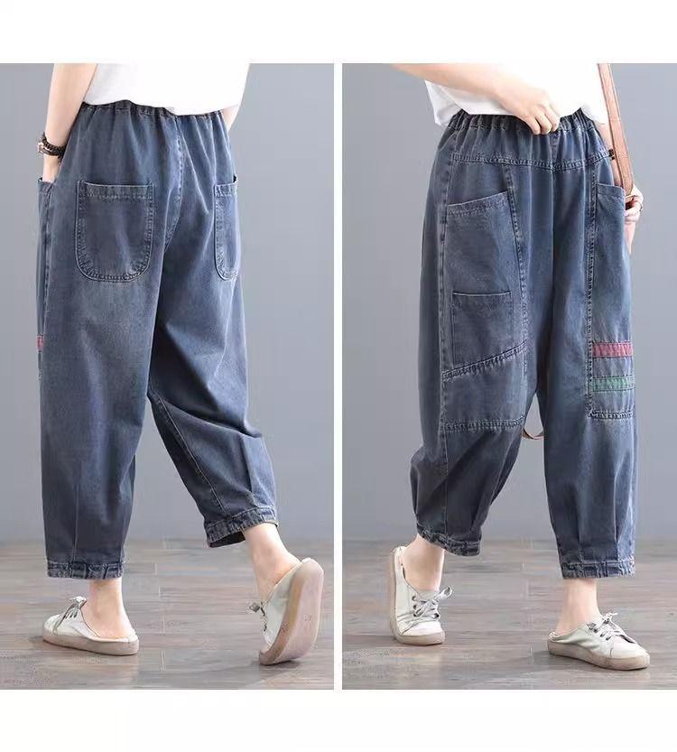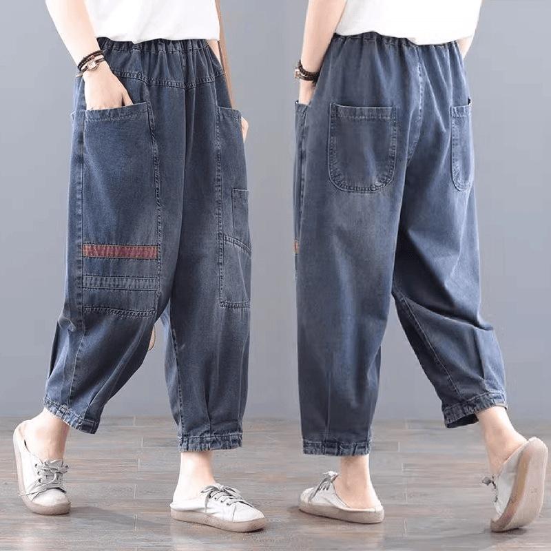 Jeans Harem de Talla Grande Estilo Coreano con Bolsillo Grande para Mujer 2025 Verano Nuevo Cintura Alta Sueltos Adelgazantes Elegantes Pantalones de Papá