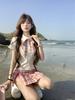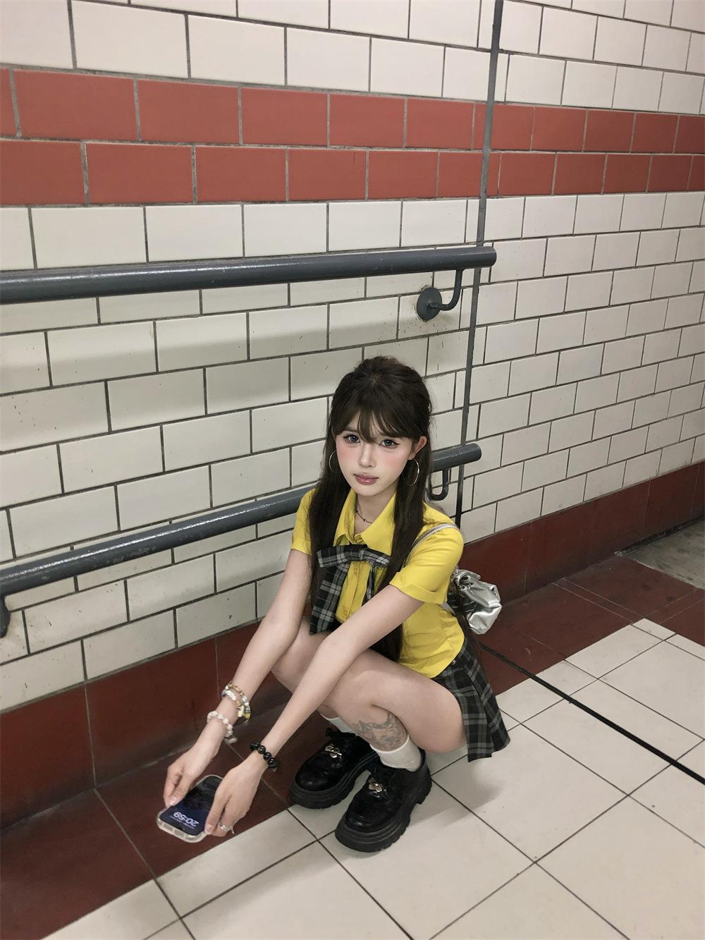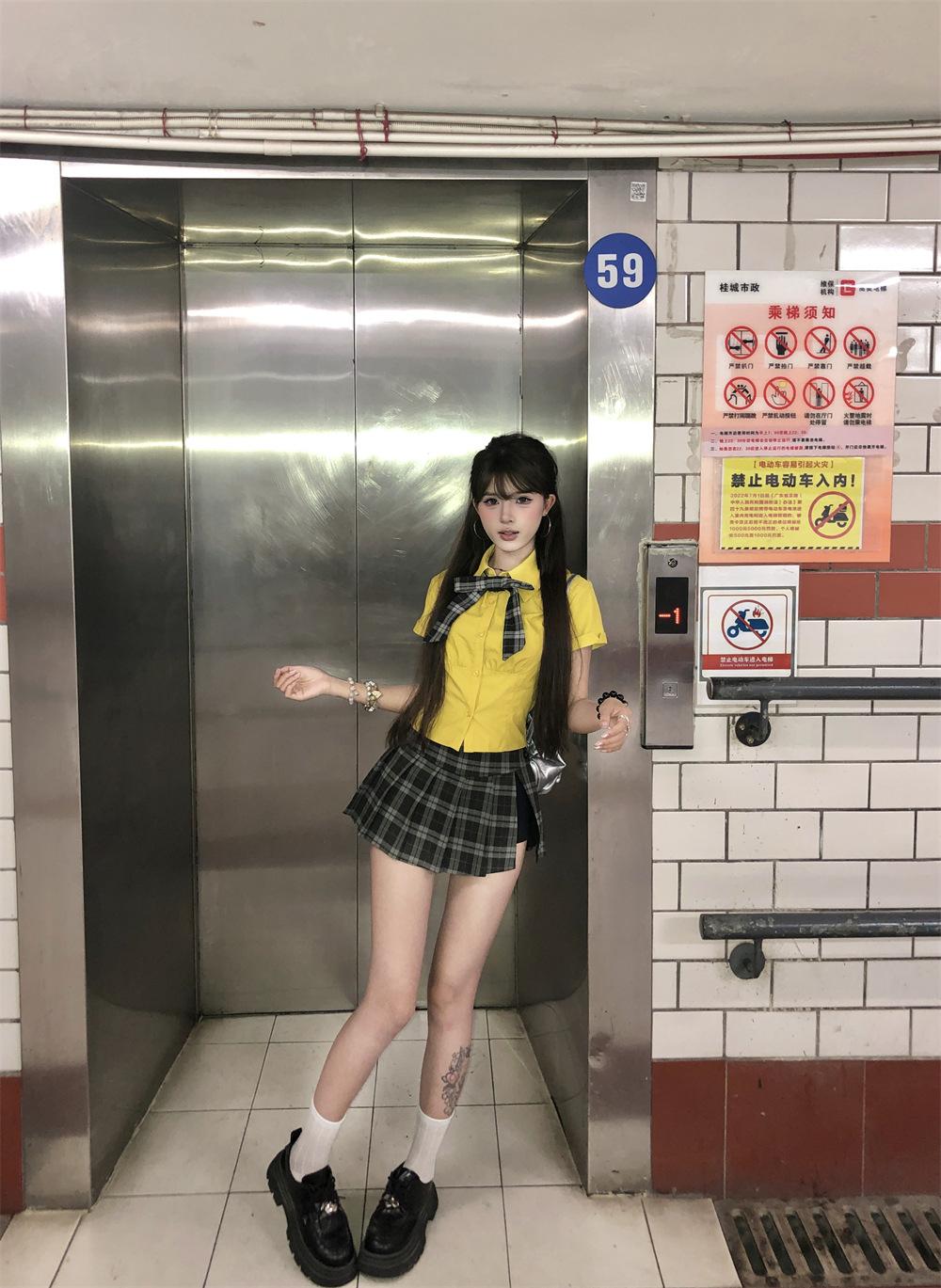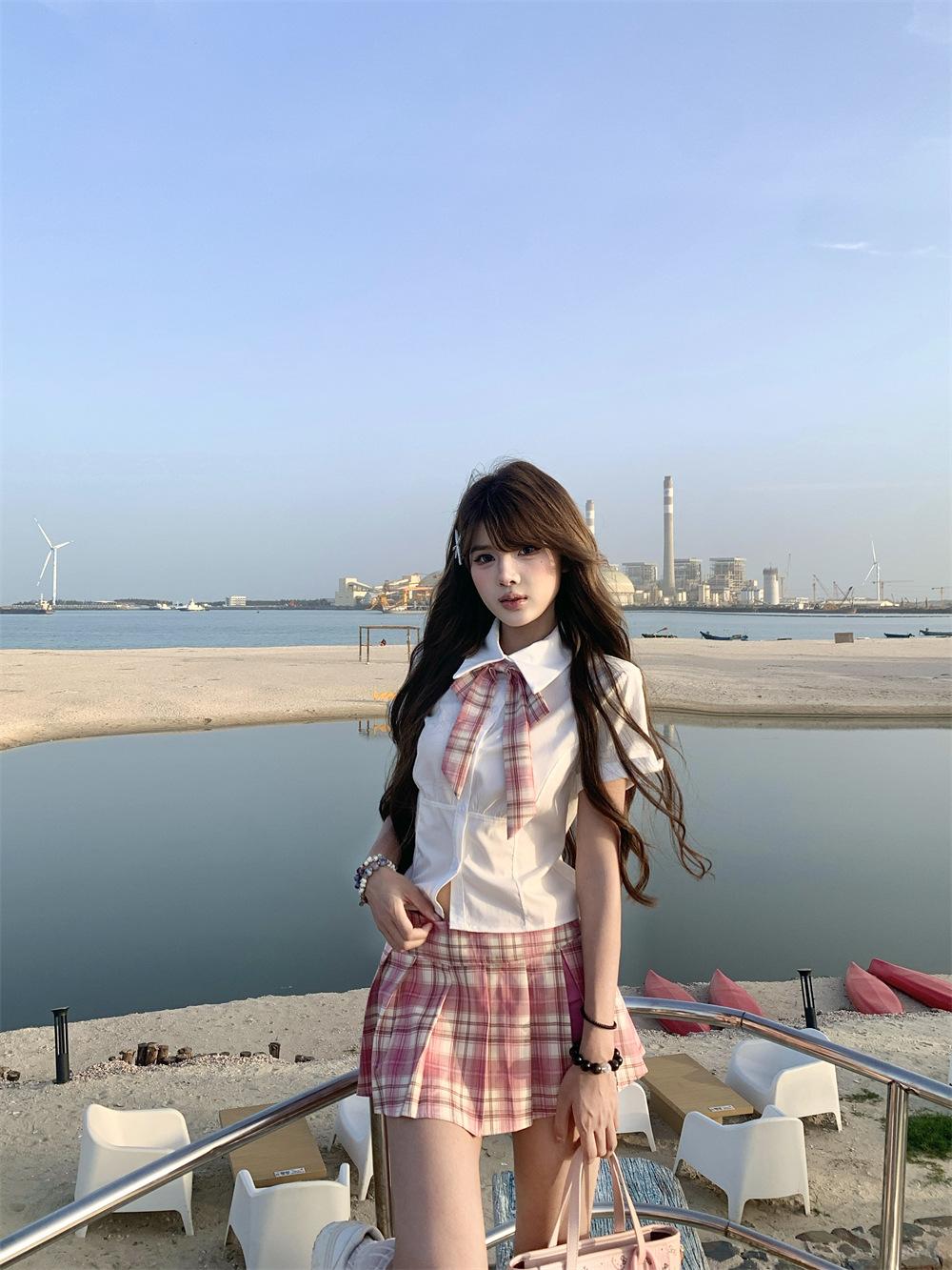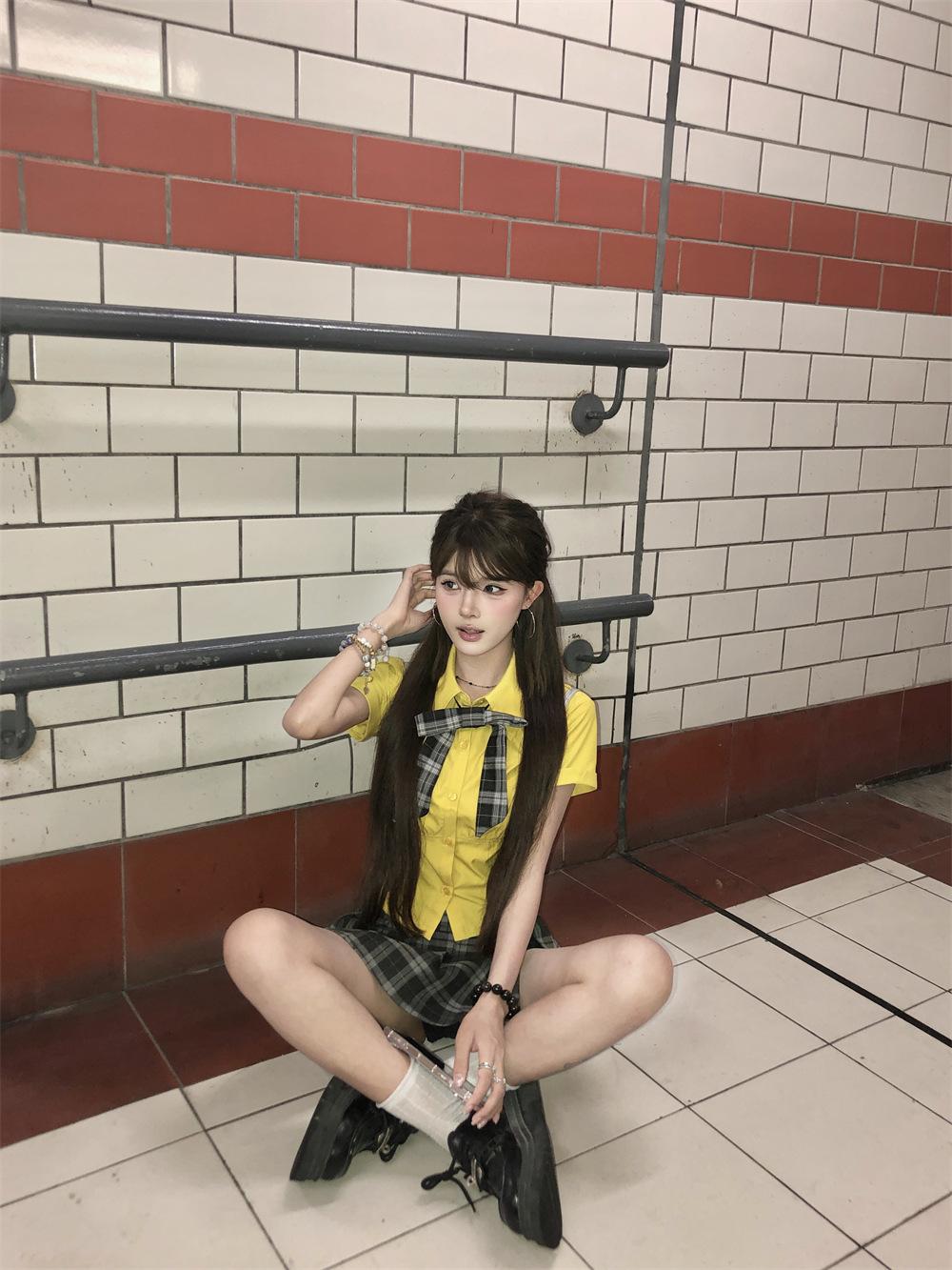PD: La falda midi tiene forro de shorts, la camisa se combina con un moño a cuadros.