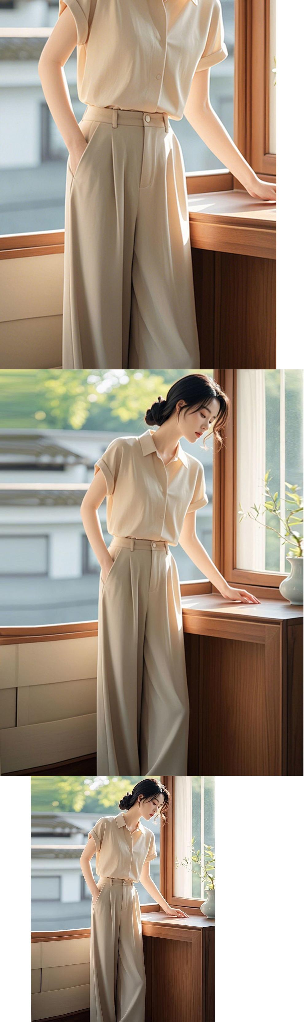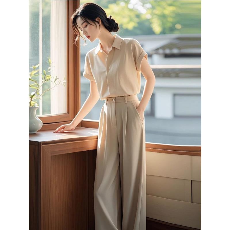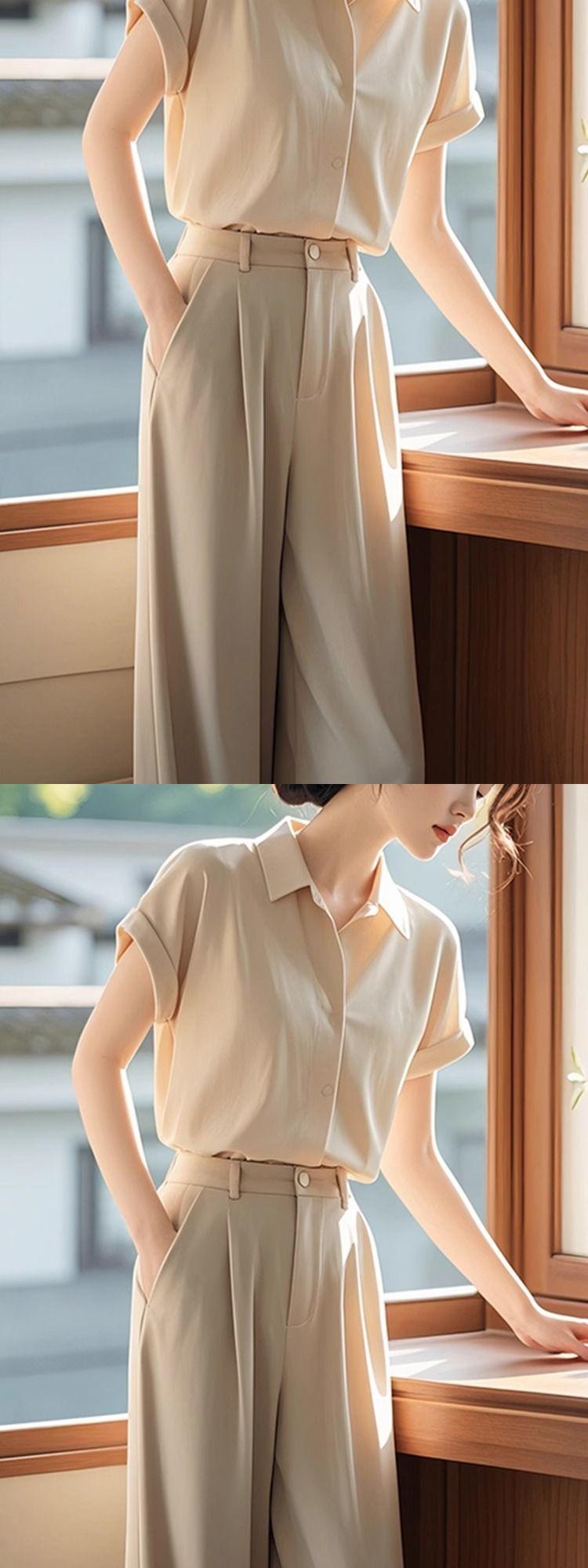 Conjunto de Dos Piezas de Camisa y Pantalón Profesional Elegante Minimalista de Alta Gama para Mujer
