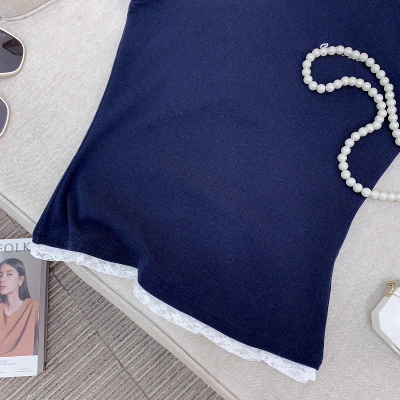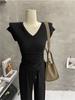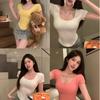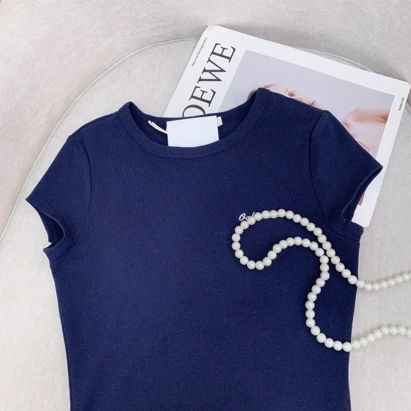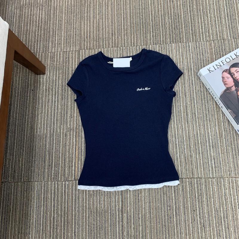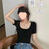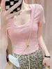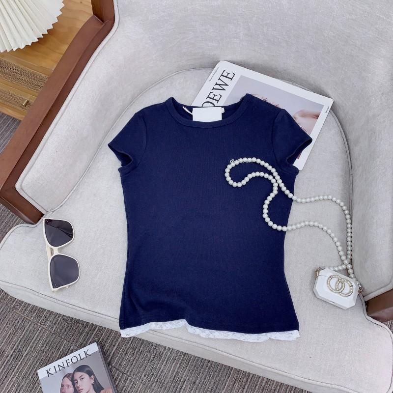 Stock Listo para Verte y Buen Clima" Encaje Amigable con la Piel Look Adelgazante Ajustado Camiseta de Manga Corta Top con Diseño de Nicho