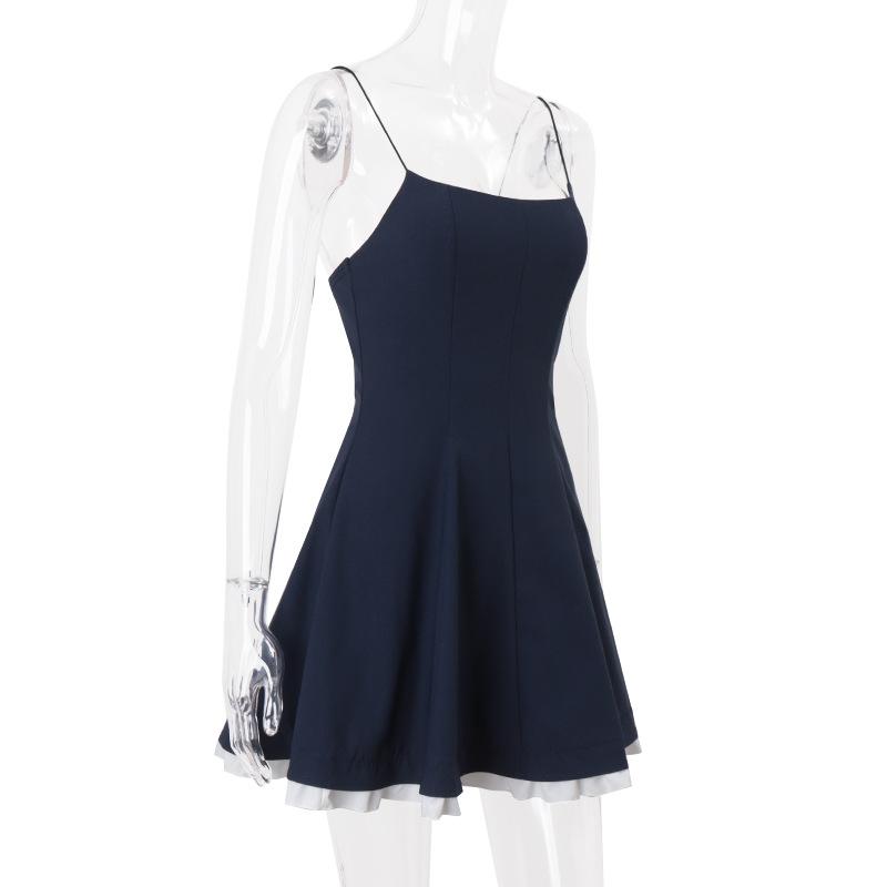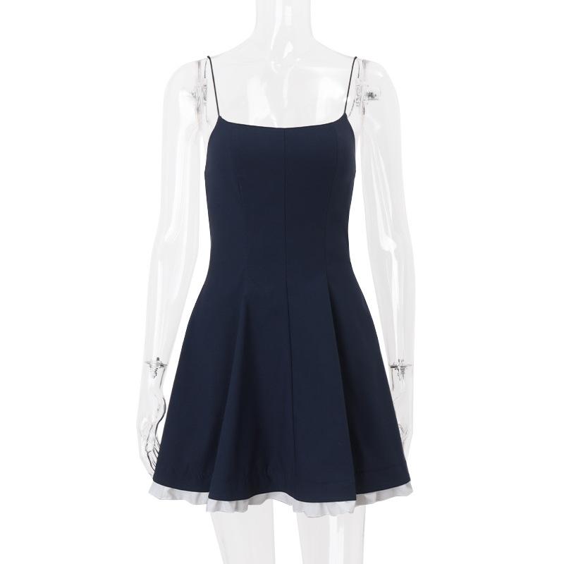 Ropa de Mujer Transfronteriza de Amazon 2025 Verano Nuevo Sexy Temperamento de Lujuria Pura Vestido Delgado de Tirantes de Color Puro Sexy