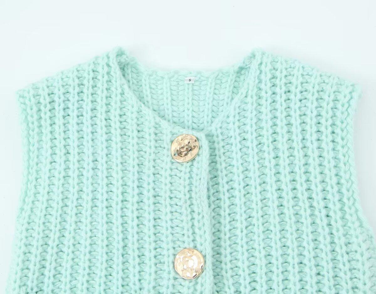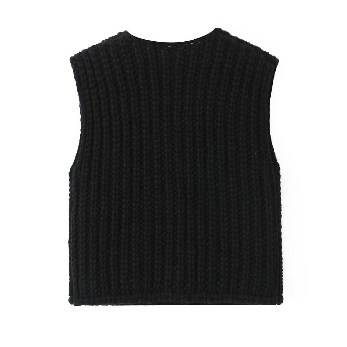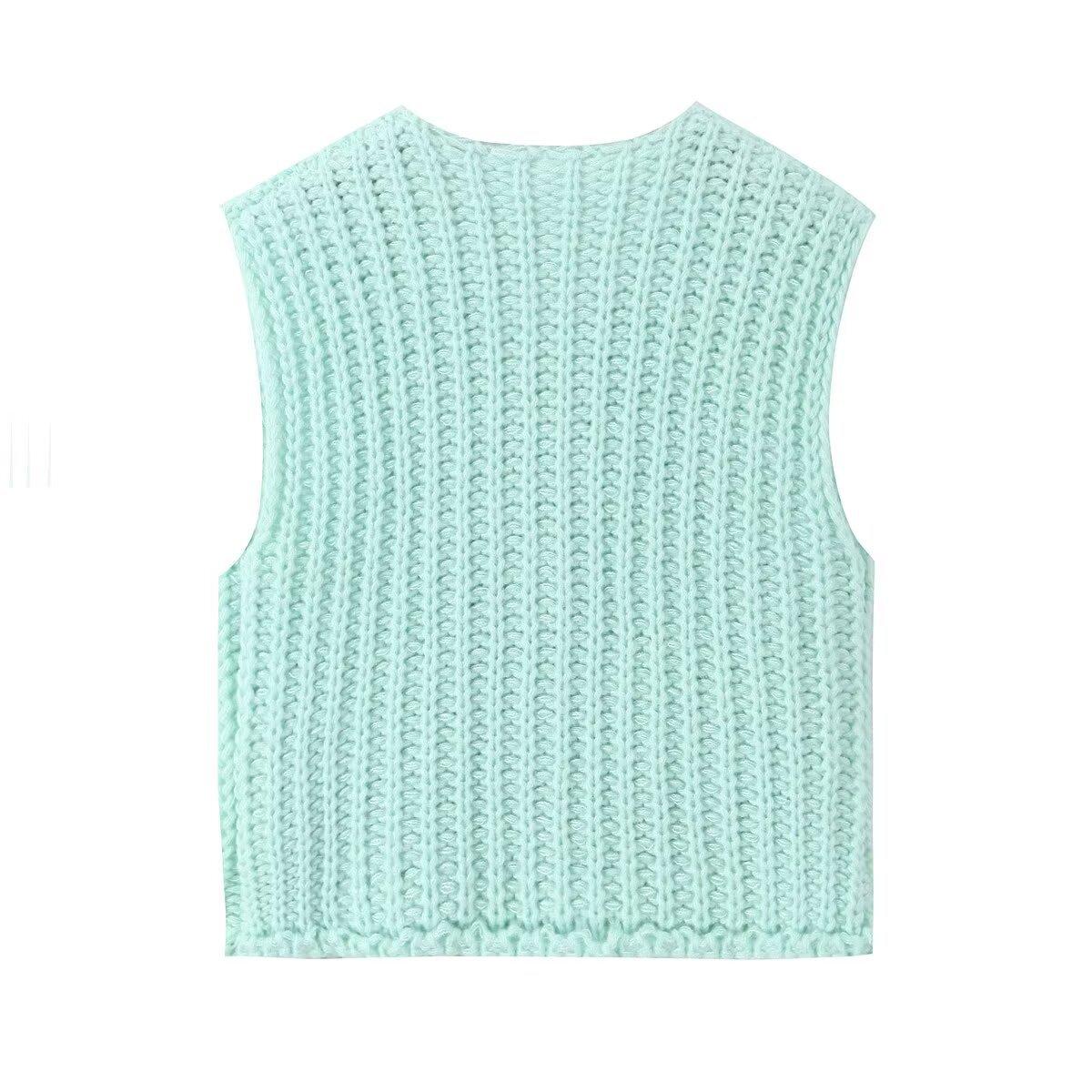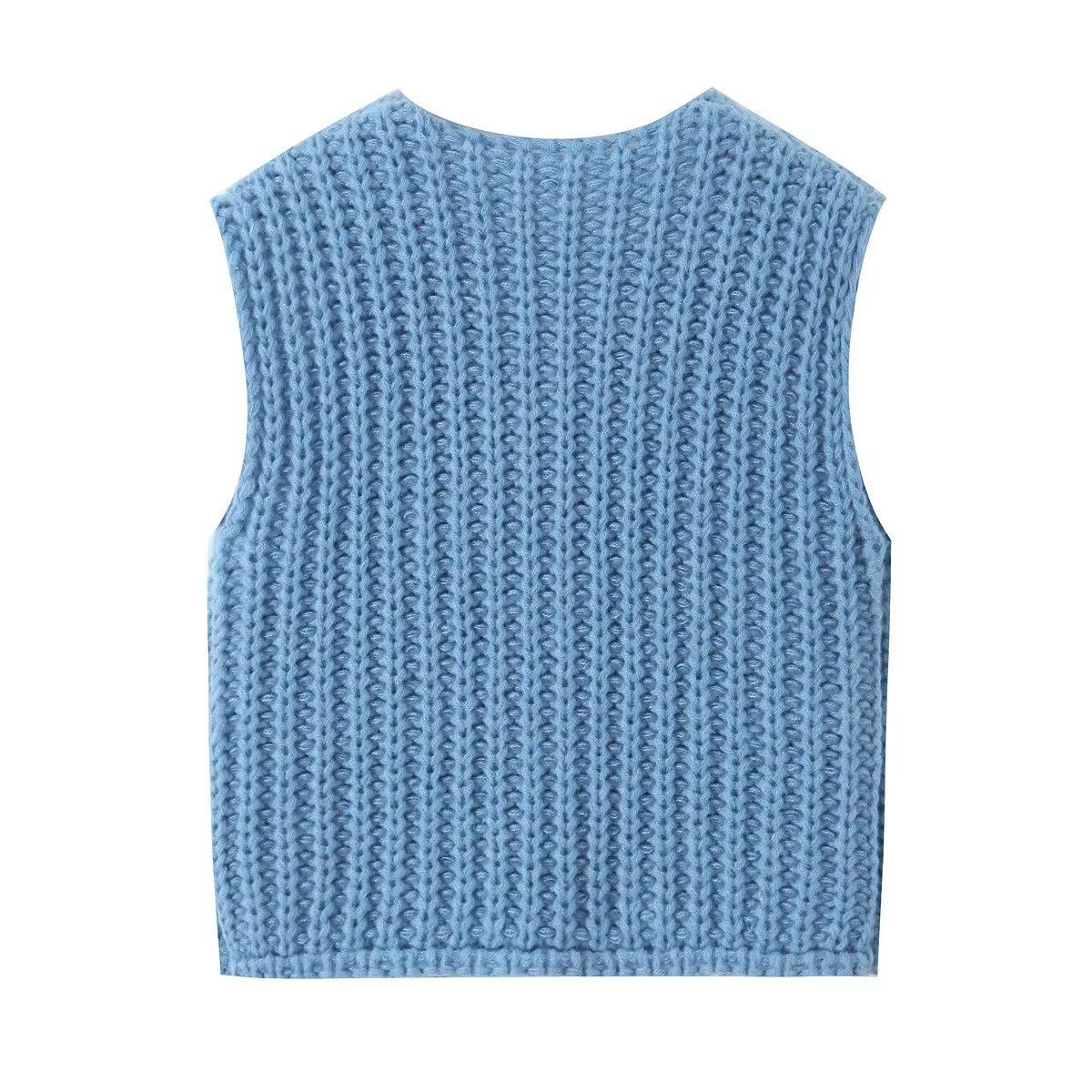 Ropa de Otoño para Mujer 2024 Nuevo Estilo Europeo y Americano Moda Simple Sin Mangas Chaleco Corto de Punto
