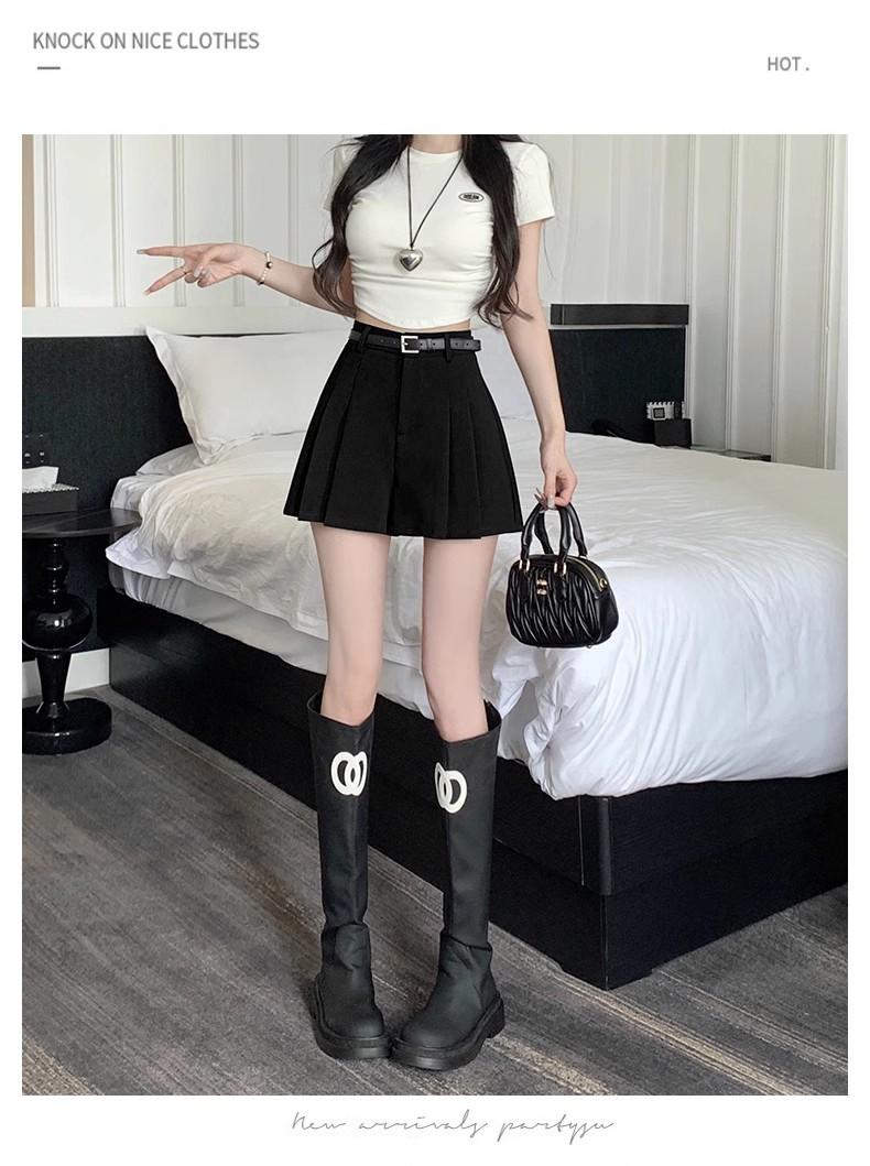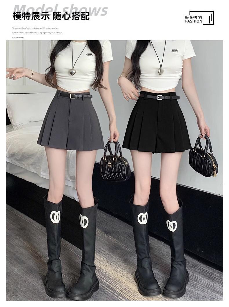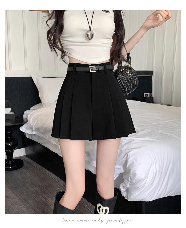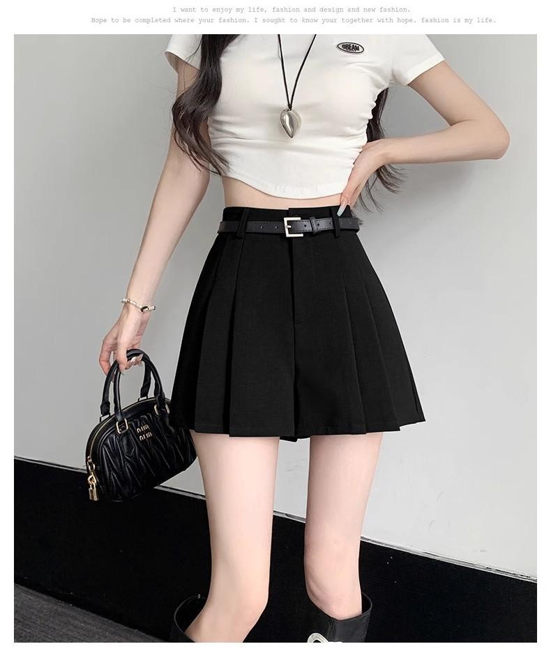 Falda Plisada Negra Cintura Alta Adelgazante Falda Midi 2024 Estilo de Verano para Mujer Falda Corta Falda Ajustada Falda Línea A Pantalón Culotte Moderno Versátil