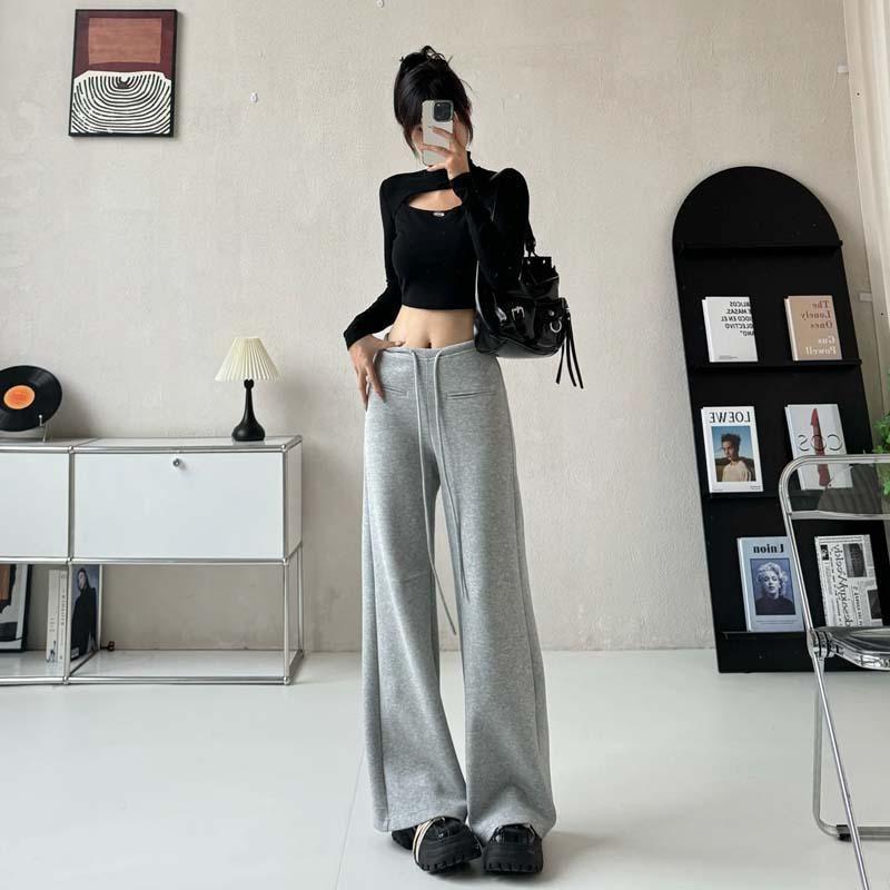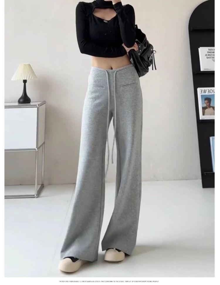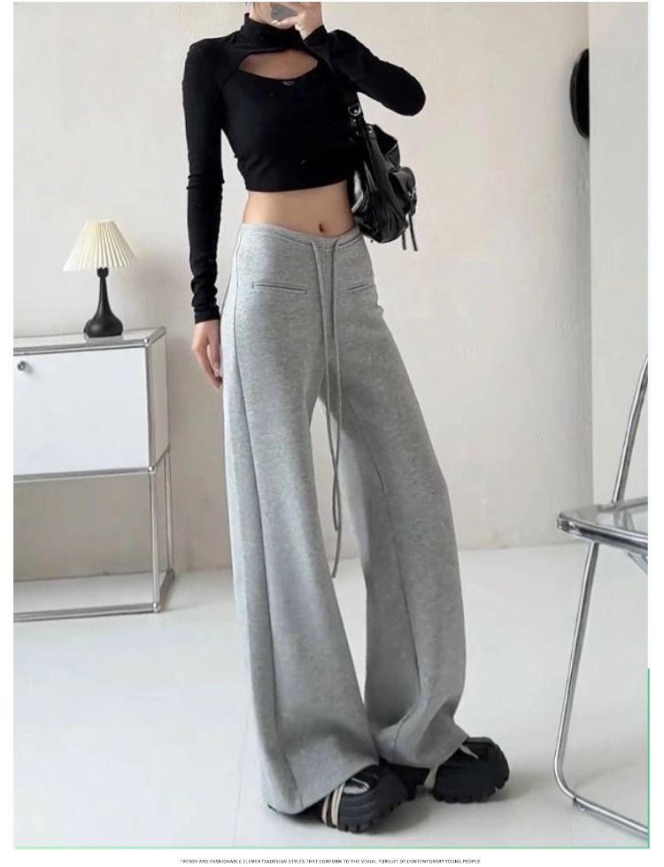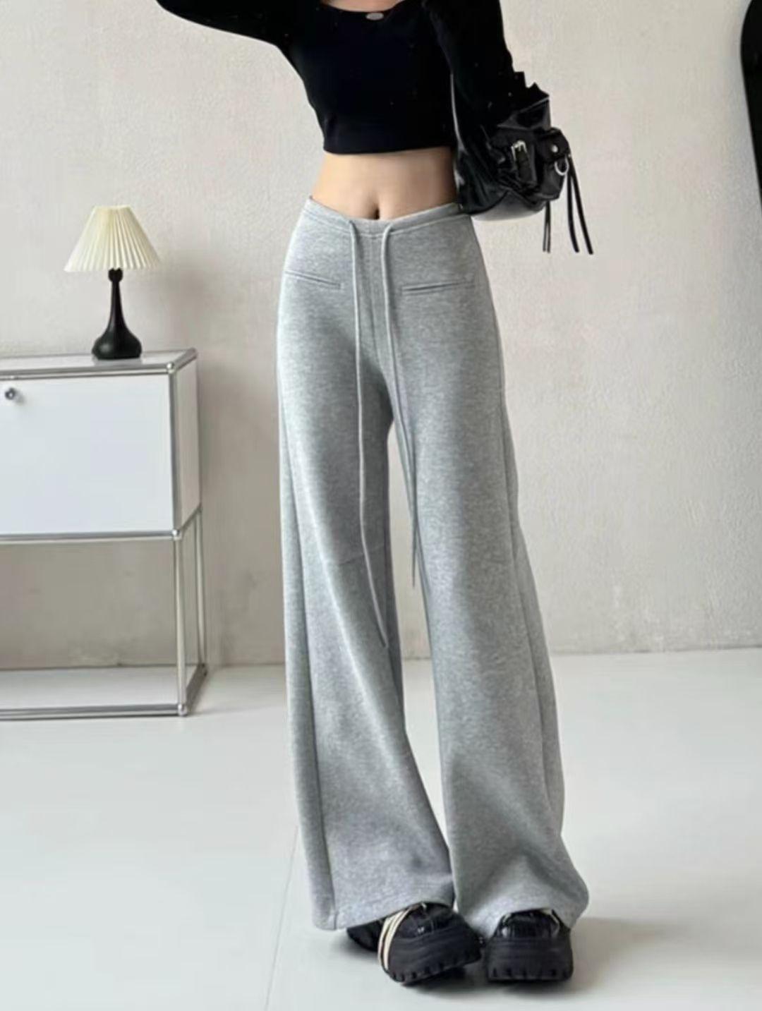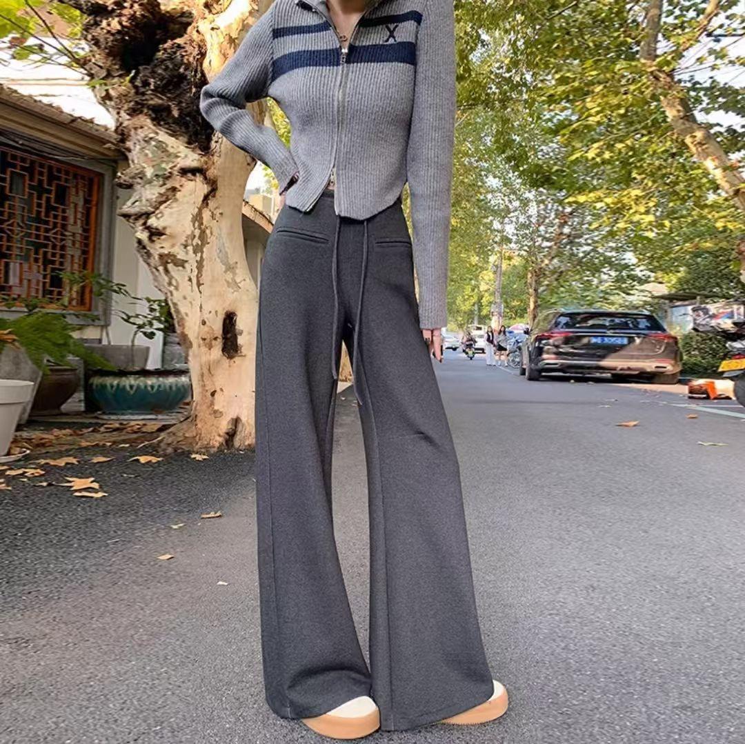 Pantalones deportivos holgados estilo perezoso 2025 para mujer estilo coreano versátiles con cordón tejidos de pierna ancha color sólido simples que cubren la cadera