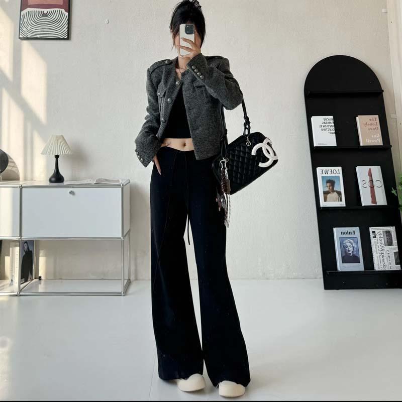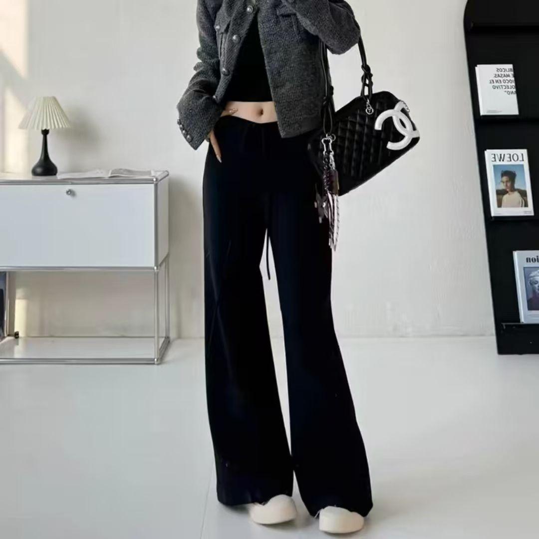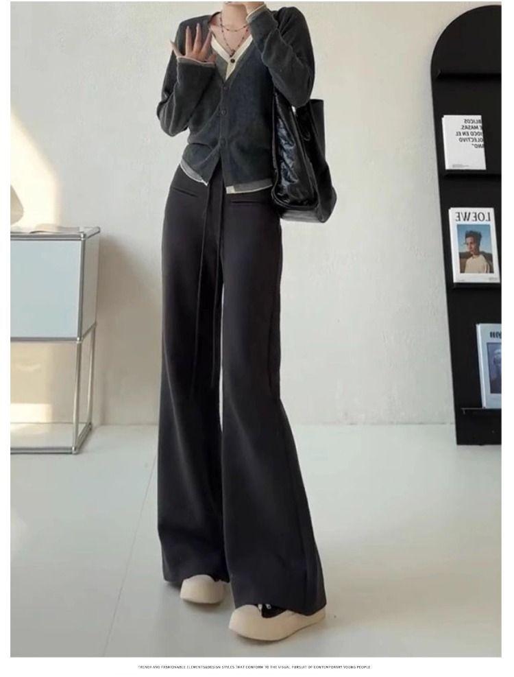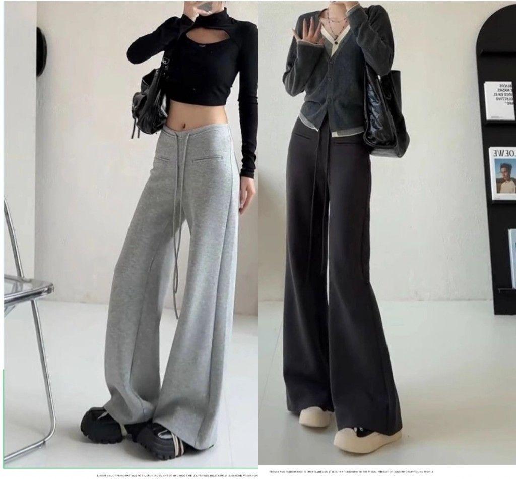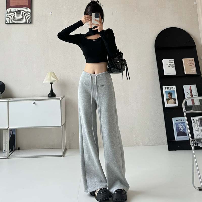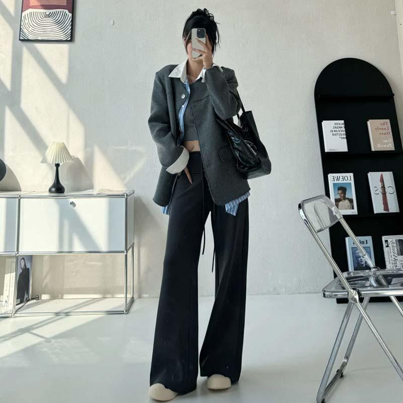Pantalones deportivos holgados estilo perezoso 2025 para mujer estilo coreano versátiles con cordón tejidos de pierna ancha color sólido simples que cubren la cadera