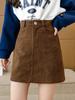 Falda de Cintura Alta con Aspecto Adelgazante para Mujer 2025 Otoño e Invierno Nueva Falda de Cadera de Pana Color Café Estilo Coreano Falda Elegante Línea A
