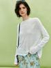Blusa Ligera Bordada Tridimensional de Cáñamo y Lino, Cuello Redondo Simple y Elegante, Hombros Caídos, Camiseta de Punto Holgada de Pierna Recta y Manga Larga