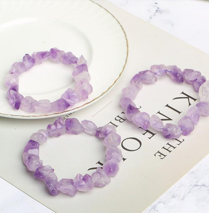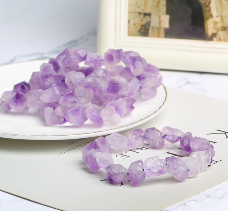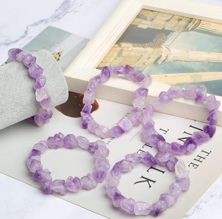 Pulsera de Diente de Flor de Amatista Natural de Venta Caliente Amatista Piedra Bruta Pulsera de un Círculo Joyería de Cuentas DIY