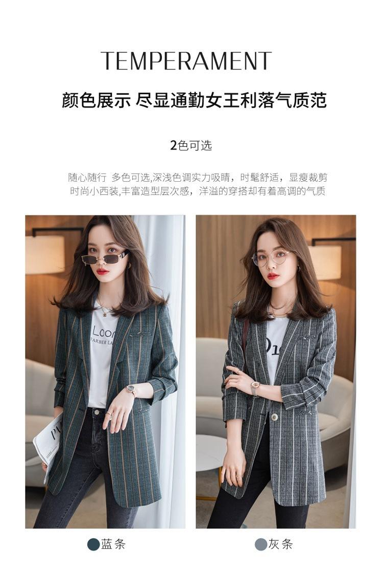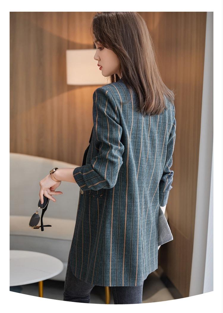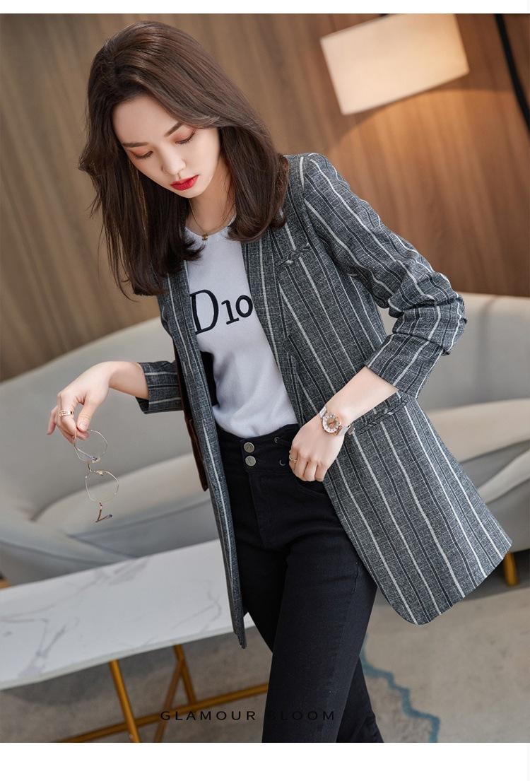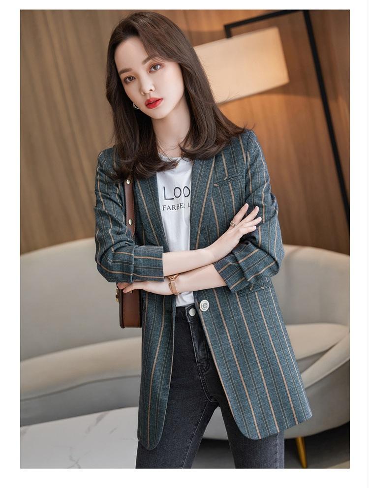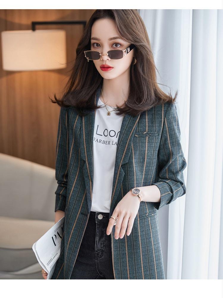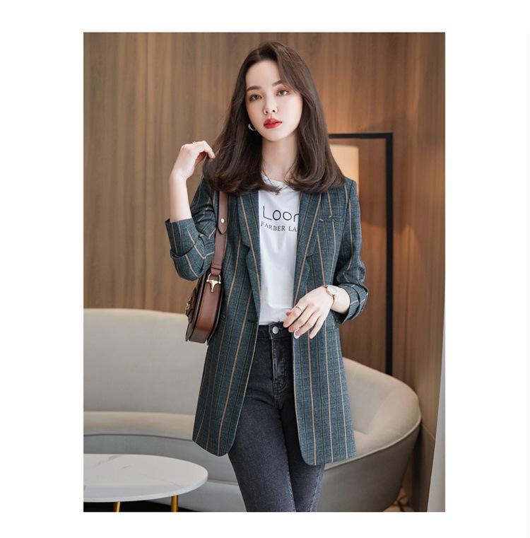 Chaqueta de Traje Pequeña para Mujer Primavera y Verano 2023 Manga Larga Drapeada Larga Coreana Rayada Profesional Casual Top de Traje para Mujer