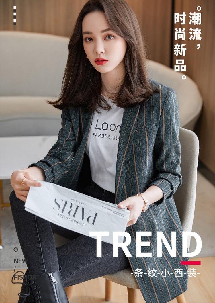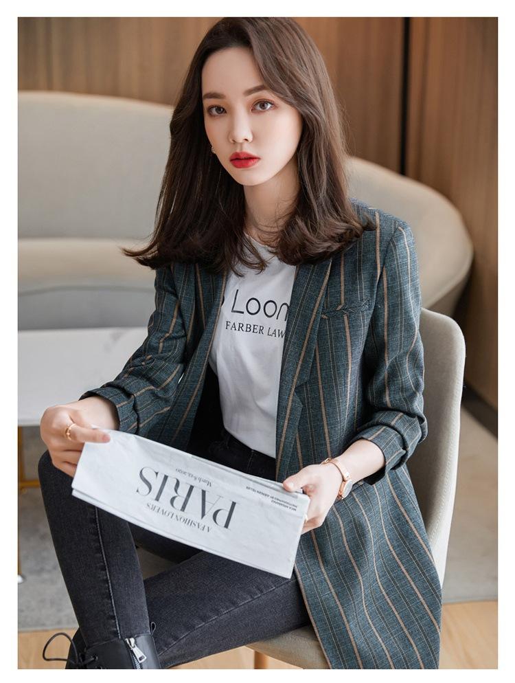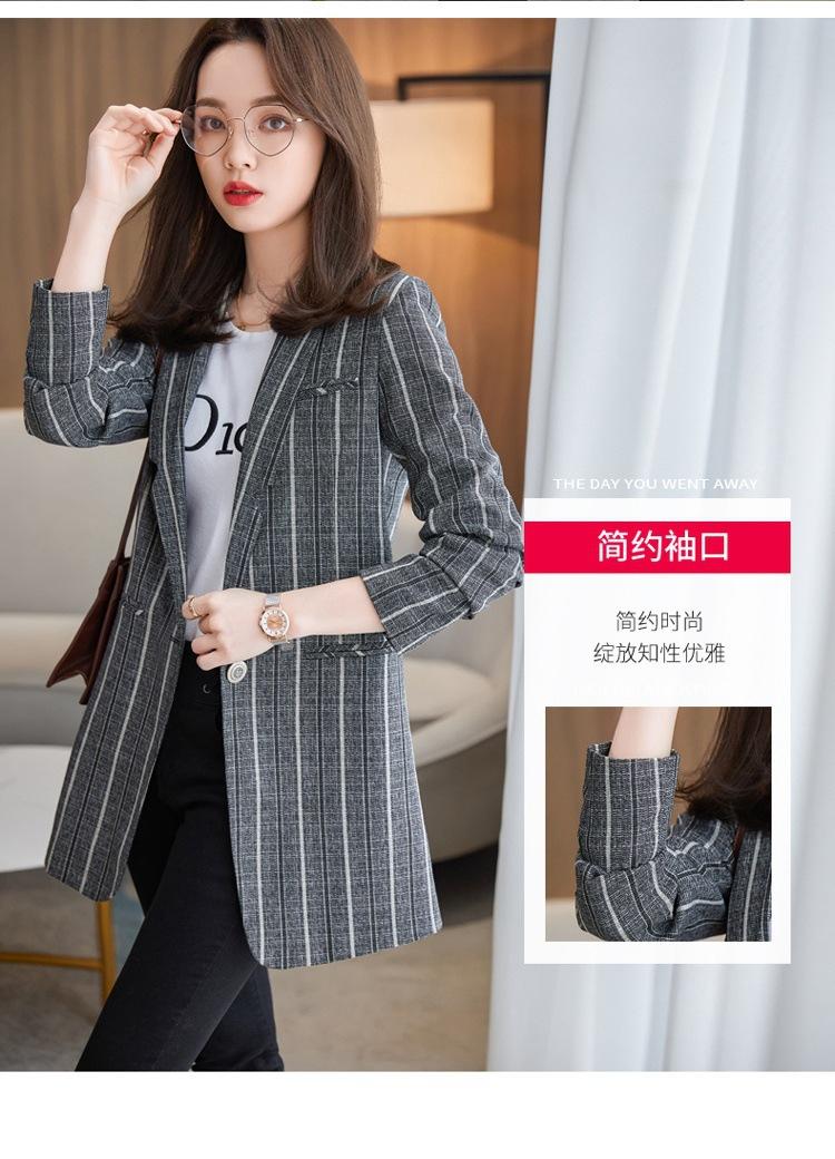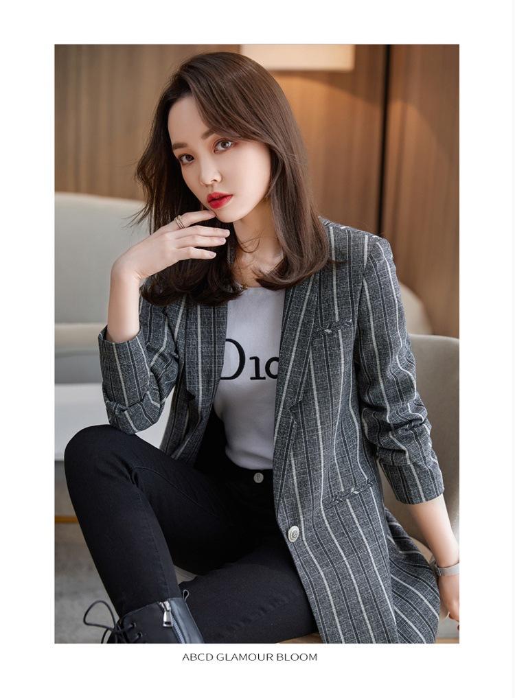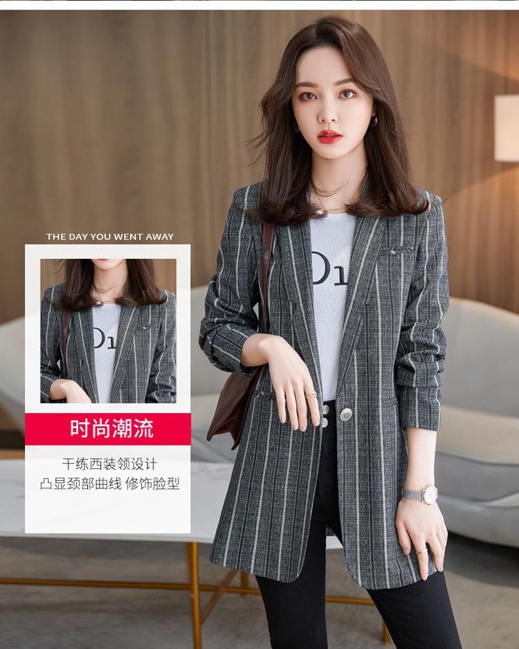 Chaqueta de Traje Pequeña para Mujer Primavera y Verano 2023 Manga Larga Drapeada Larga Coreana Rayada Profesional Casual Top de Traje para Mujer