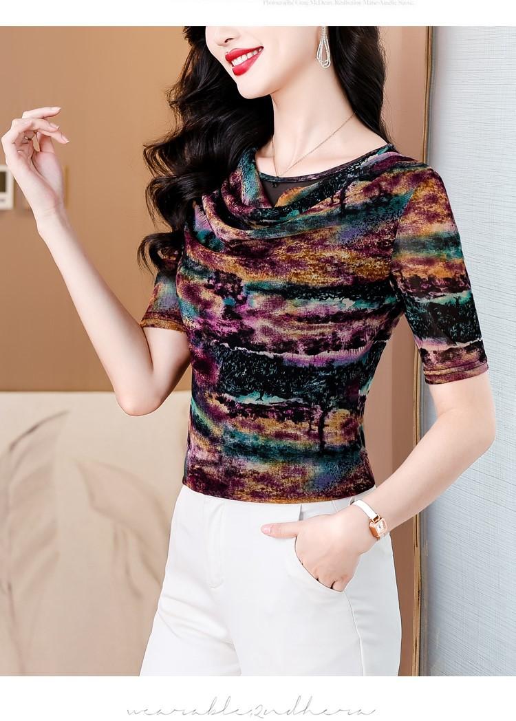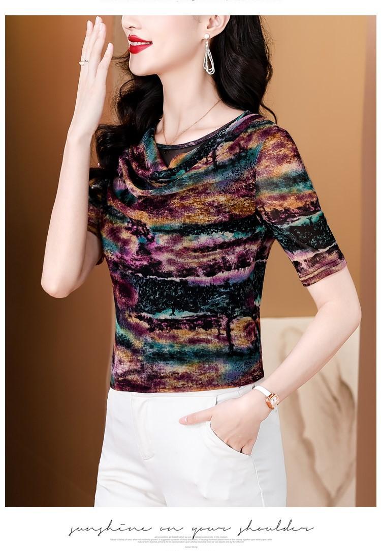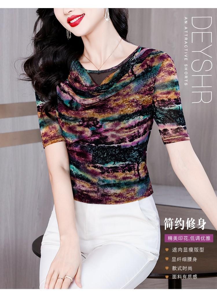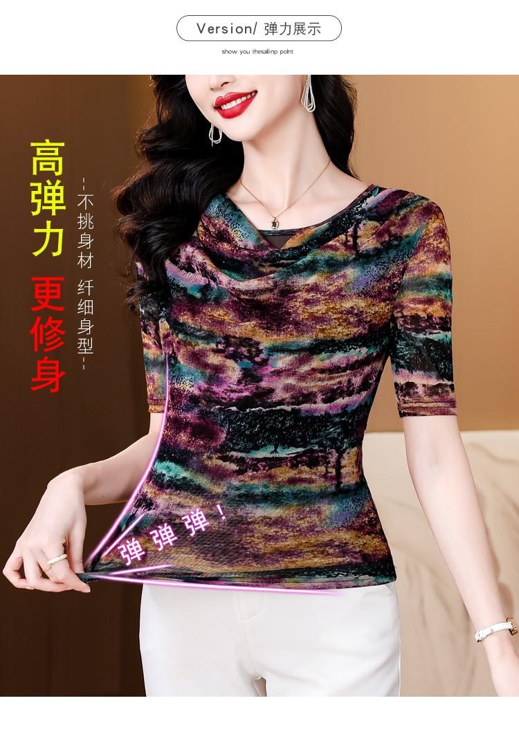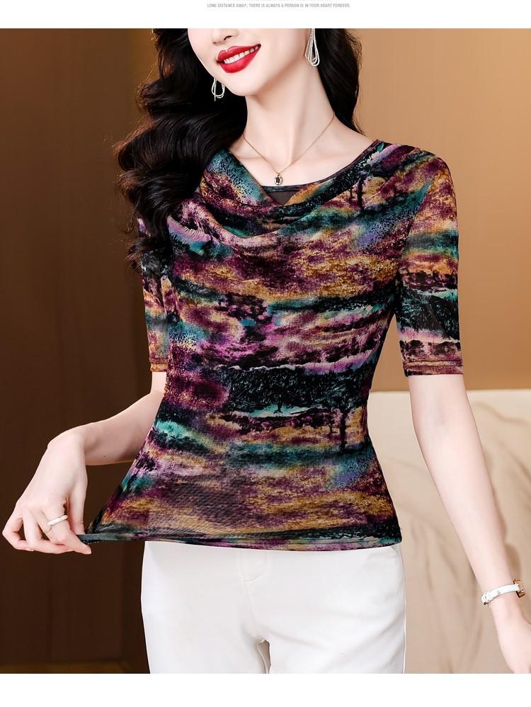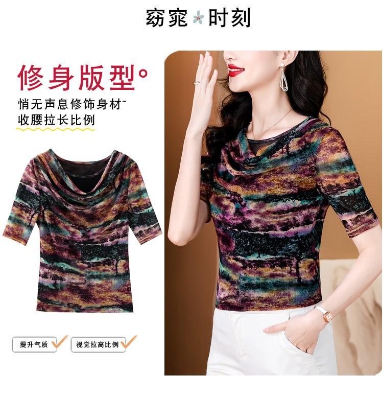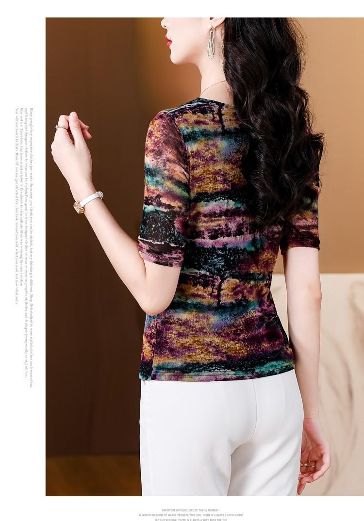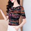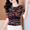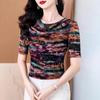 Popular Camiseta de Manga Corta para Mujer Verano 2025 Nueva Malla Adelgazante para Madres y Top Elegante