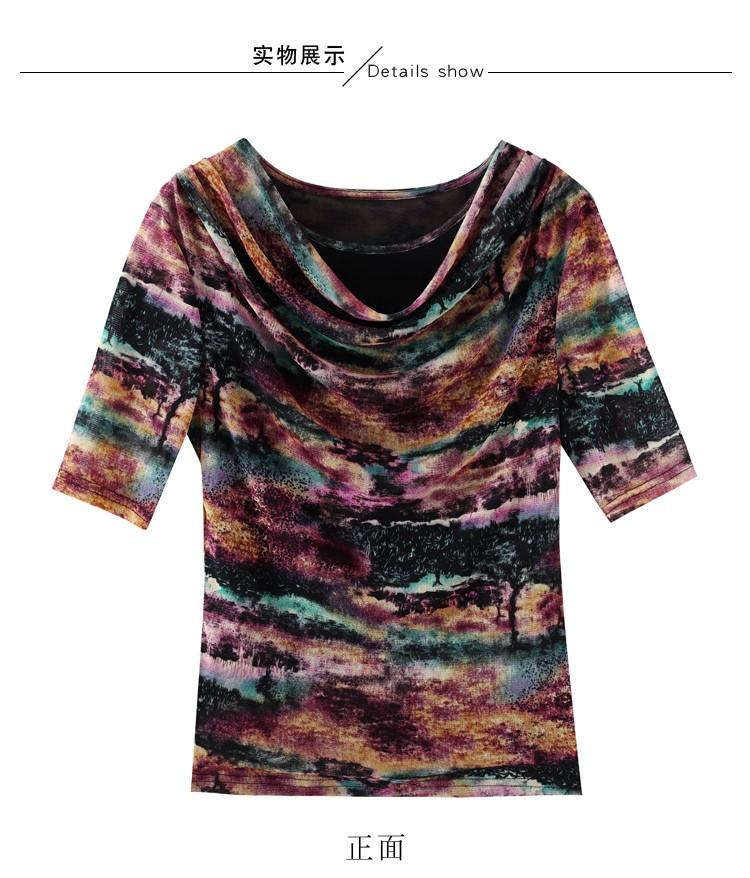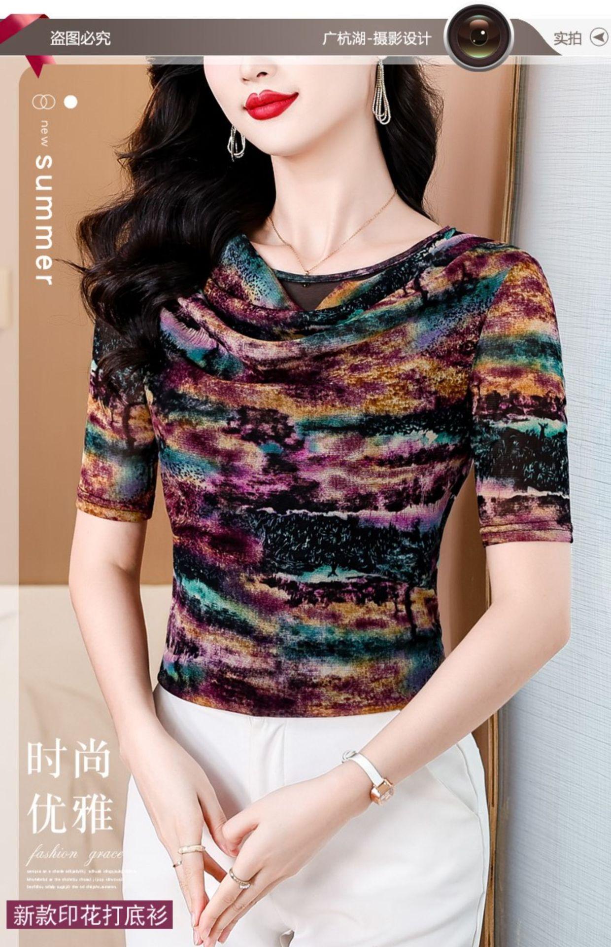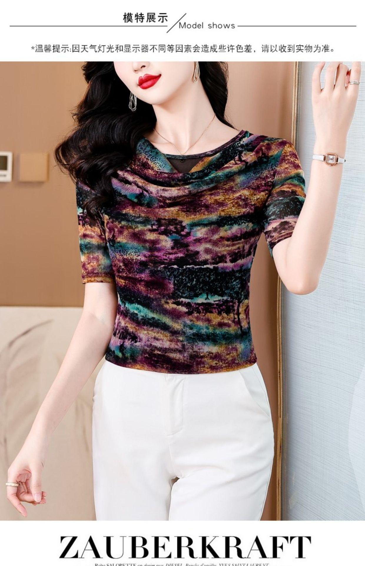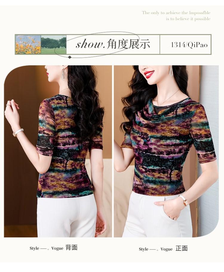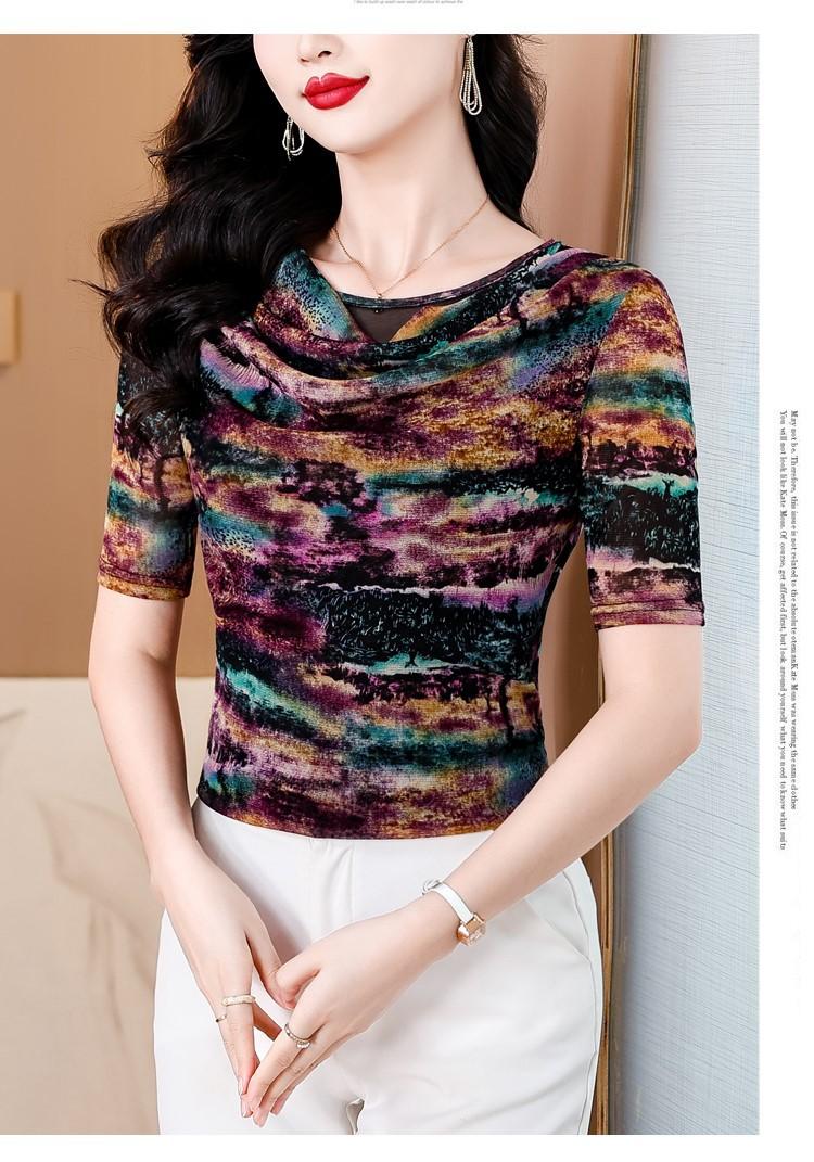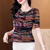 Popular Camiseta de Manga Corta para Mujer Verano 2025 Nueva Malla Adelgazante para Madres y Top Elegante