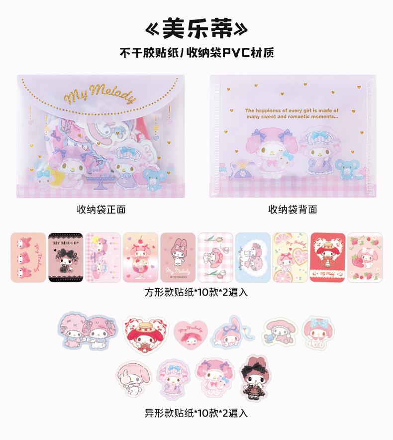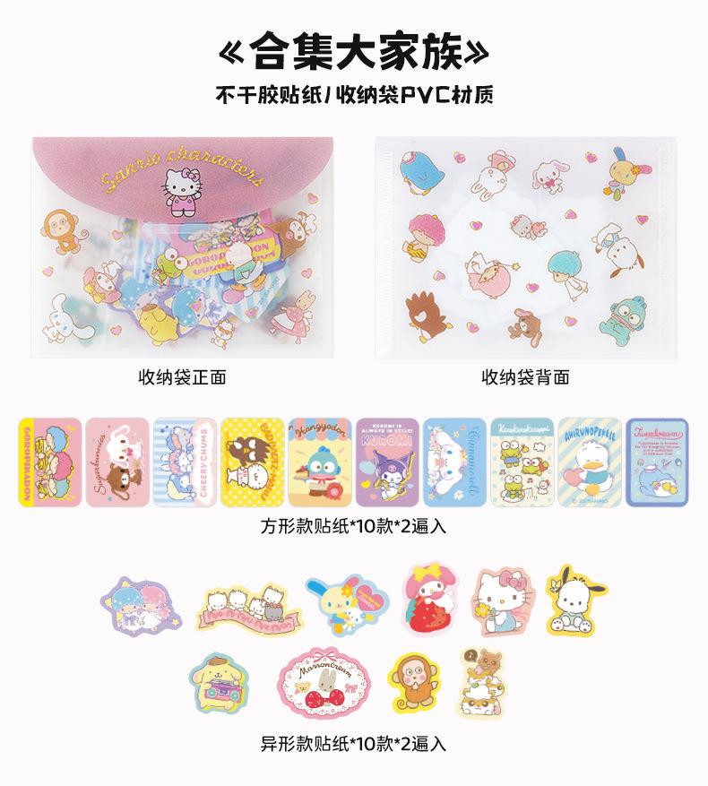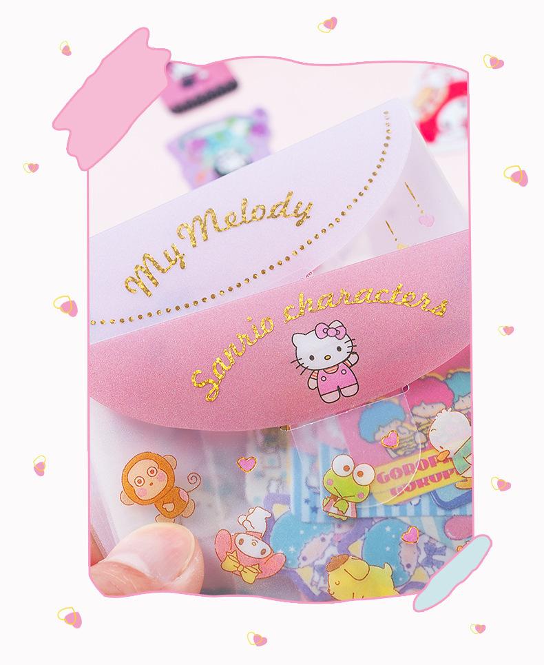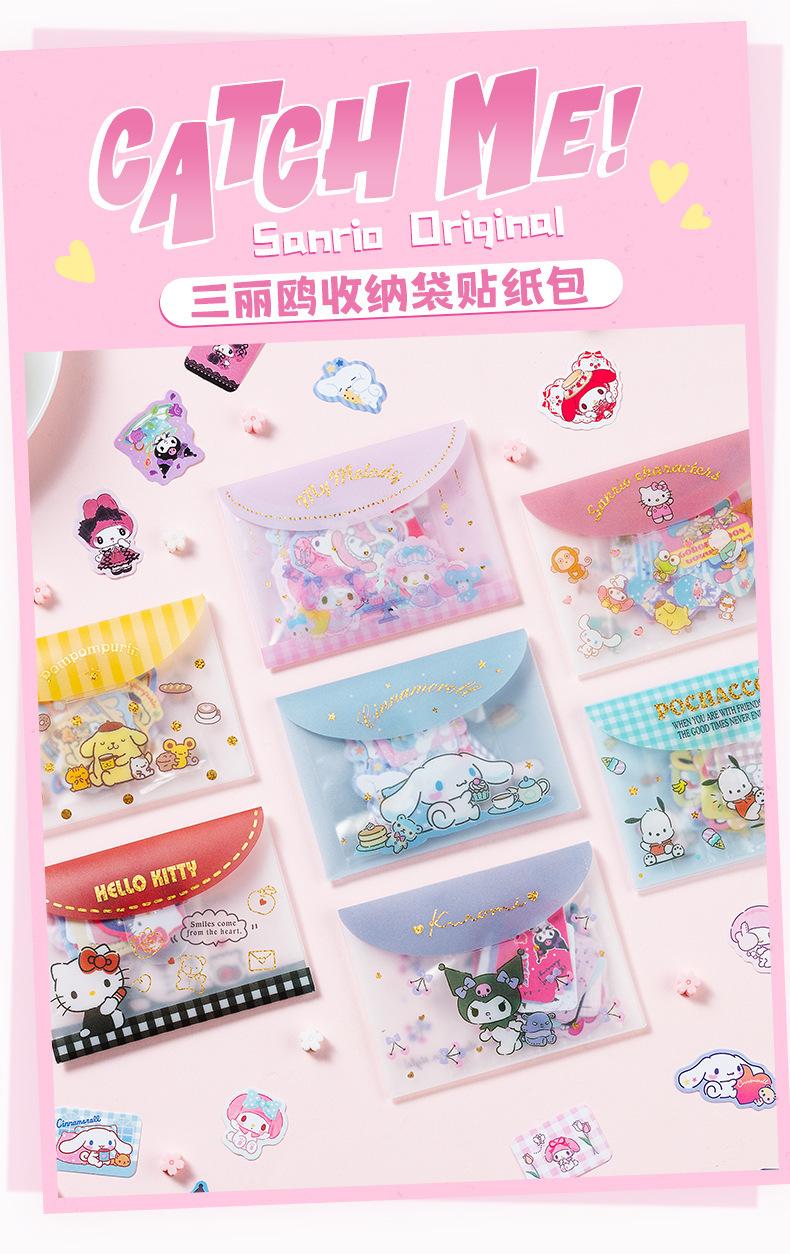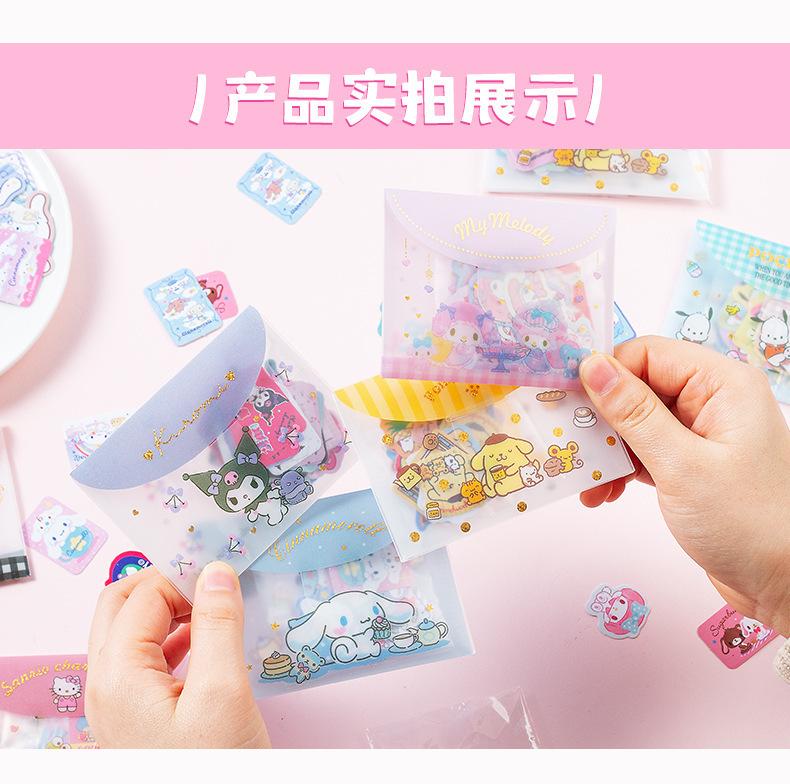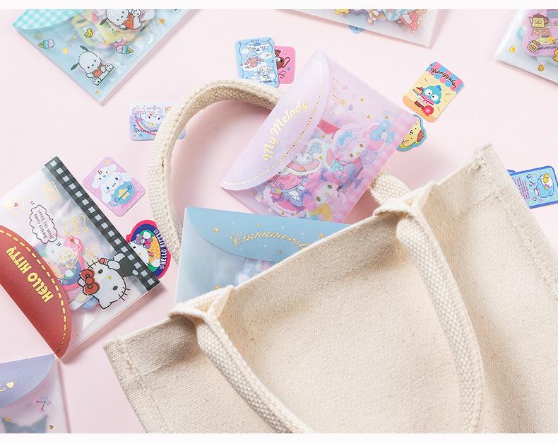 Sanrio Lindo Dibujo Animado Bolsa de Papel Adhesivo DIY Cuenta de Mano Diario Material de Decoración Adhesivo Bolsa de Almacenamiento de PVC Papelería
