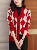 Suéter Cárdigan de Punto con Cuello en V en Forma de Diamante para Mujer, Combinación de Colores, Rejuvenecedor, Versión Holgada, Aspecto Adelgazante, Versátil, Chaqueta de Moda Estilo Coreano
