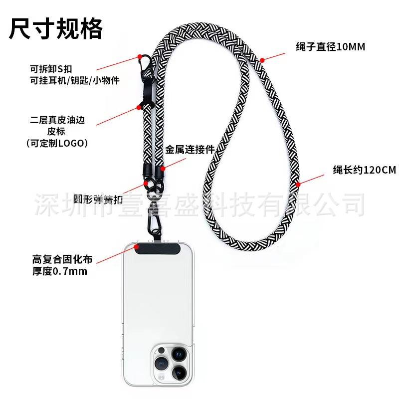 Fabricante en stock cordón para teléfono móvil de 10 mm de grosor sólido 120 cm de largo funda para teléfono móvil mano Copa cordón oblicuo cuerda anti-pérdida para exteriores