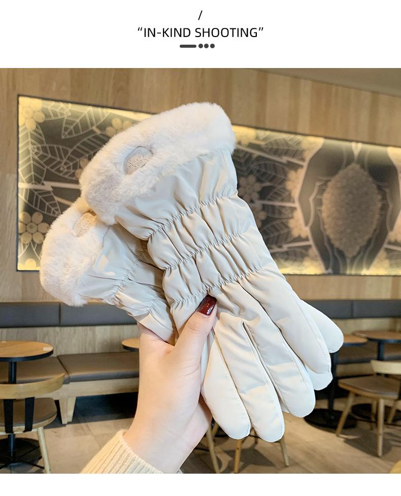 Guantes de Invierno para Mujer Cálidos Estilo Coreano Lindos Táctiles para Coche Eléctrico Resistentes al Frío Forrados de Felpa Engrosados para Ciclismo Cortavientos de Algodón para Esquí