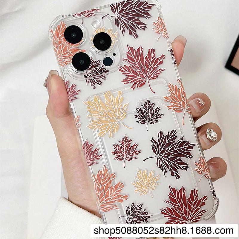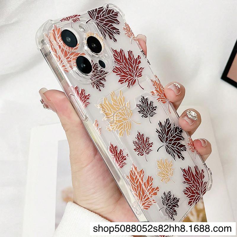 Arte Estampado Hoja de Arce Transparente Carcasa Blanda Adecuado para Iphone12Promax Apple 15 Funda para Teléfono Móvil 11 Tarjetero 1314