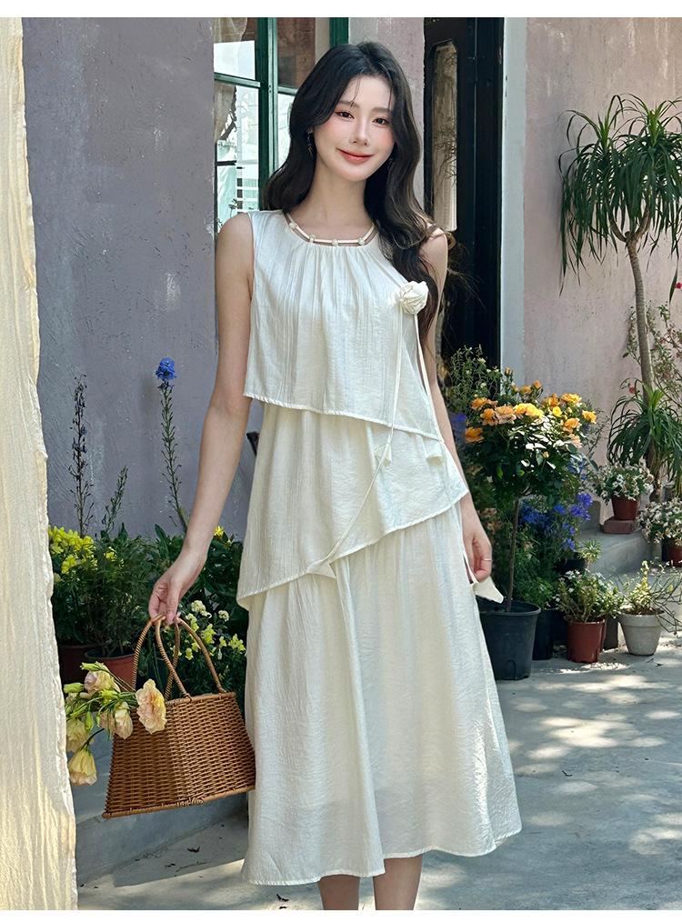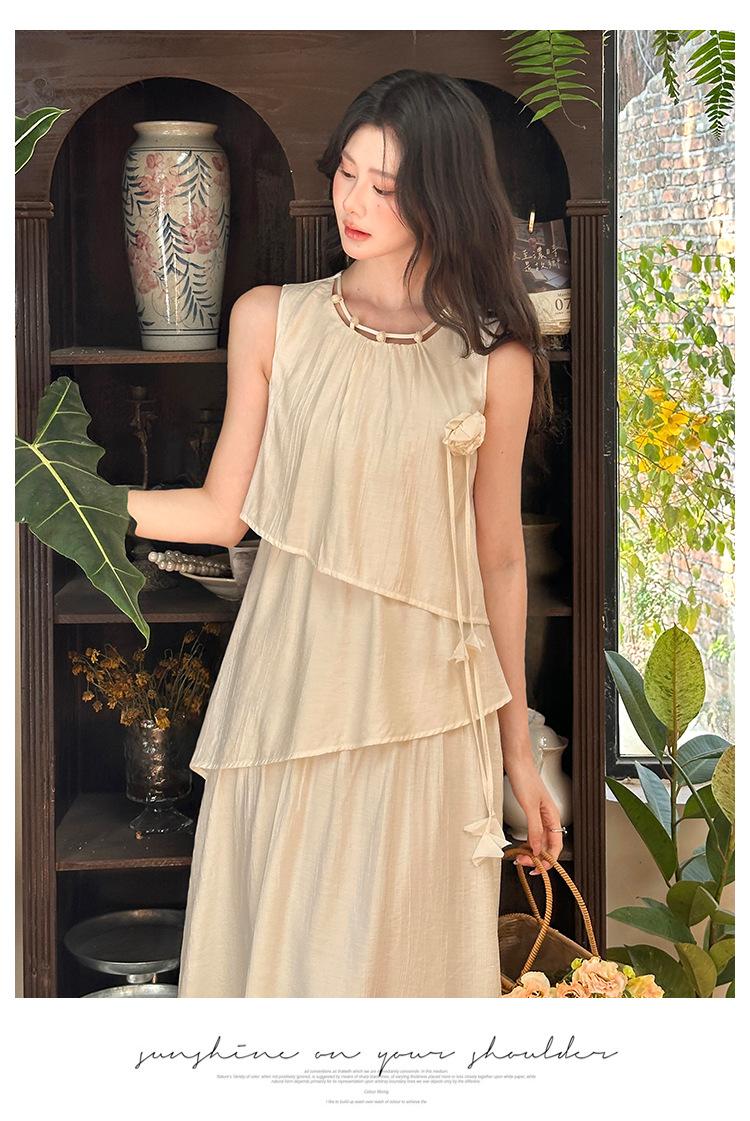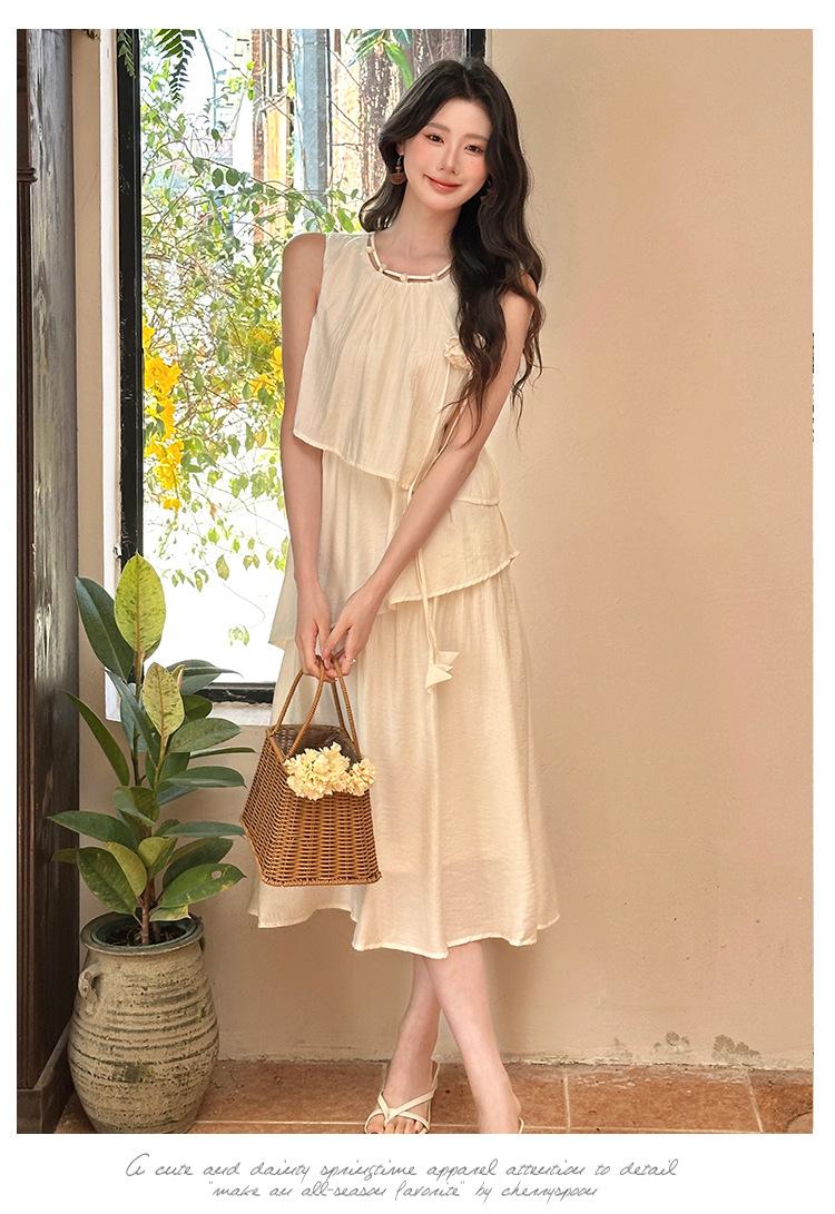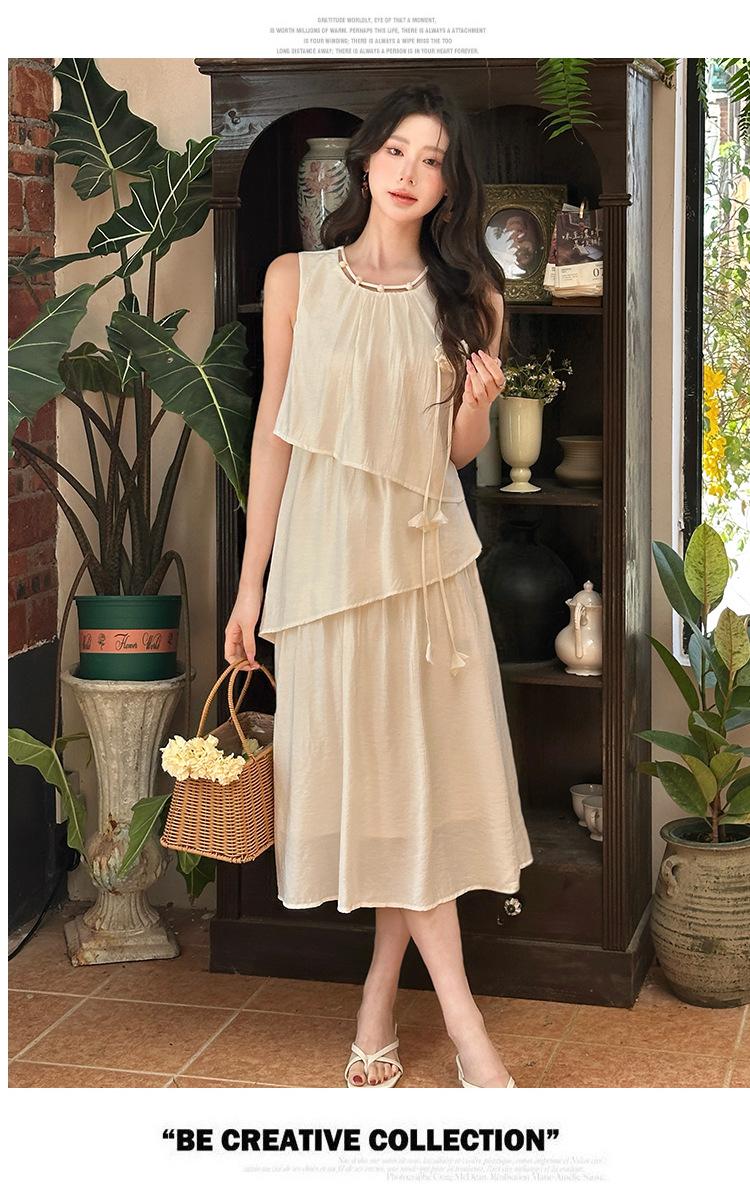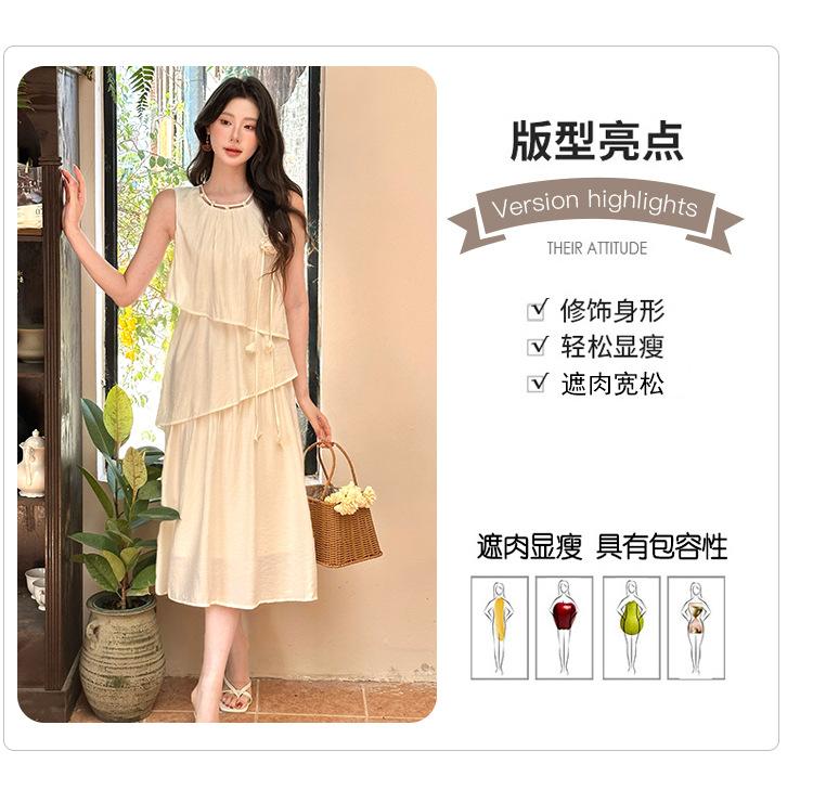 Ropa de Mujer 2025 Verano Trece Filas Nuevo Estilo Francés Irregular Elegante vestido Silueta Delgada Sin Mangas Chaleco Vestido Largo