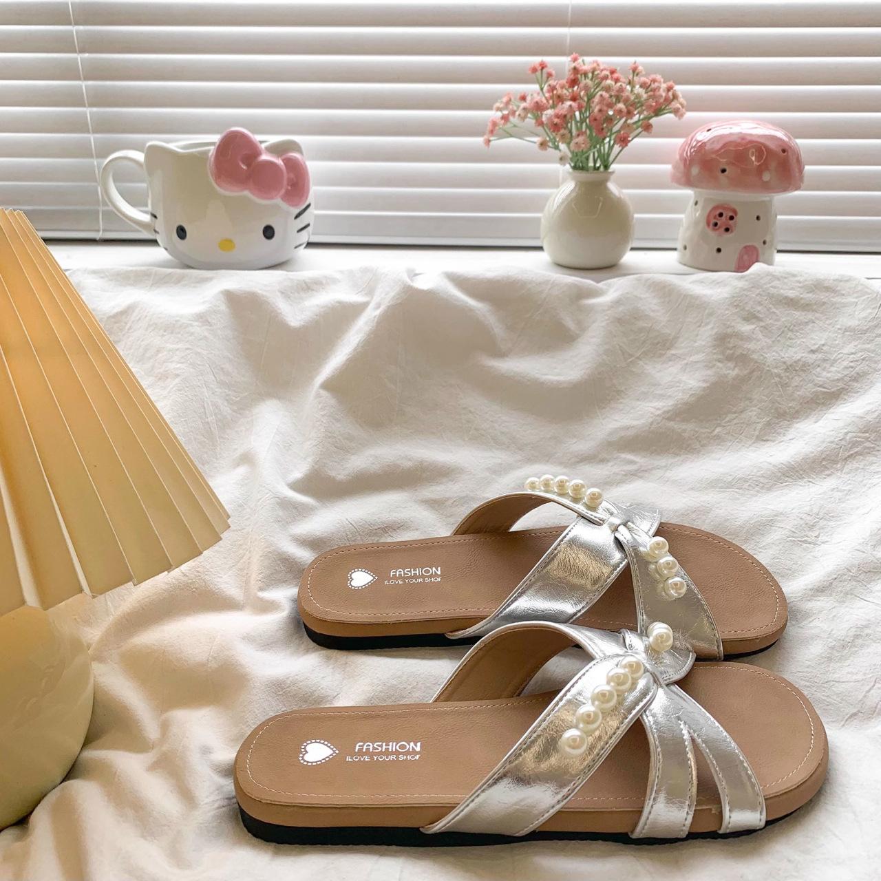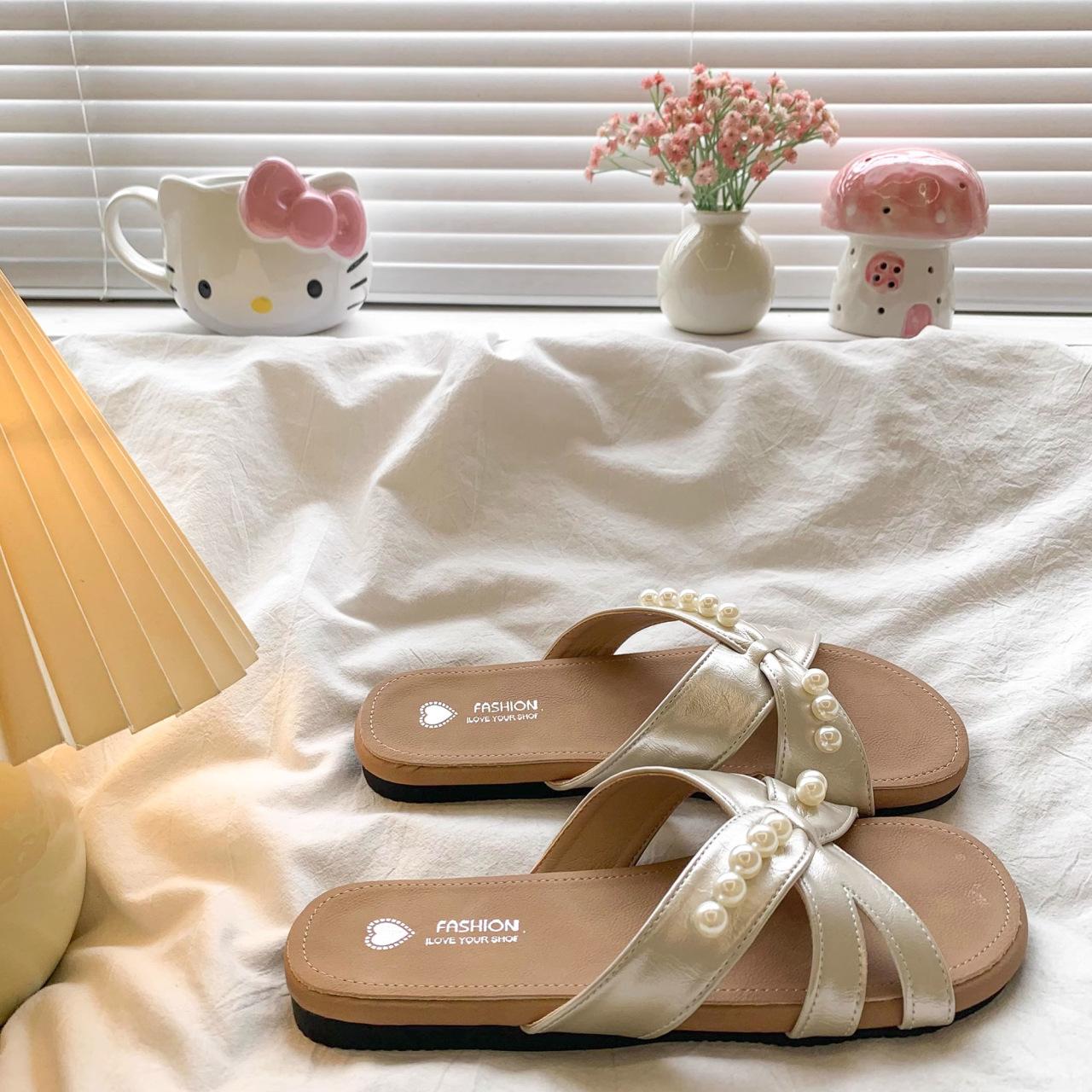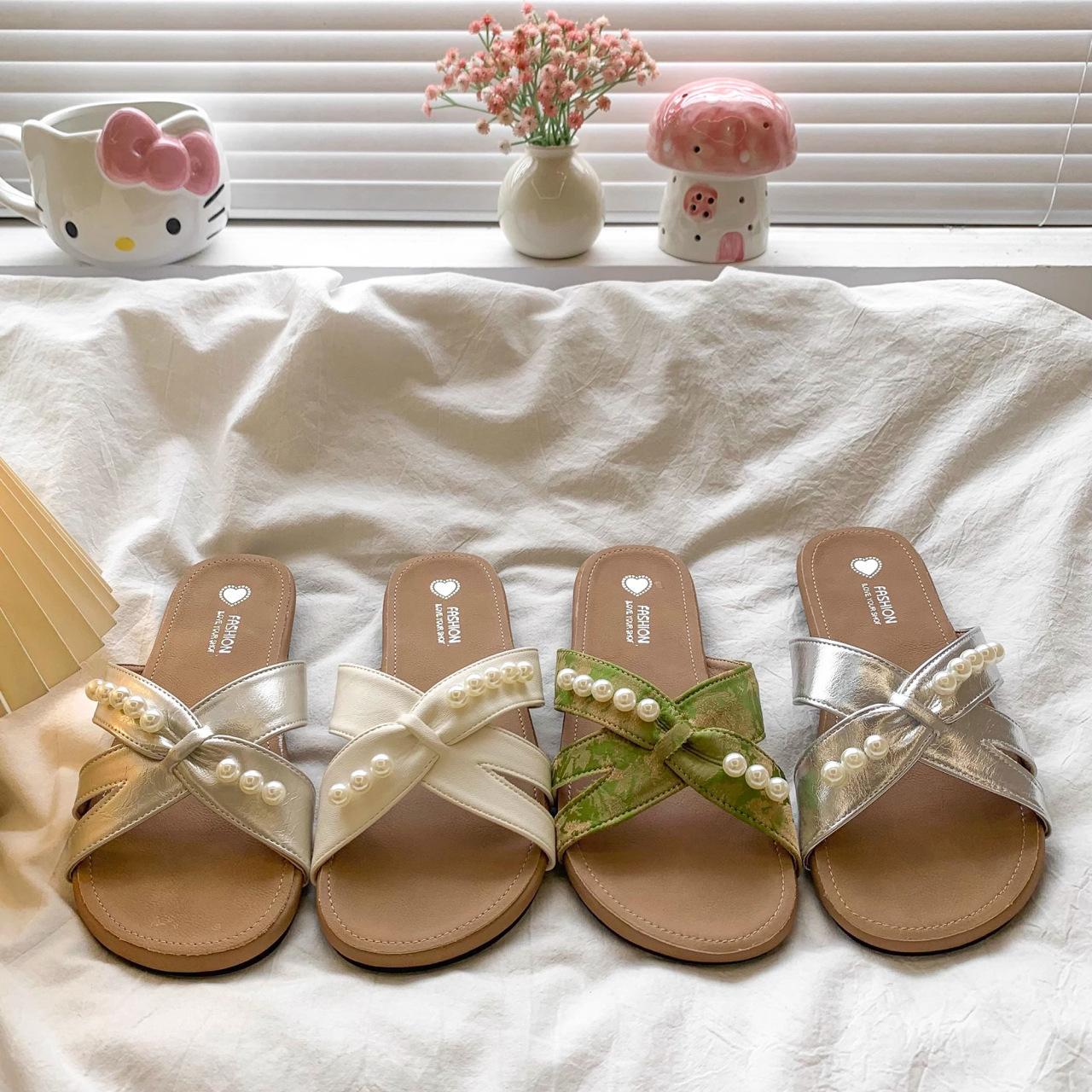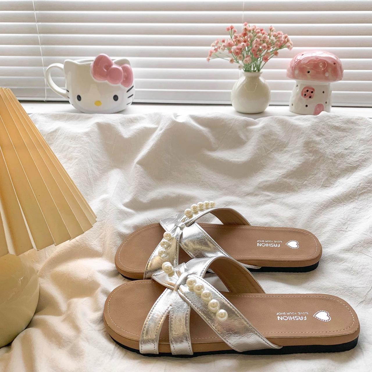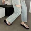 Sandalias planas de moda con pedrería, para verano, playa, para mujer, 2025, nuevas, de verano, de una tira
