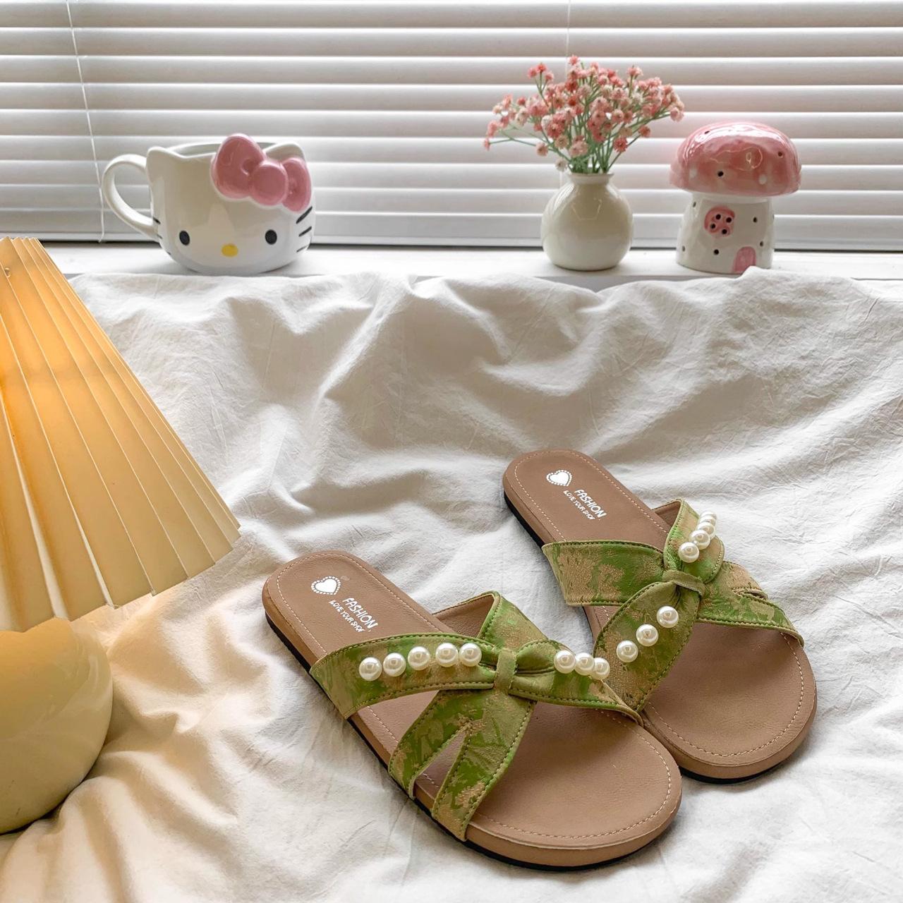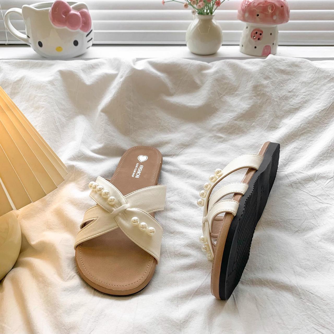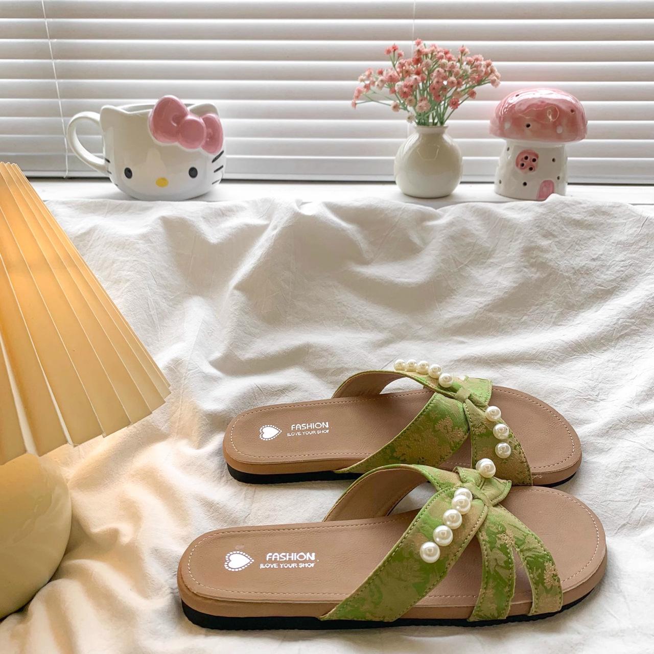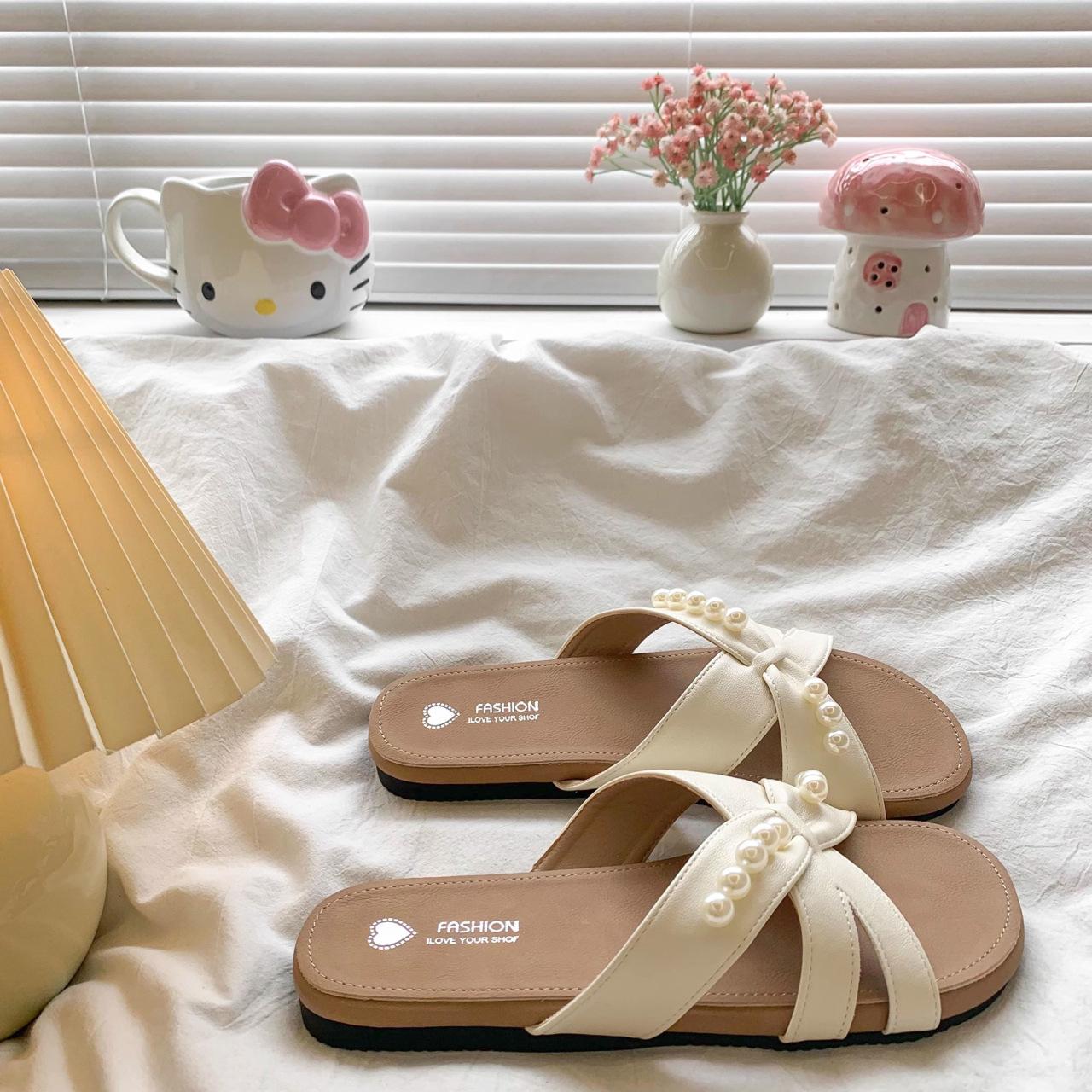Sandalias planas de moda con pedrería, para verano, playa, para mujer, 2025, nuevas, de verano, de una tira