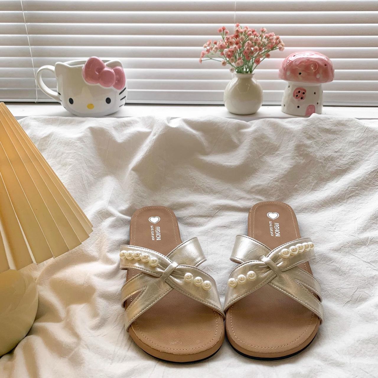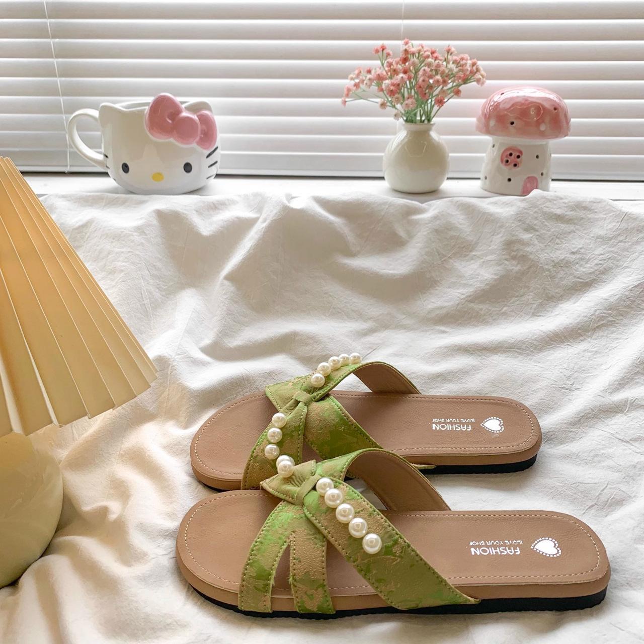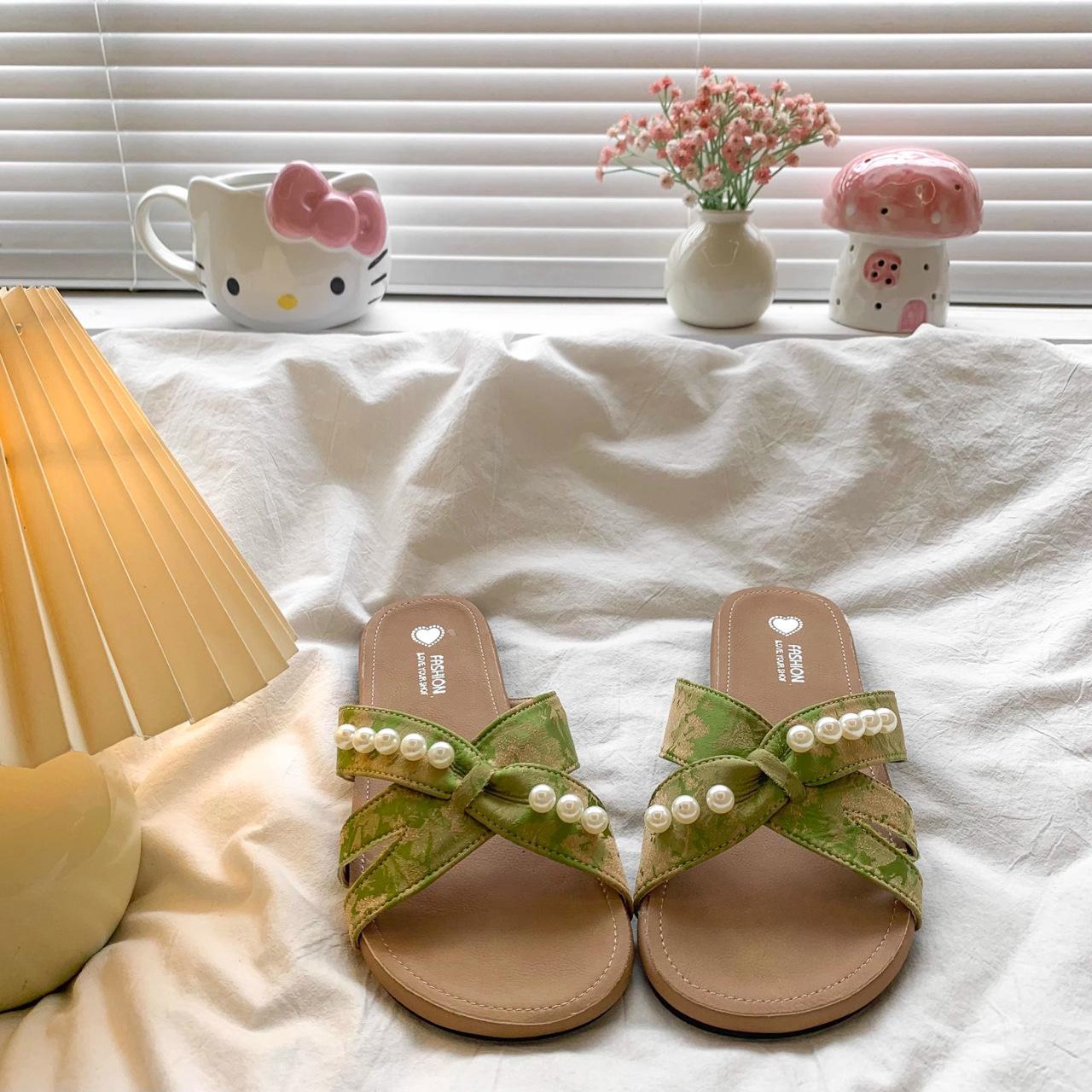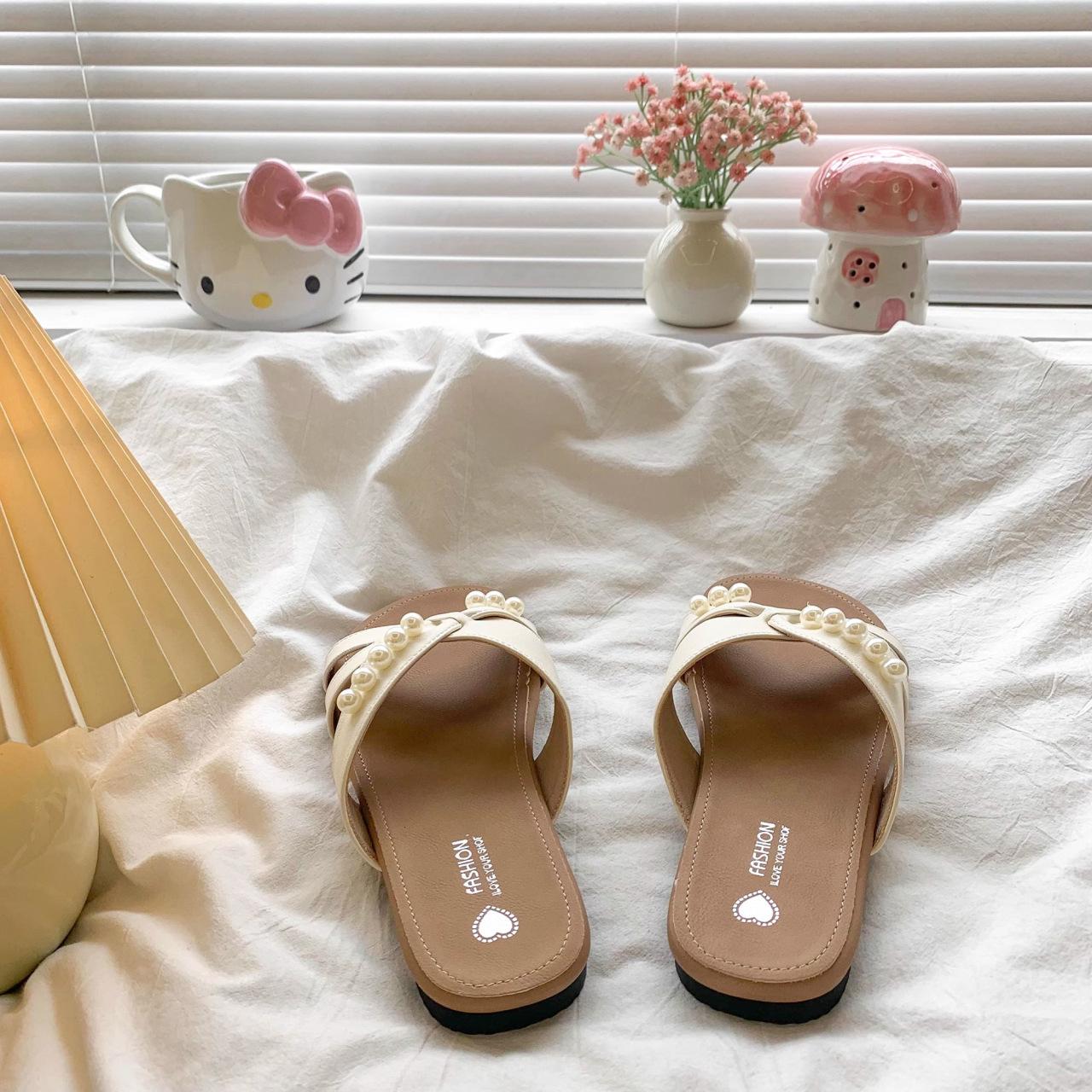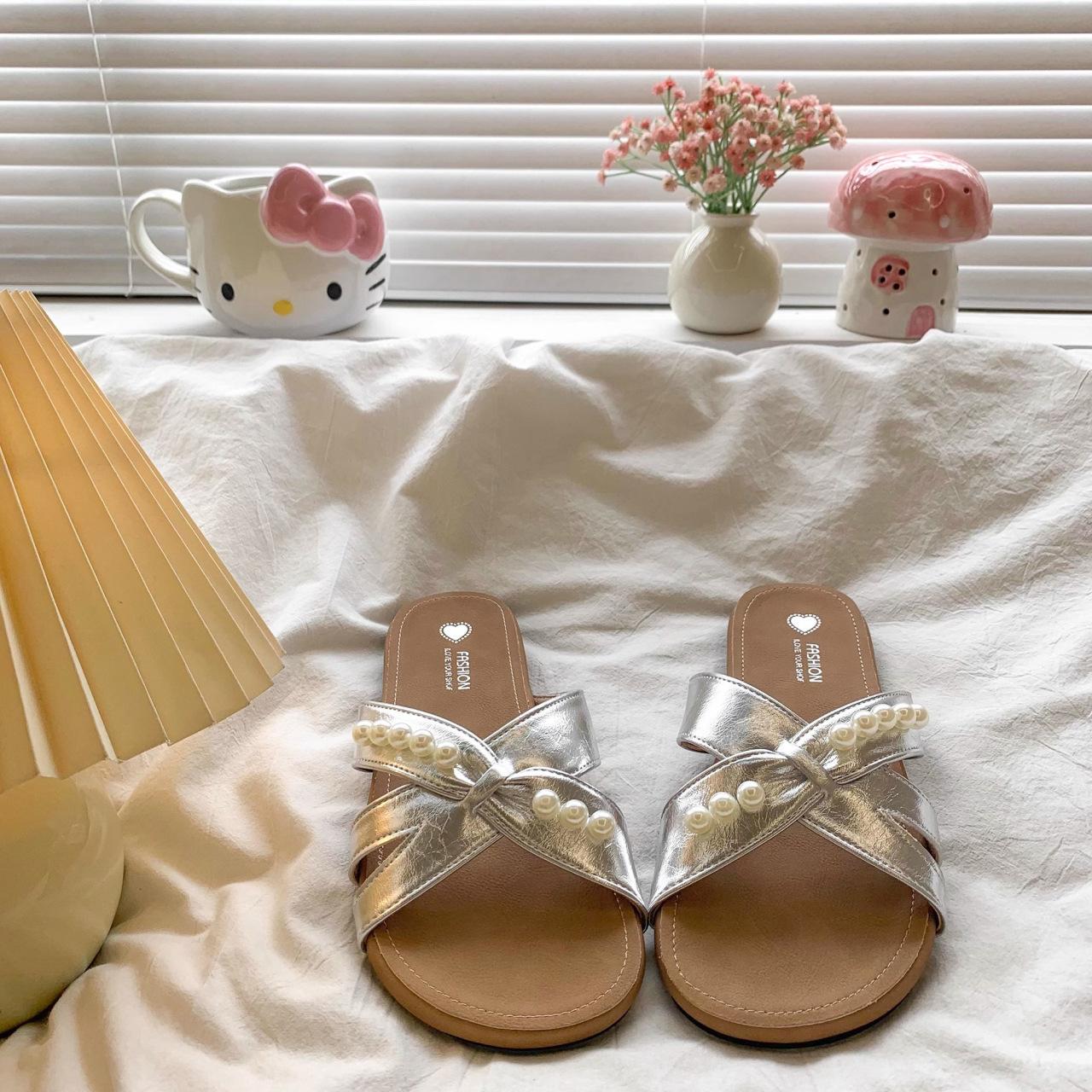 Sandalias planas de moda con pedrería, para verano, playa, para mujer, 2025, nuevas, de verano, de una tira