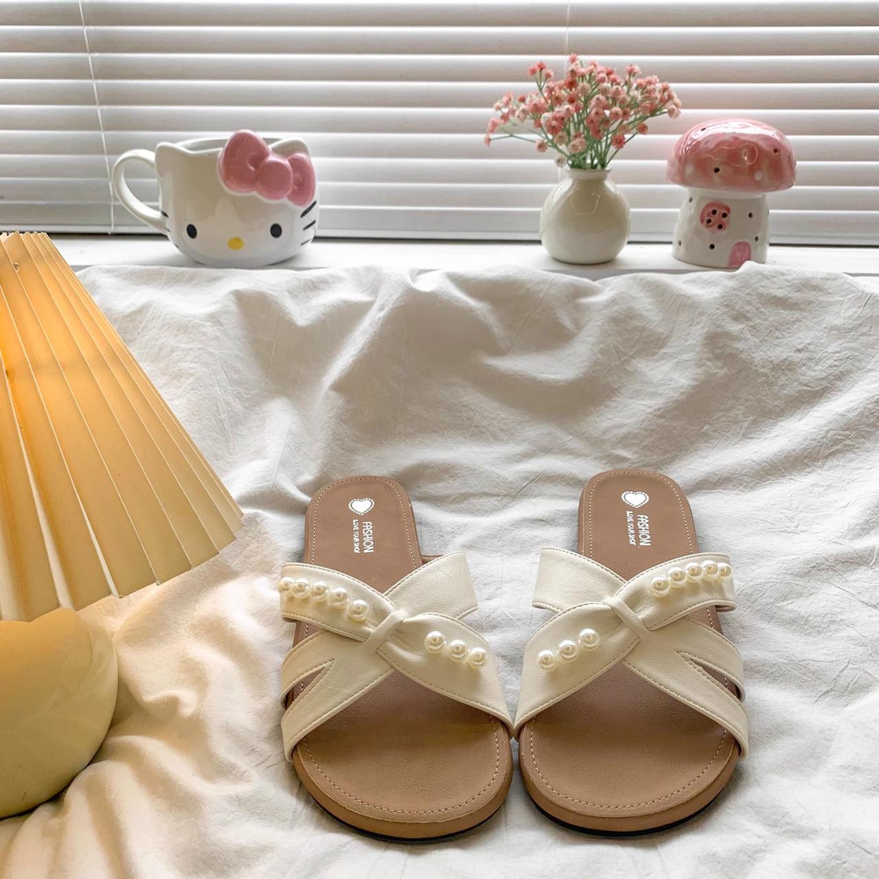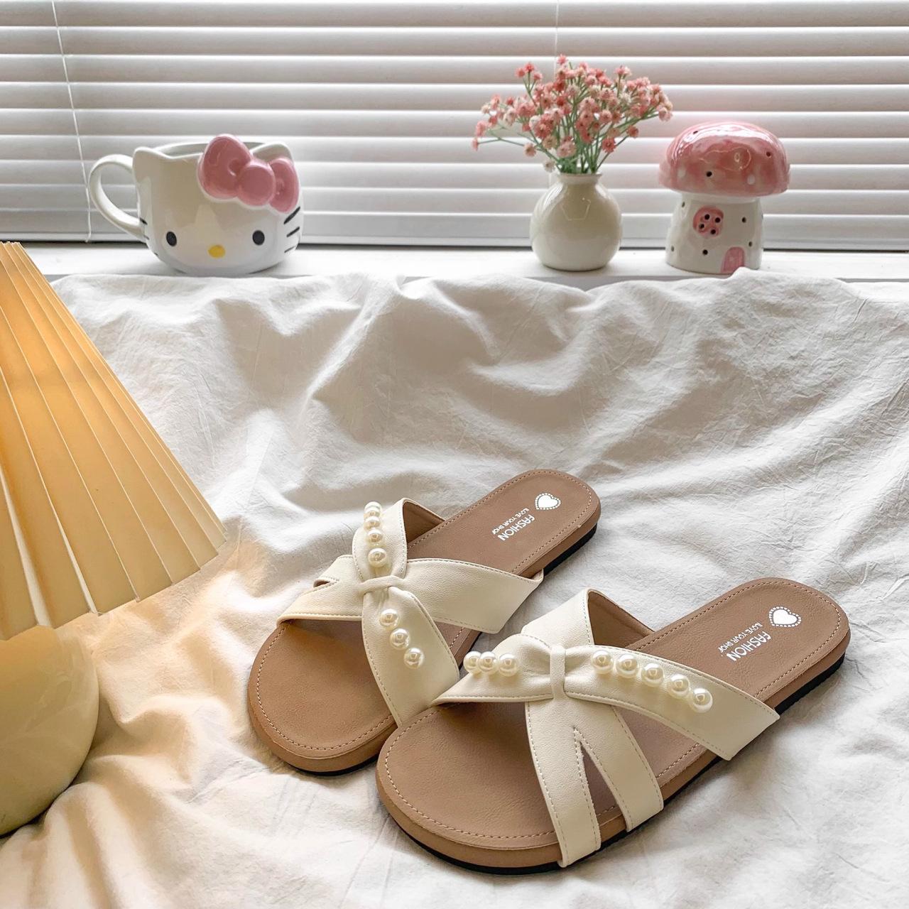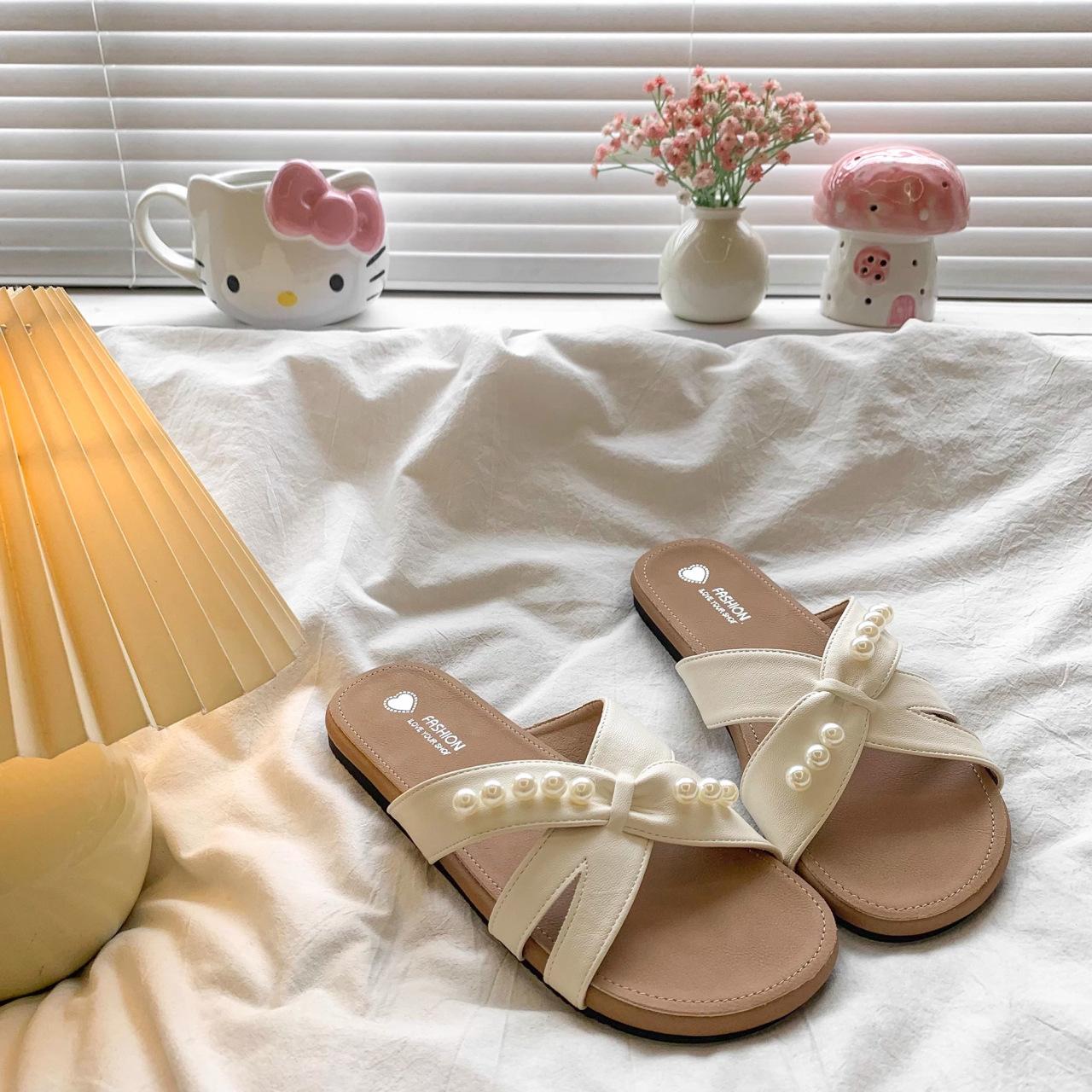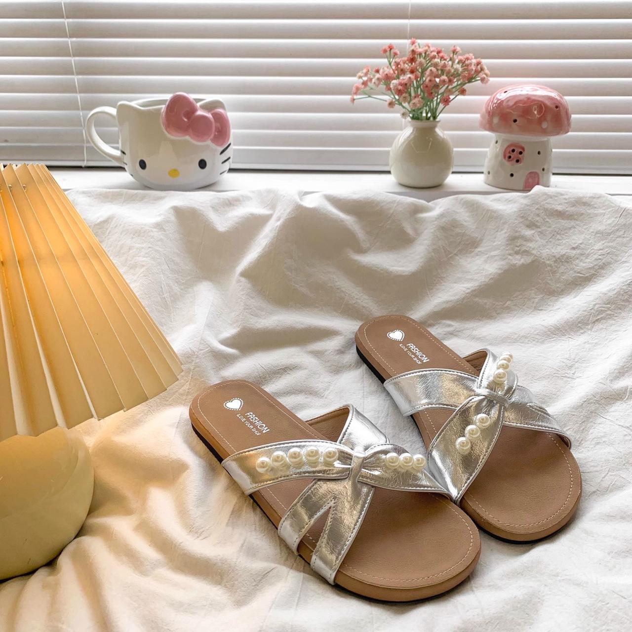 Sandalias planas de moda con pedrería, para verano, playa, para mujer, 2025, nuevas, de verano, de una tira