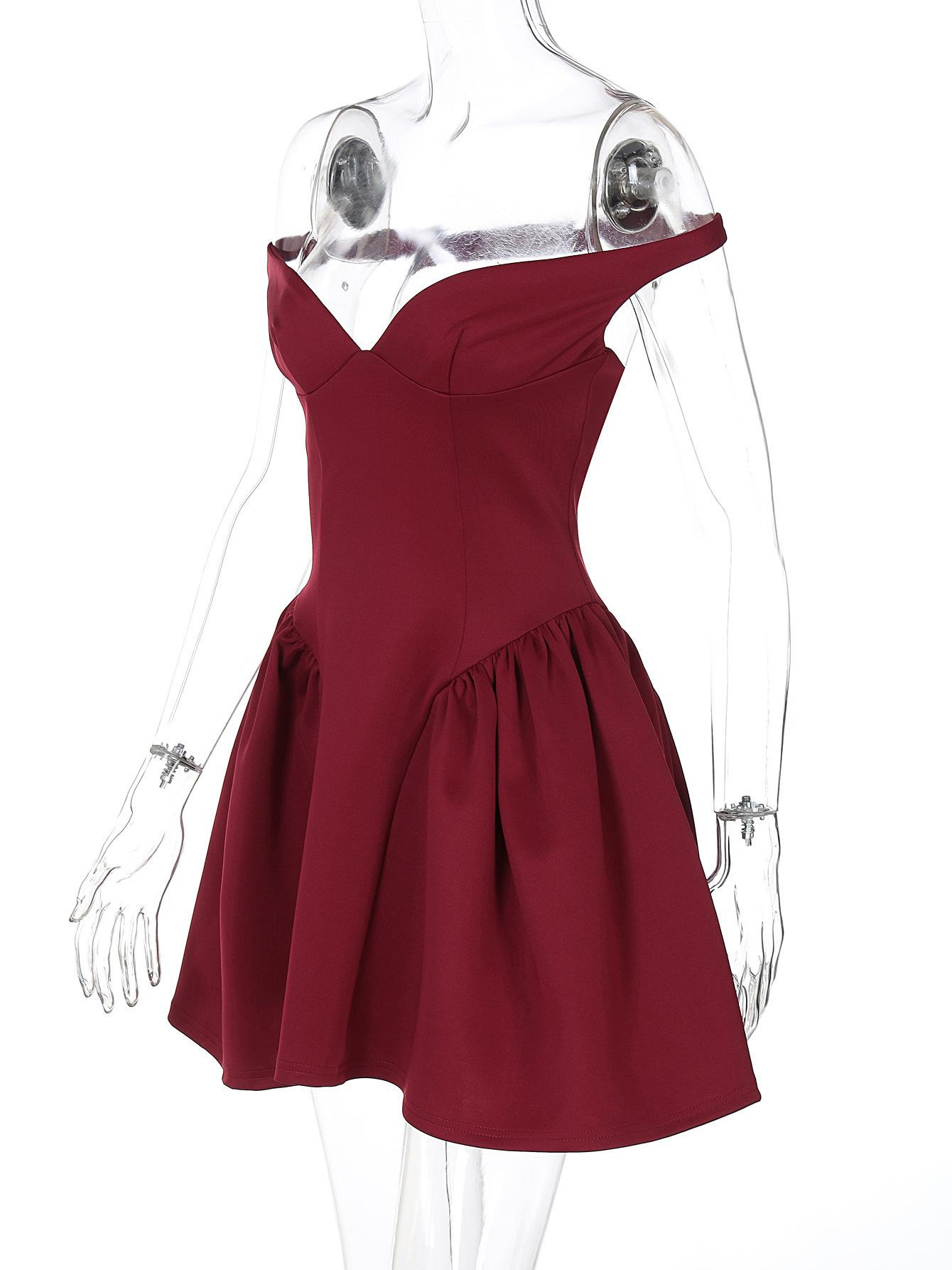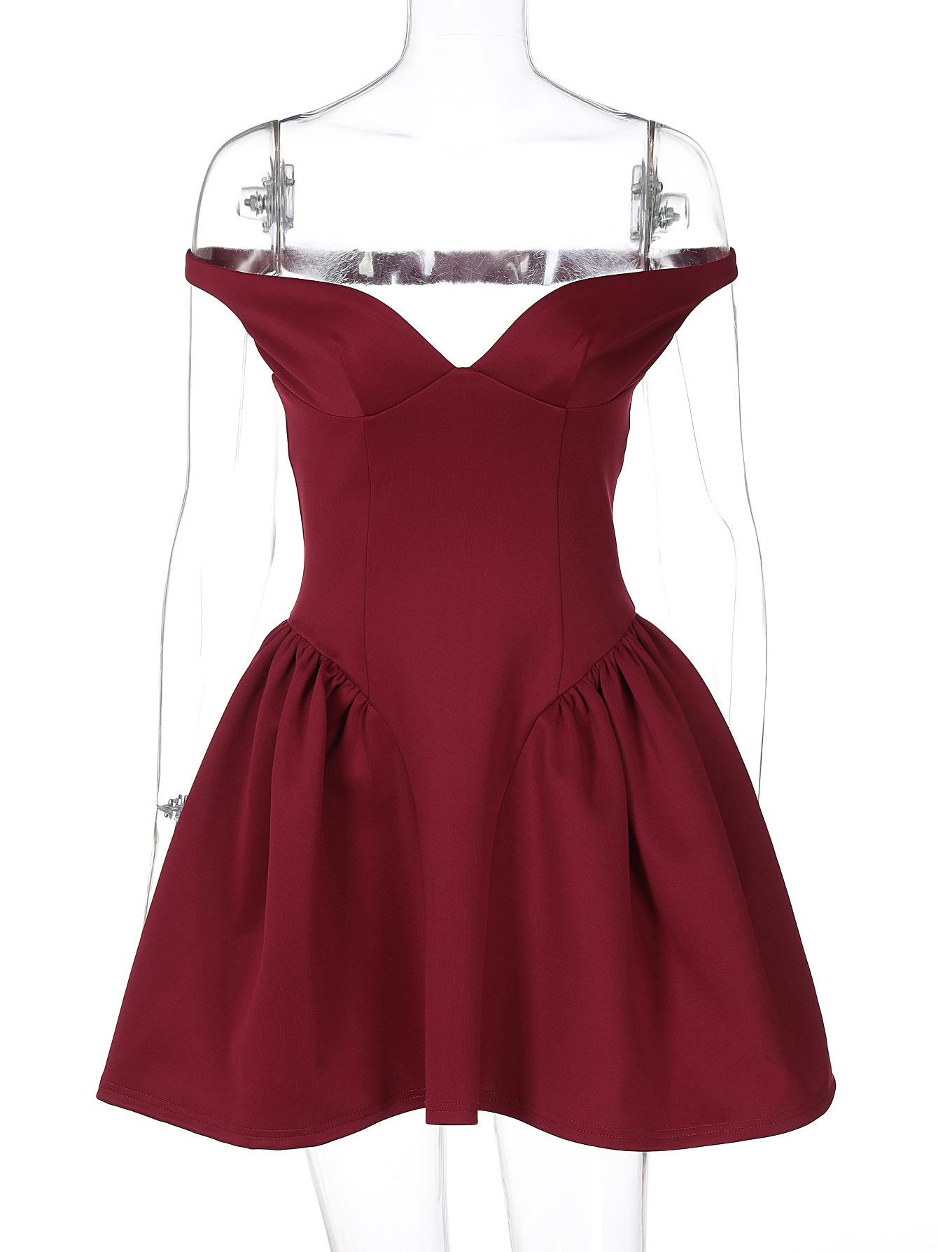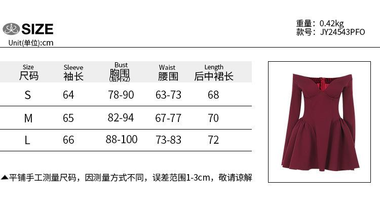 Estilo Europeo y Americano Transfronterizo para Mujer Otoño Nuevo Elegante Ajustado Realzador de Busto Cintura Entallada Vestido de Manga Larga