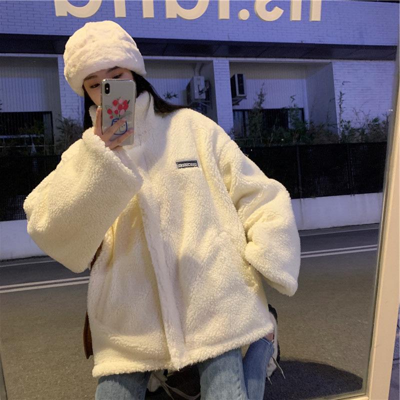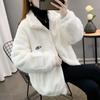 400g Grueso Talla Grande Cremallera Blanco Lana de Cordero Ropa Exterior para Mujer Otoño e Invierno Ins Pequeño Lindo