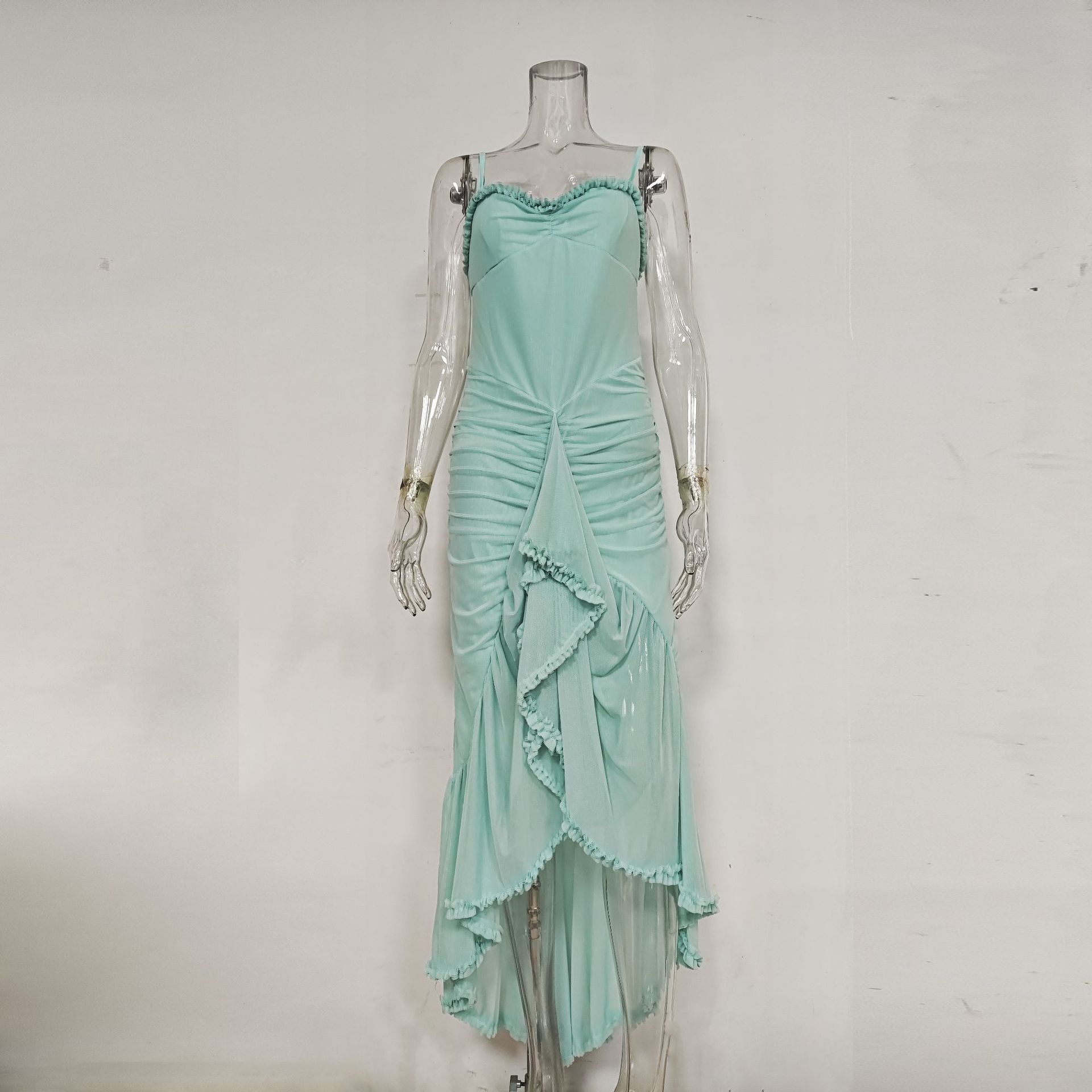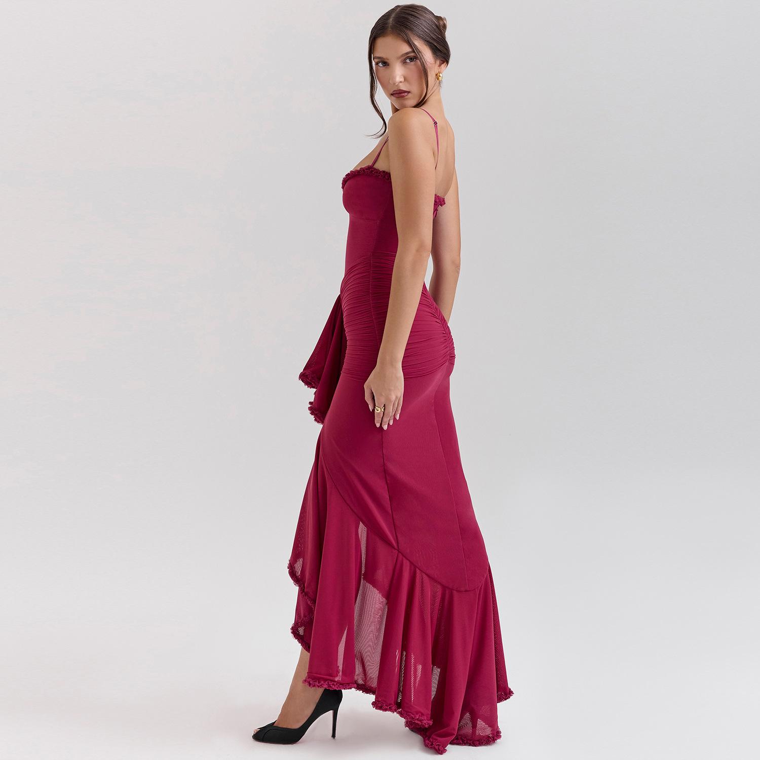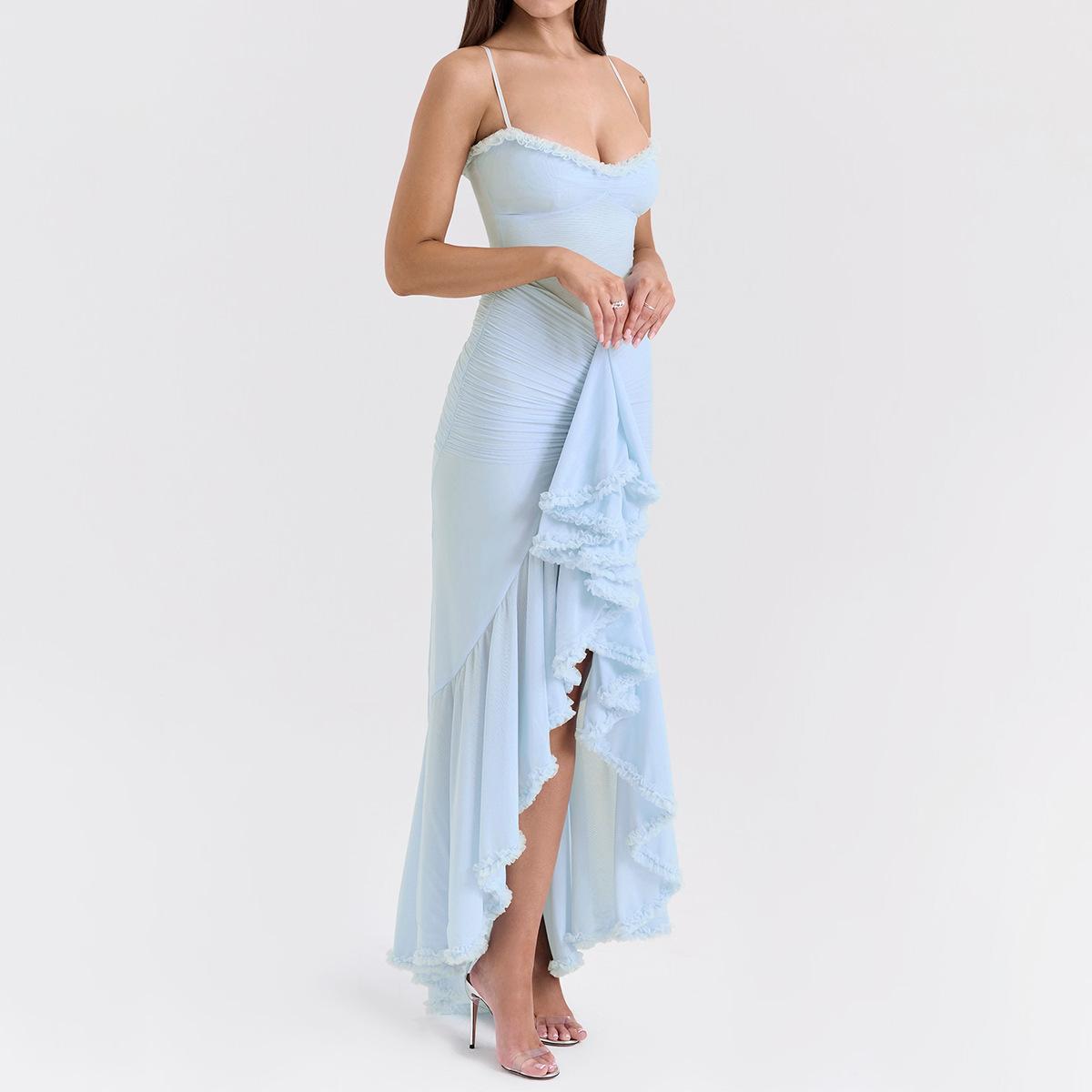 Verano 2025 Estilo Europeo y Americano Exportación Transfronteriza Verano Nuevo Vestido Falda de Tirantes para Mujer Falda Larga Vestido sin Mangas