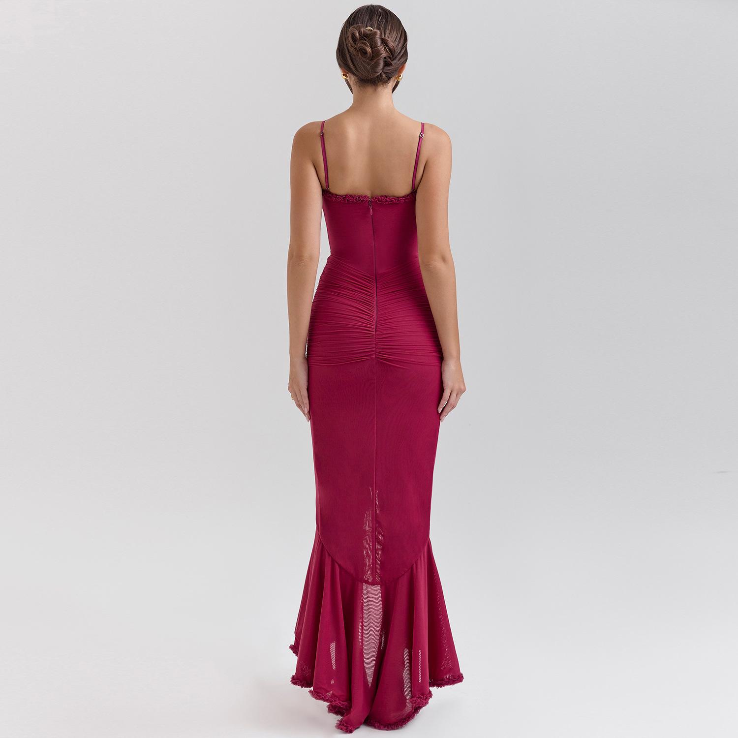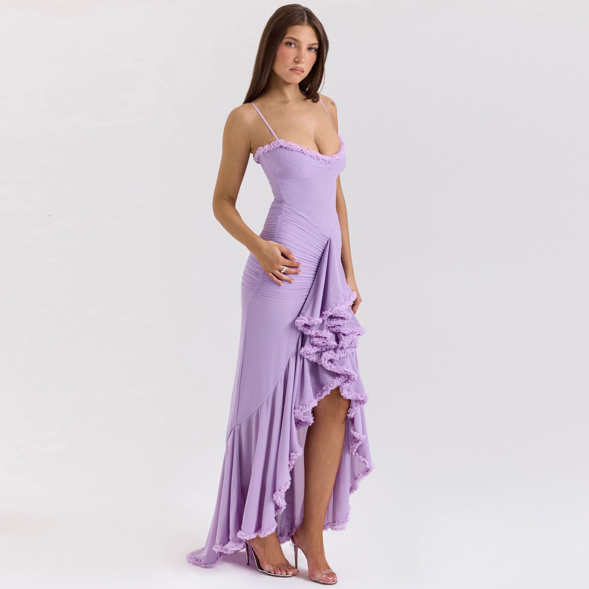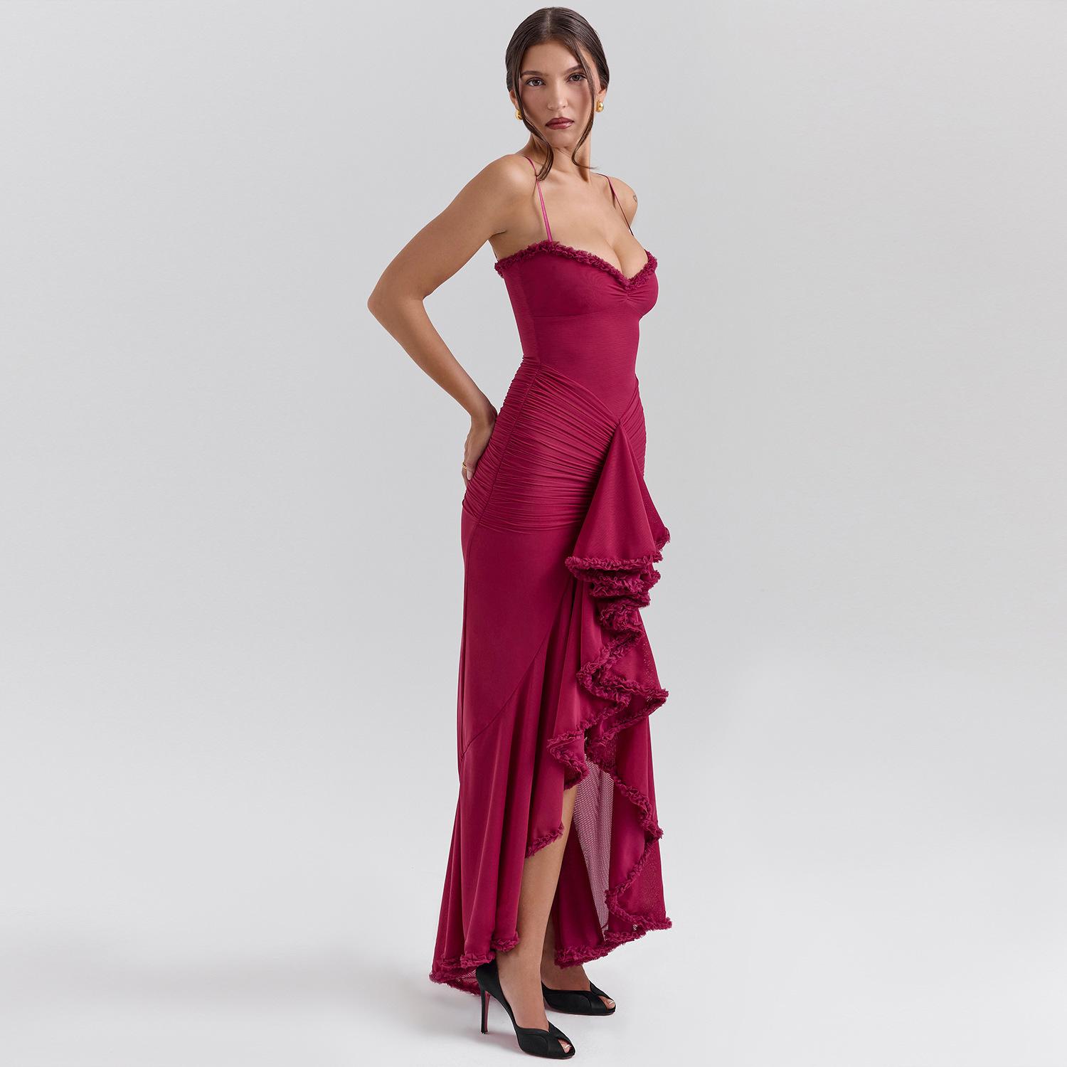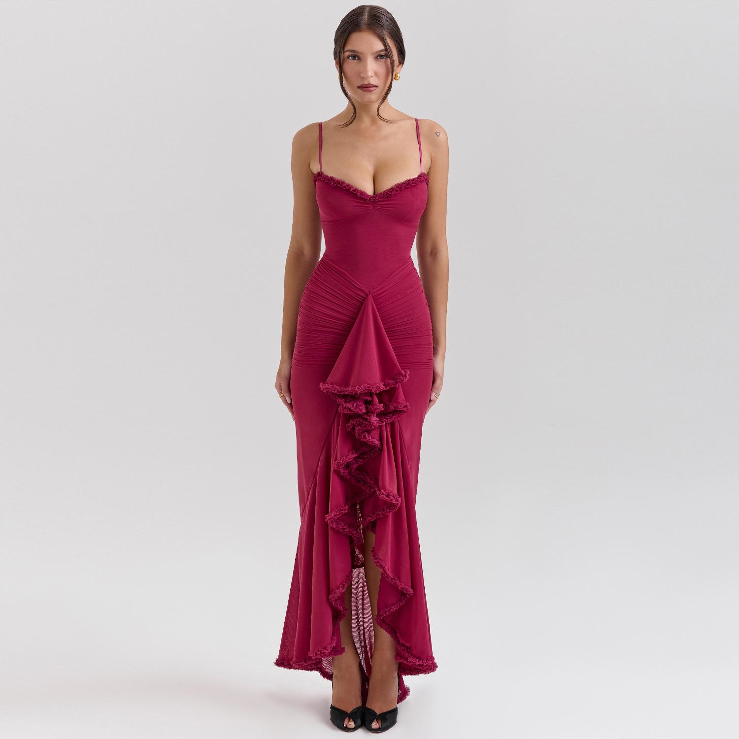 Verano 2025 Estilo Europeo y Americano Exportación Transfronteriza Verano Nuevo Vestido Falda de Tirantes para Mujer Falda Larga Vestido sin Mangas