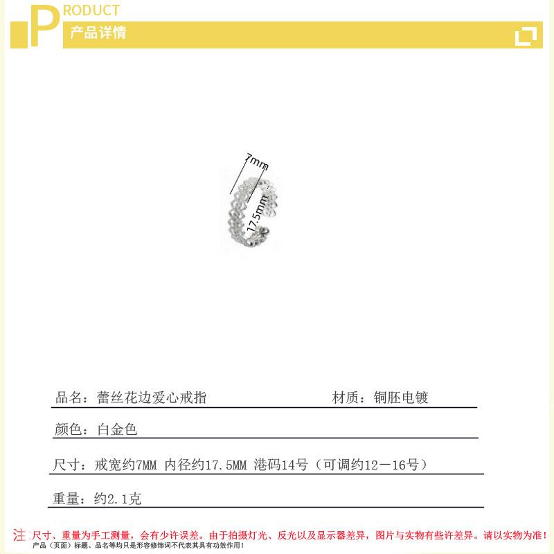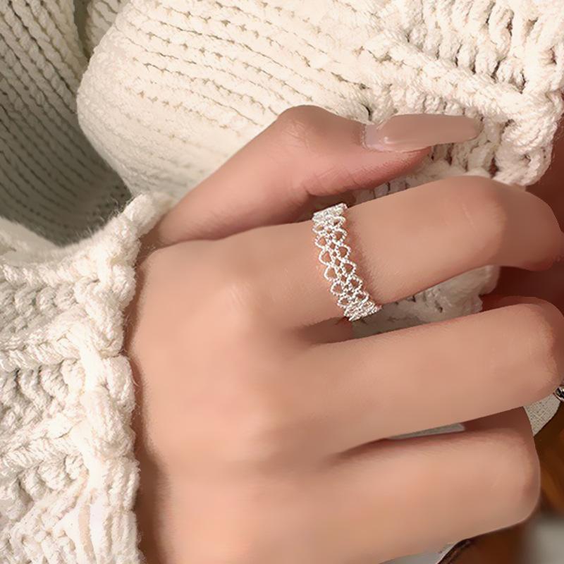 Anillo de Encaje de Corazón Estilo Coreano para Mujer Diseño Nicho Ins Lujo Accesible Alta Gama Dulce y Exquisito Anillo Abierto