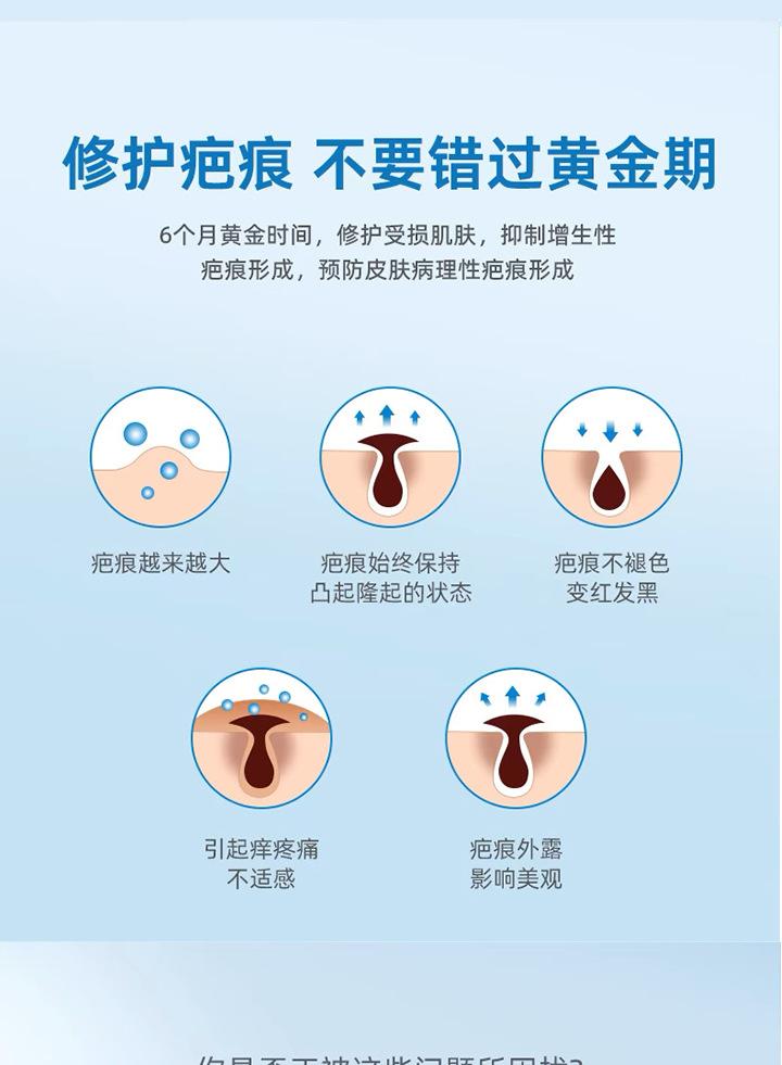 Improve pathological scars of the skin, assist in preventing the formation of pathological scars of the skin