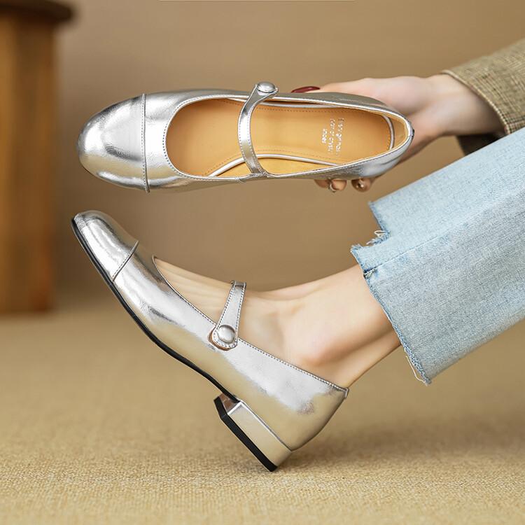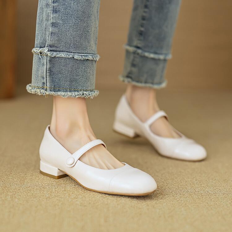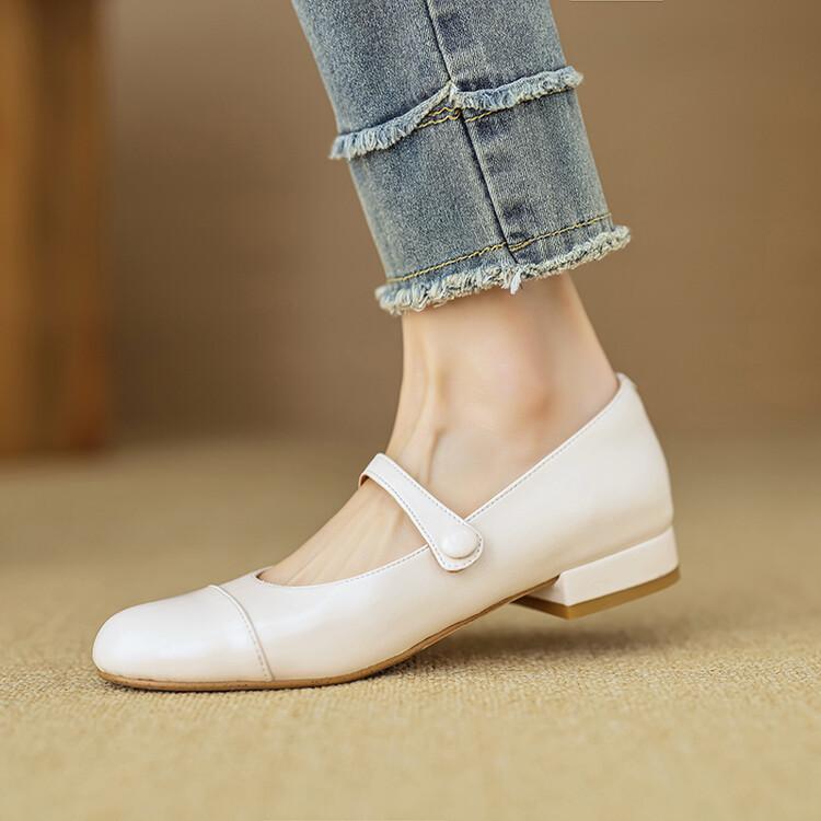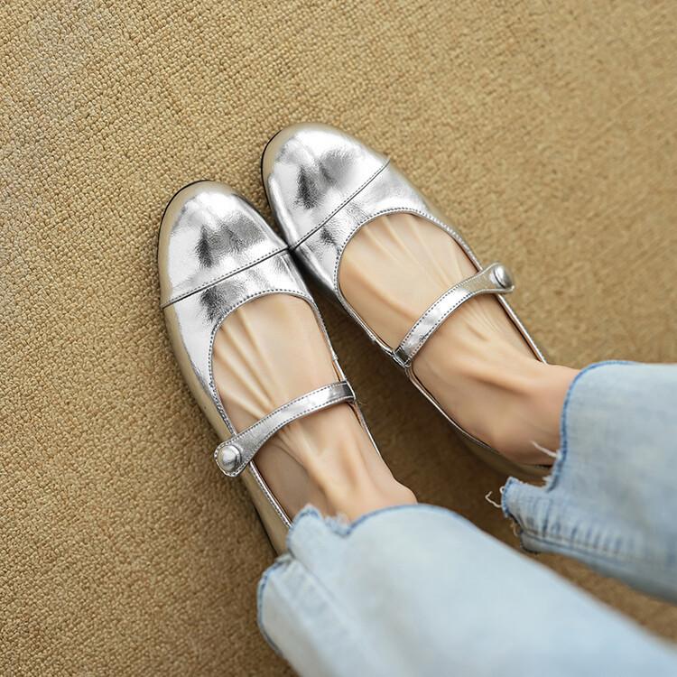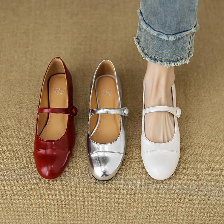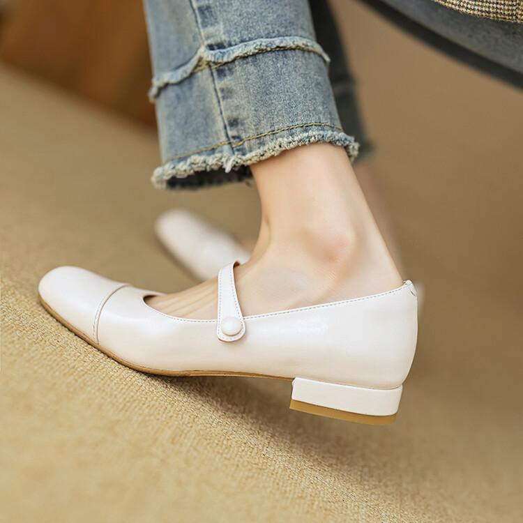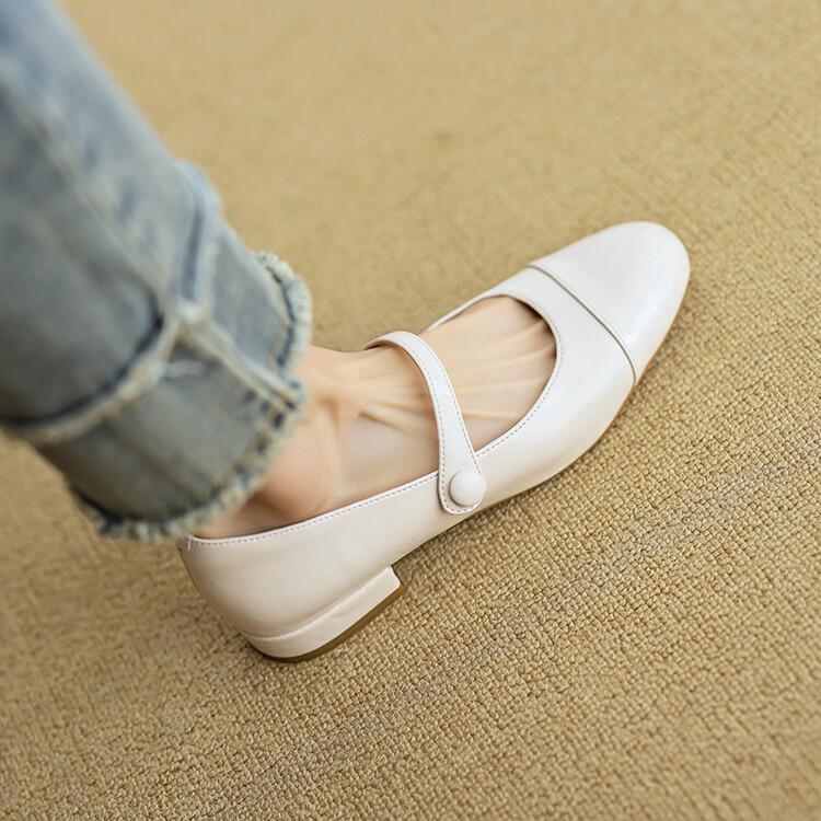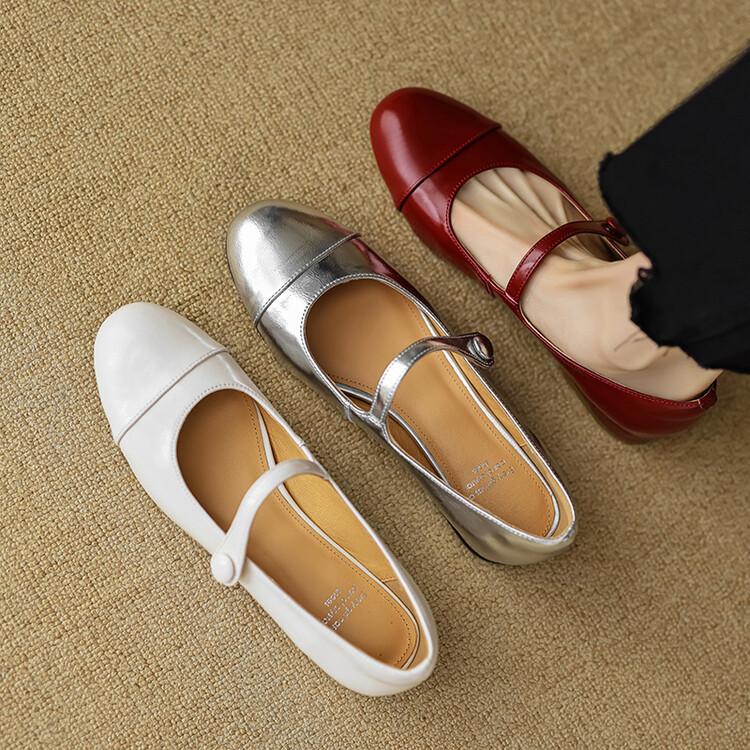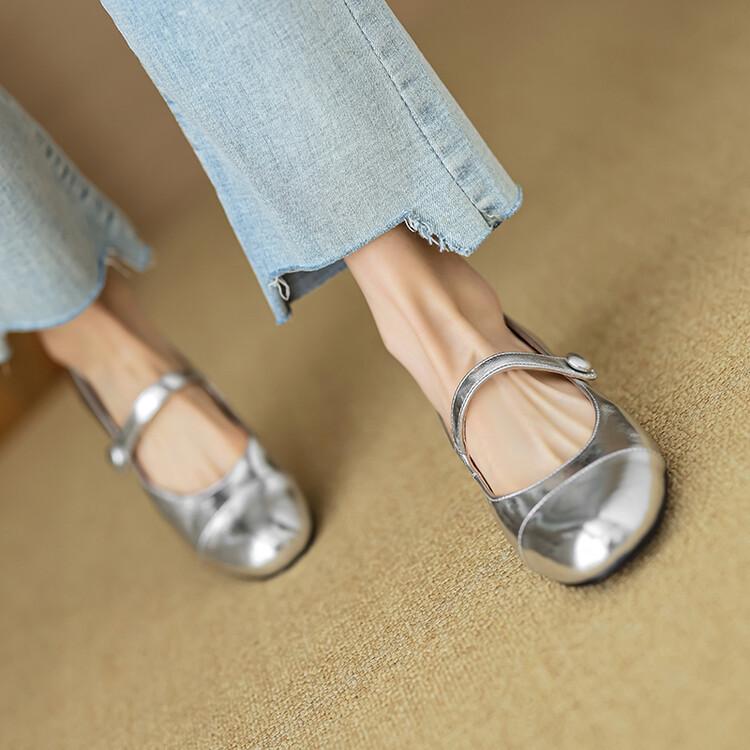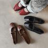 Zapatos Slip-On de Punta Redonda para las Cuatro Estaciones, Zapatos de Piel de Oveja Cómodos y Suaves para Mujer, Corte Bajo de Boca Poco Profunda, Zapatos Planos Casuales de Tacón Bajo