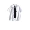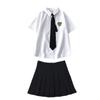 Three-piece short-sleeved shirt + black skirt + black tie