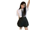 Three-piece short-sleeved shirt + black skirt + black tie, One-piece black pleated skirt, One-piece white shirt + black tie