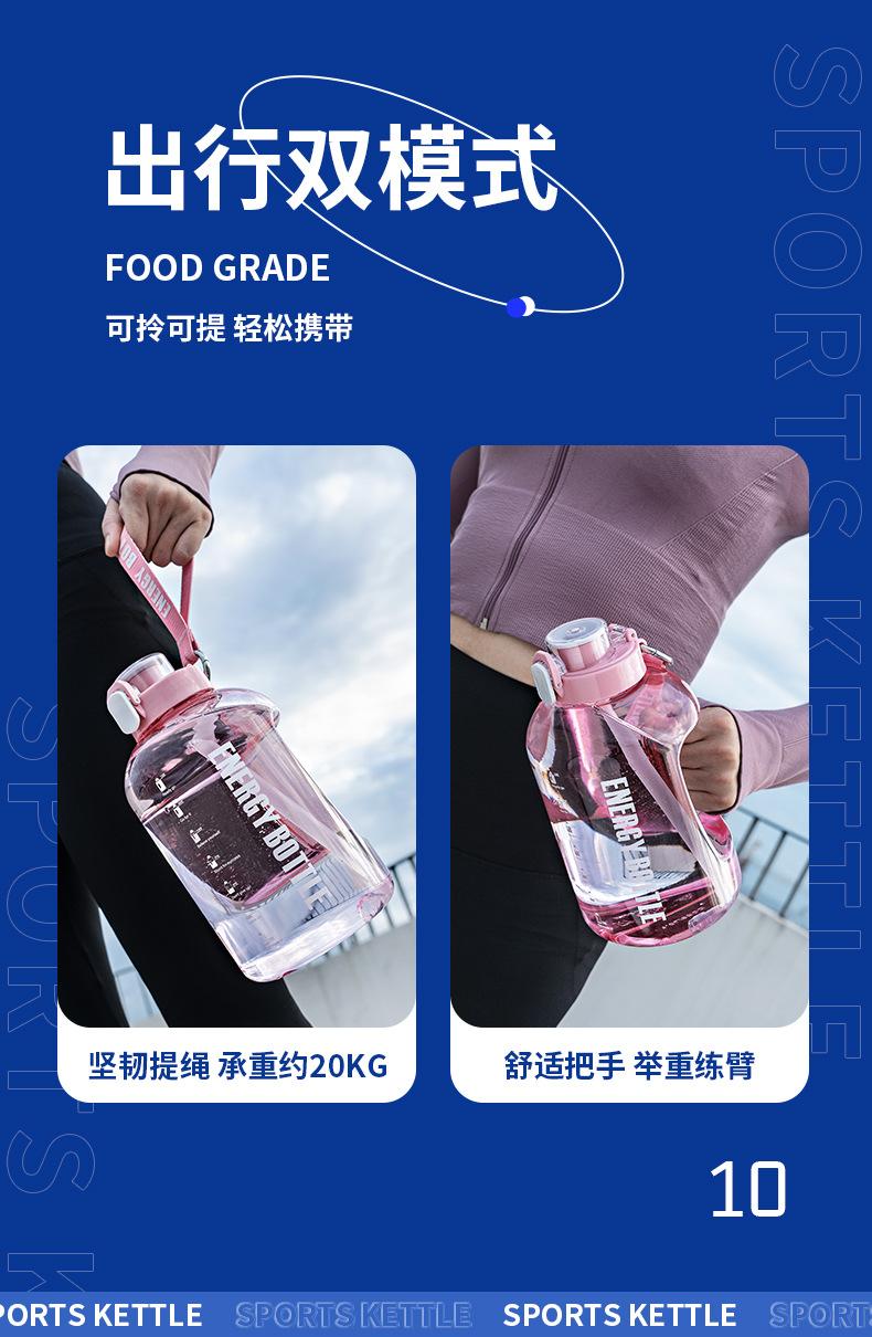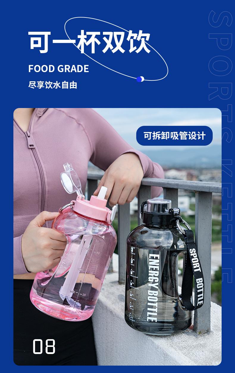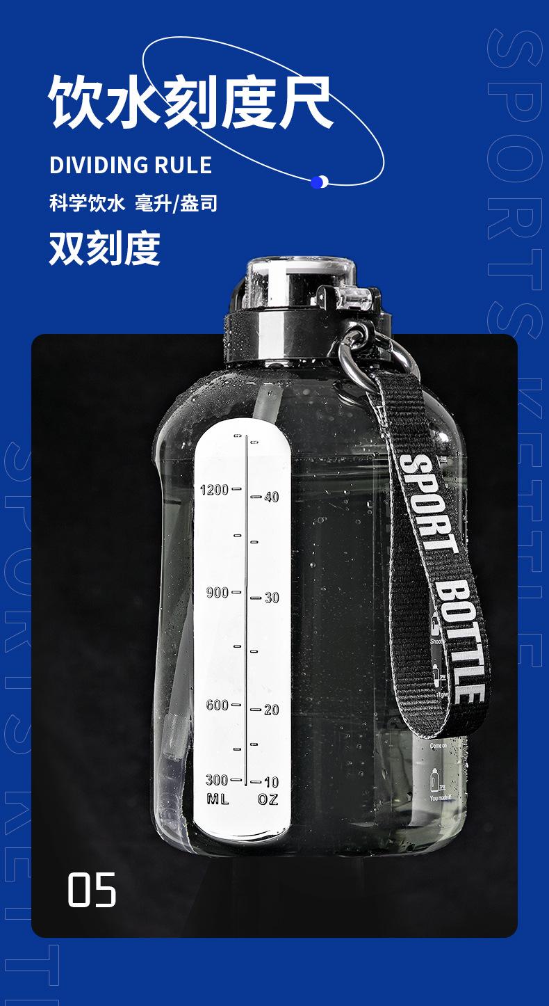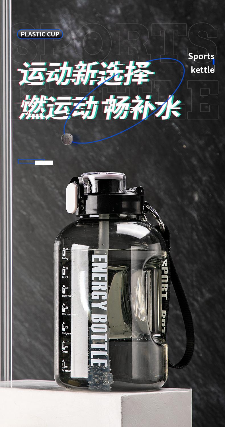 Fitness Botella de Agua Deportiva para Exteriores de Gran Capacidad Portátil Extra Grande Cubo Ton Ton Tamaño Grande Rojo de Internet con Pajita Vaso de Agua con Escala