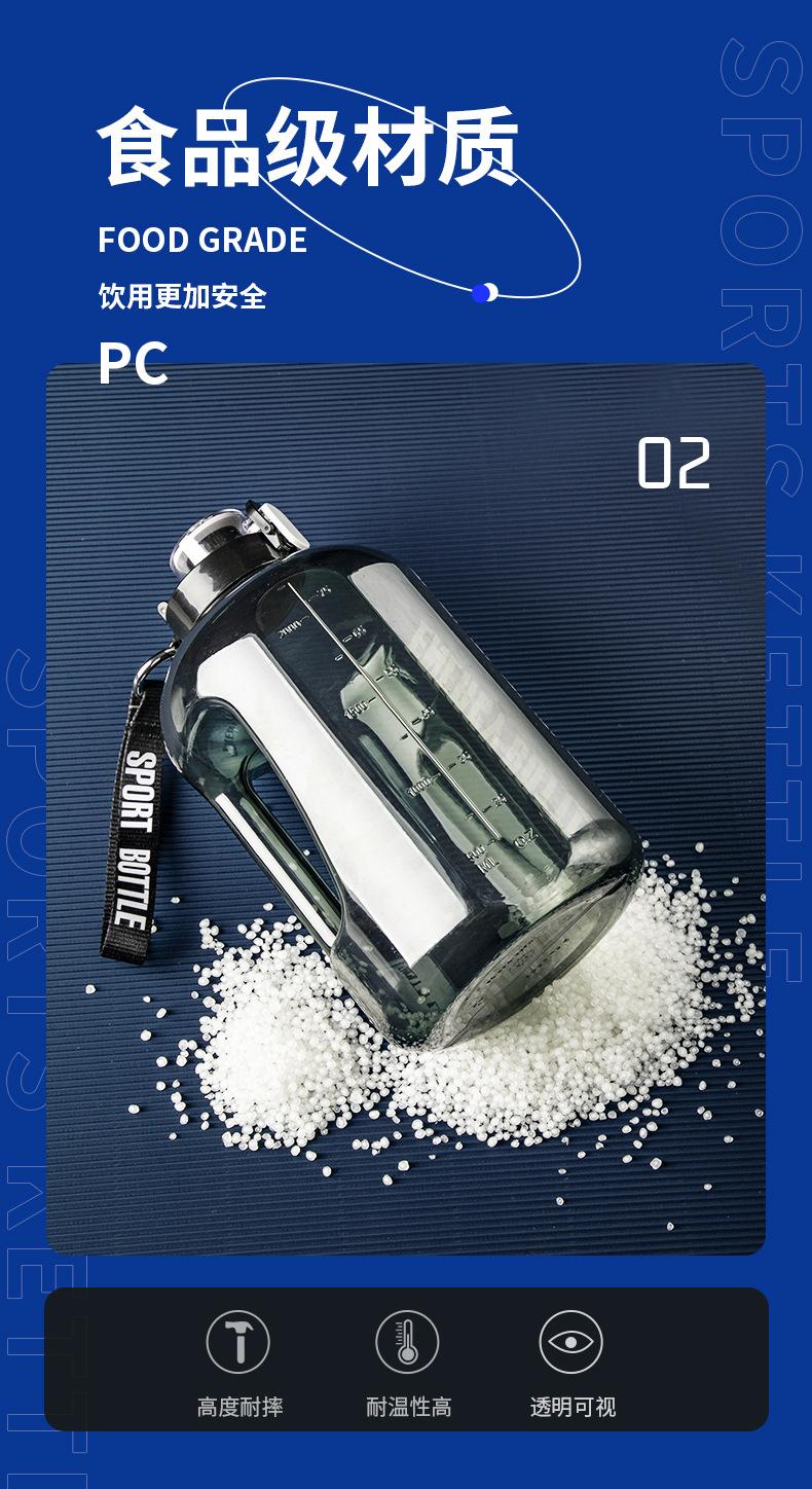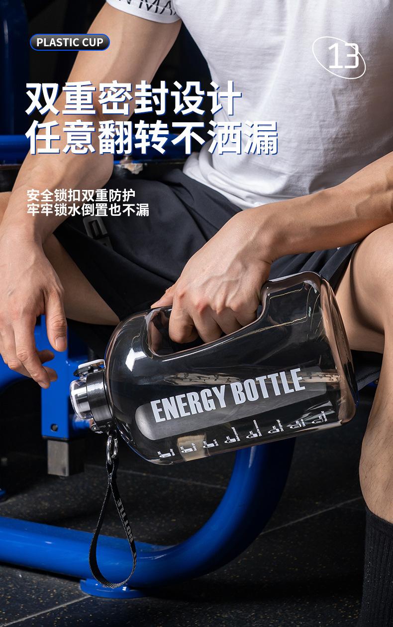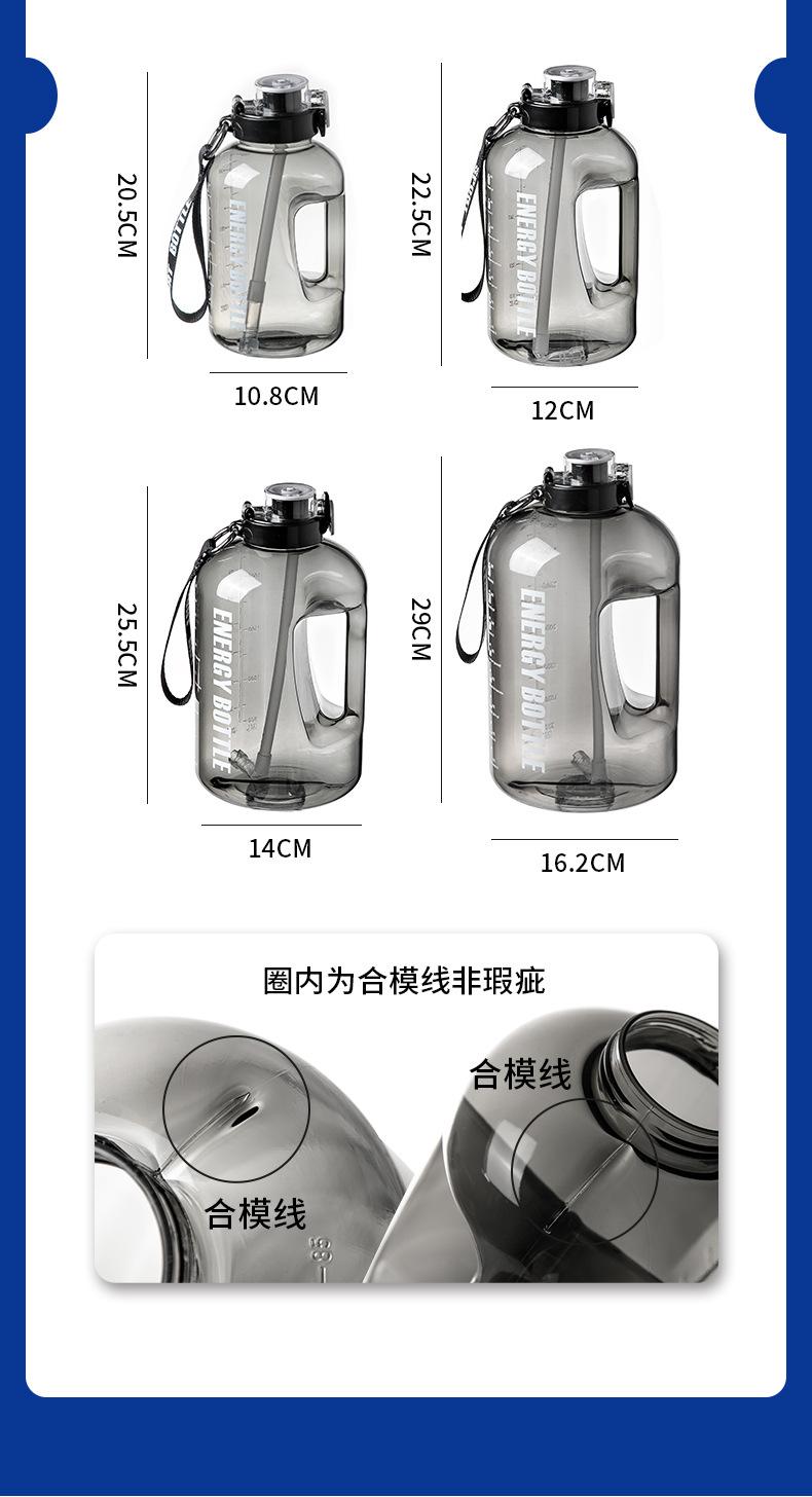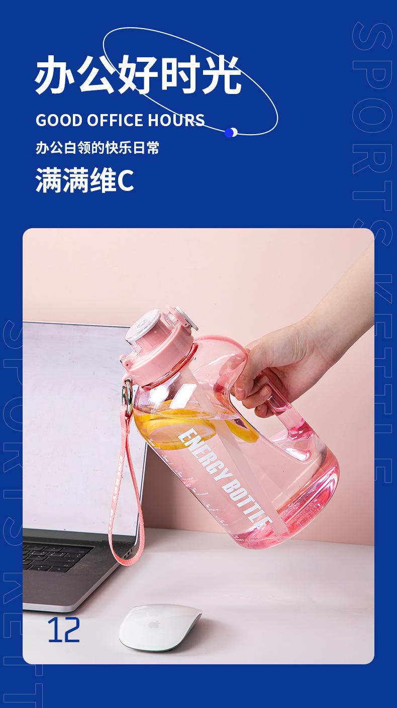 Fitness Botella de Agua Deportiva para Exteriores de Gran Capacidad Portátil Extra Grande Cubo Ton Ton Tamaño Grande Rojo de Internet con Pajita Vaso de Agua con Escala